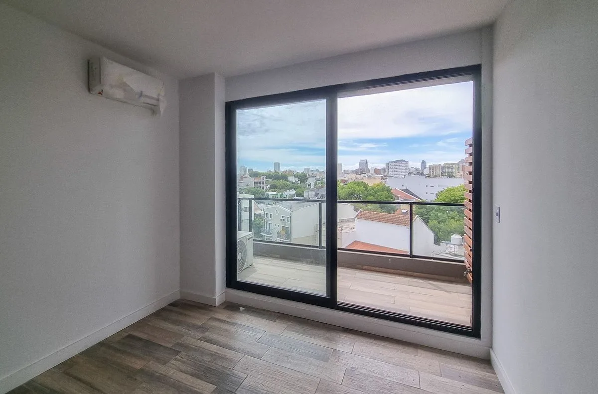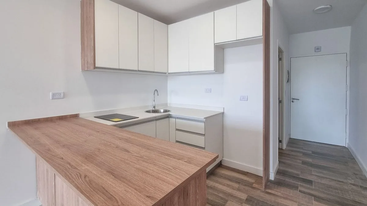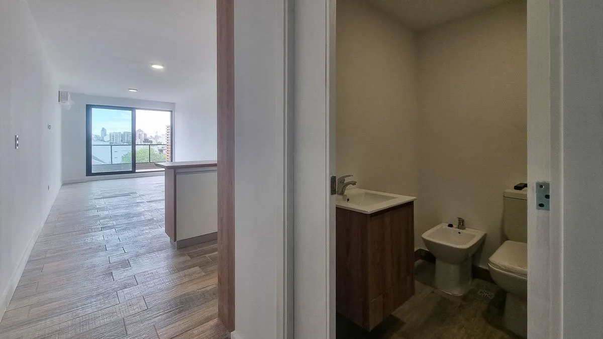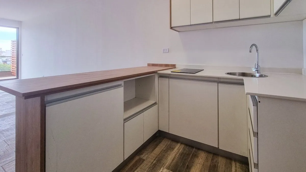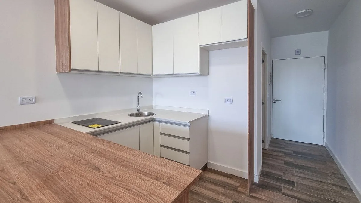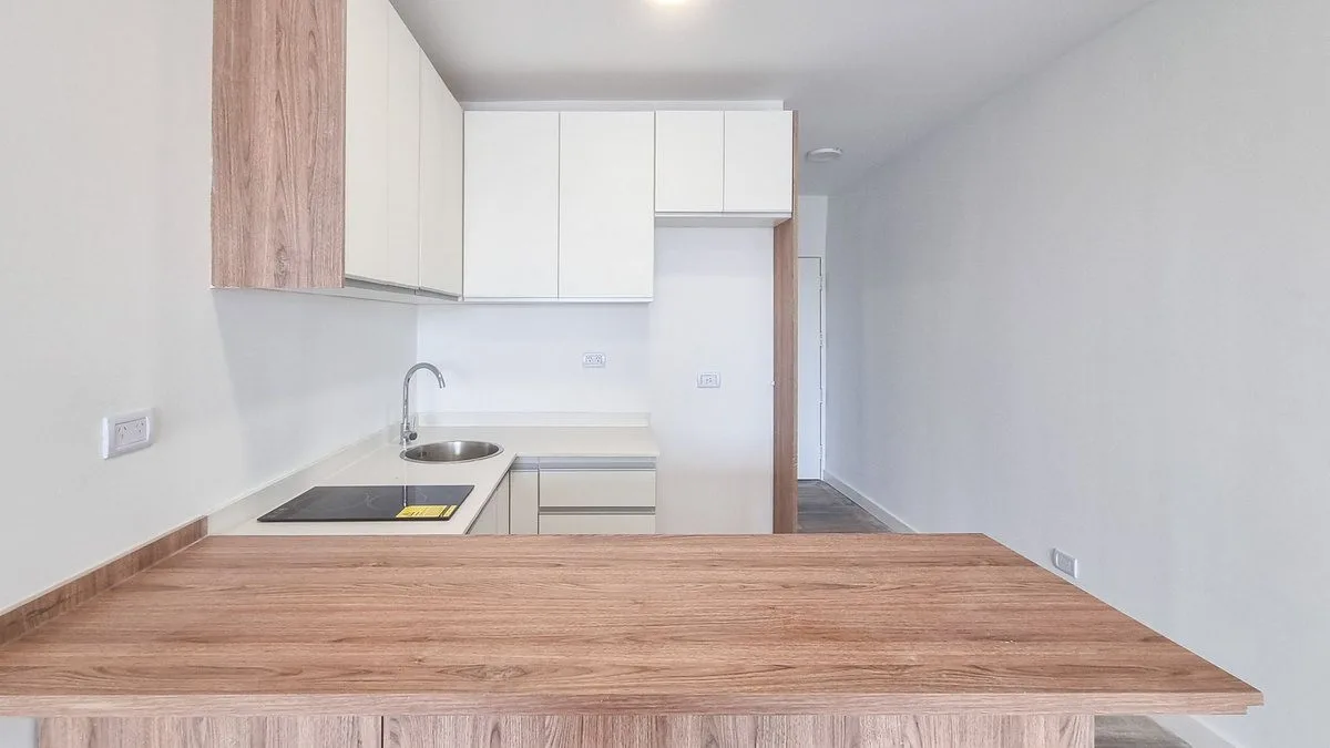 Kitnet com 1 ambiente, no 5º andar, de frente para os fundos (contrafrente), com 33 m² cobertos e 4 m² de varanda semicoberta, totalizando 37 m². Cozinha integrada e banheiro completo. Inclui ar-condicionado frio/calor. O edifício tem coworking, piscina com orientação norte, área de churrasco e parque de uso comum, além de laundry. Ajuste trimestral pelo IPC.