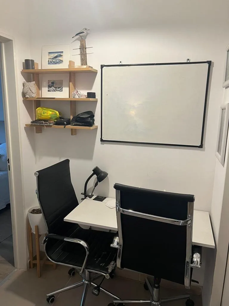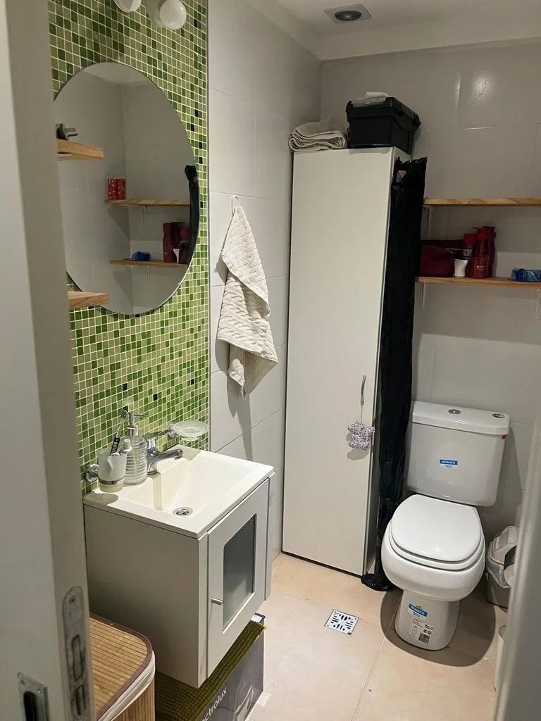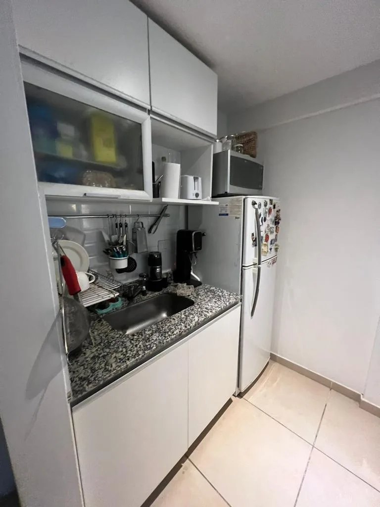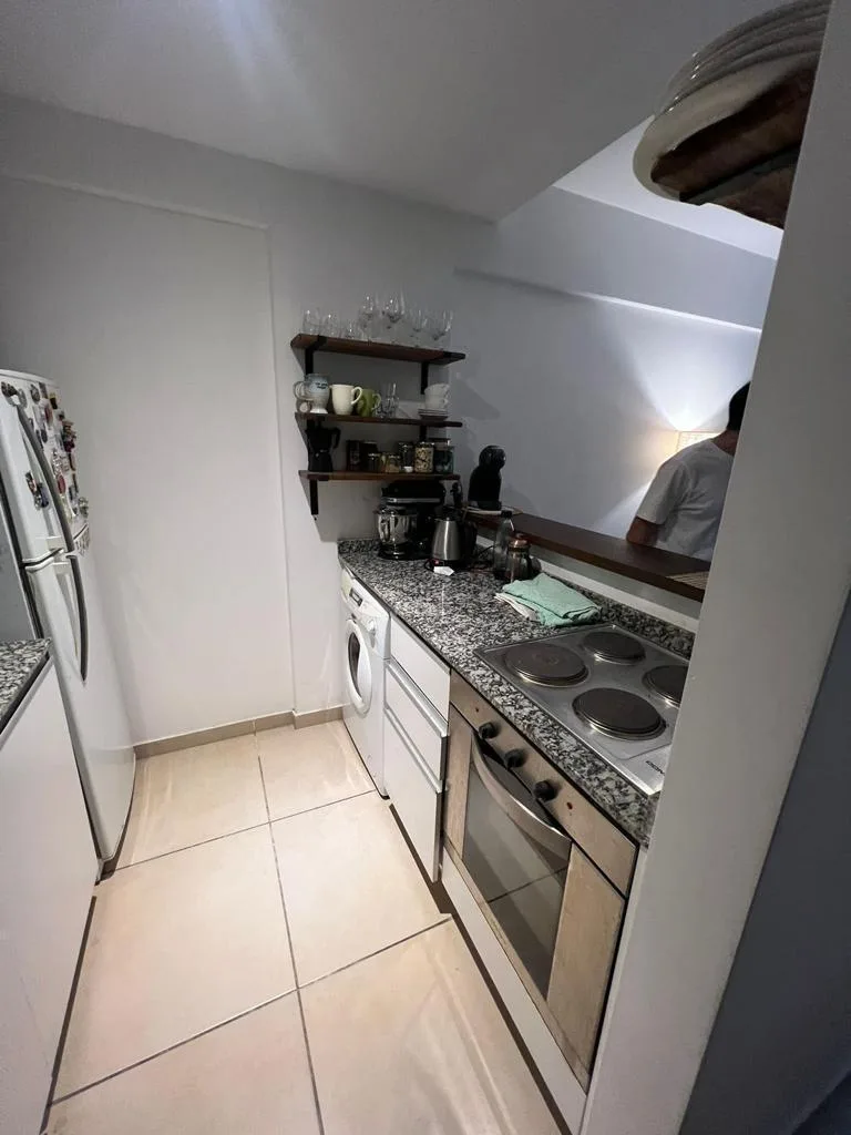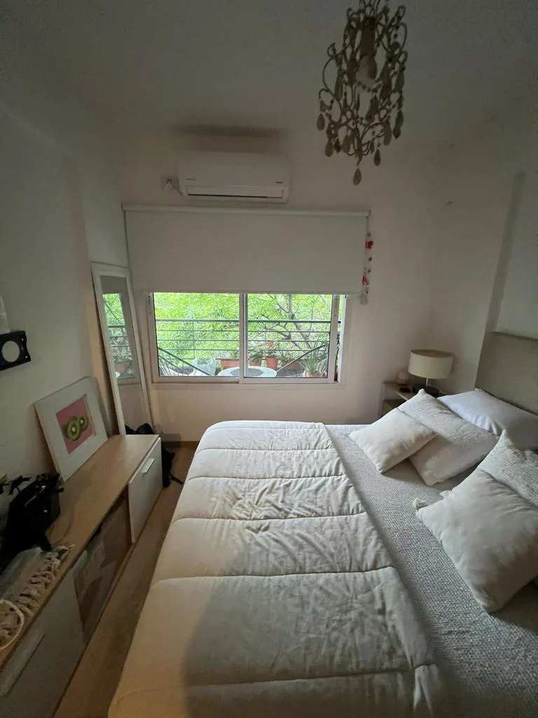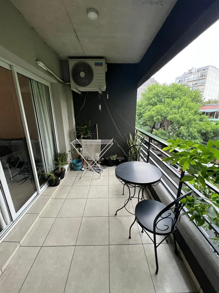 Apartamento de 2 ambientes para aluguel em Coghlan, de frente para a rua, no 3° andar. Possui sala de jantar integrada com saída para varanda em formato de terraço e cozinha integrada com barra. O dormitório em suíte tem armário; há banheiro completo e lavabo de recepção. O imóvel tem ar-condicionado em todos os ambientes. O prédio oferece salão de festas (SUM), terraço e área de churrasco (parrilla).