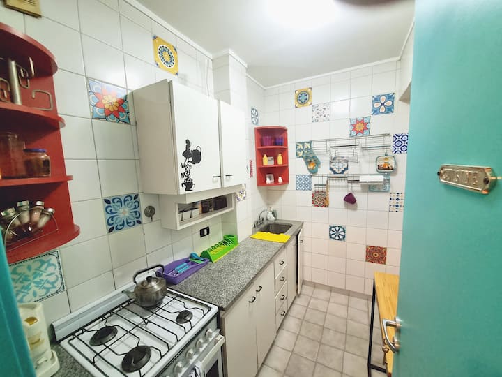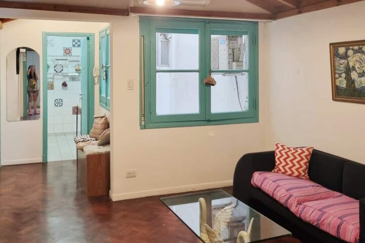 Apartamento em prédio antigo, de 1º andar com acesso por escadas, sem elevador e com poucas unidades. Fica do outro lado da rua em relação à Av. Cabildo, cerca de meio quarteirão do corredor Metrobus e a 1 quadra da estação Olleros da linha D do metrô. O acesso do hóspede é à unidade inteira.