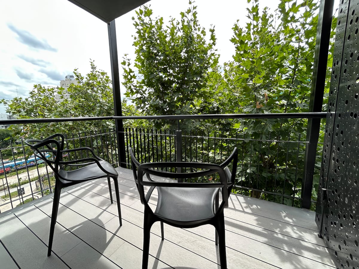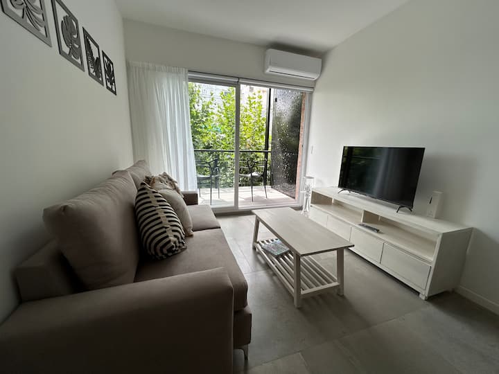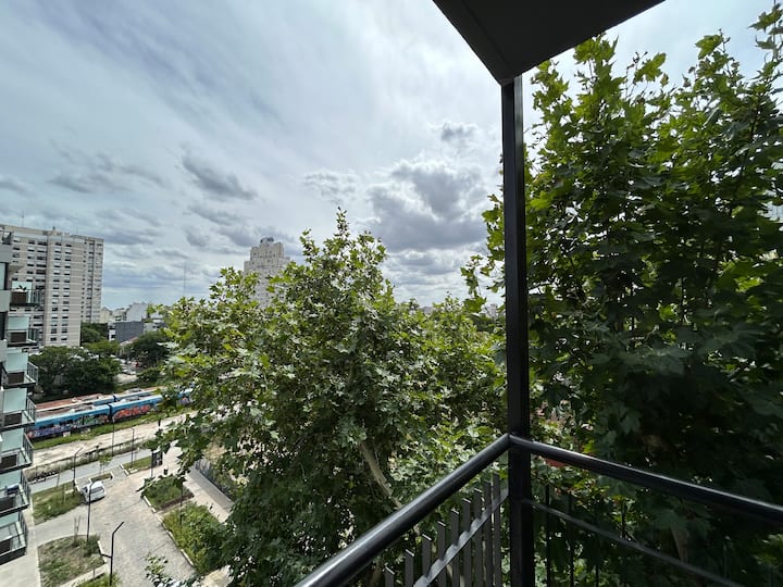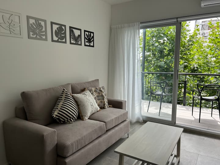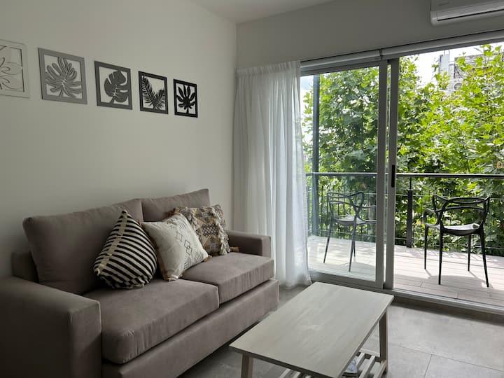 Apartamento em Colegiales com 1 quarto e varanda. O anúncio descreve o imóvel como voltado ao uso tranquilo.