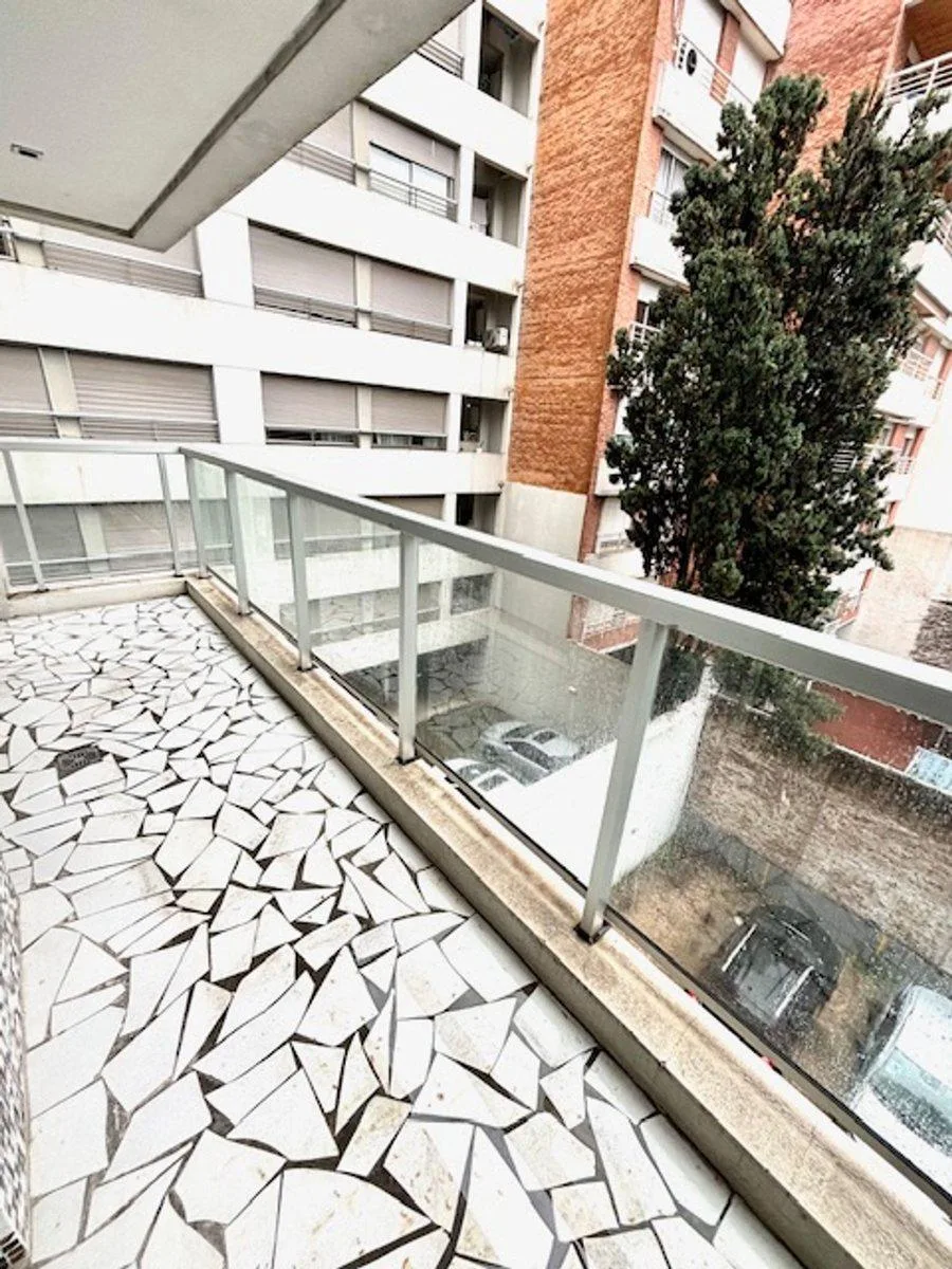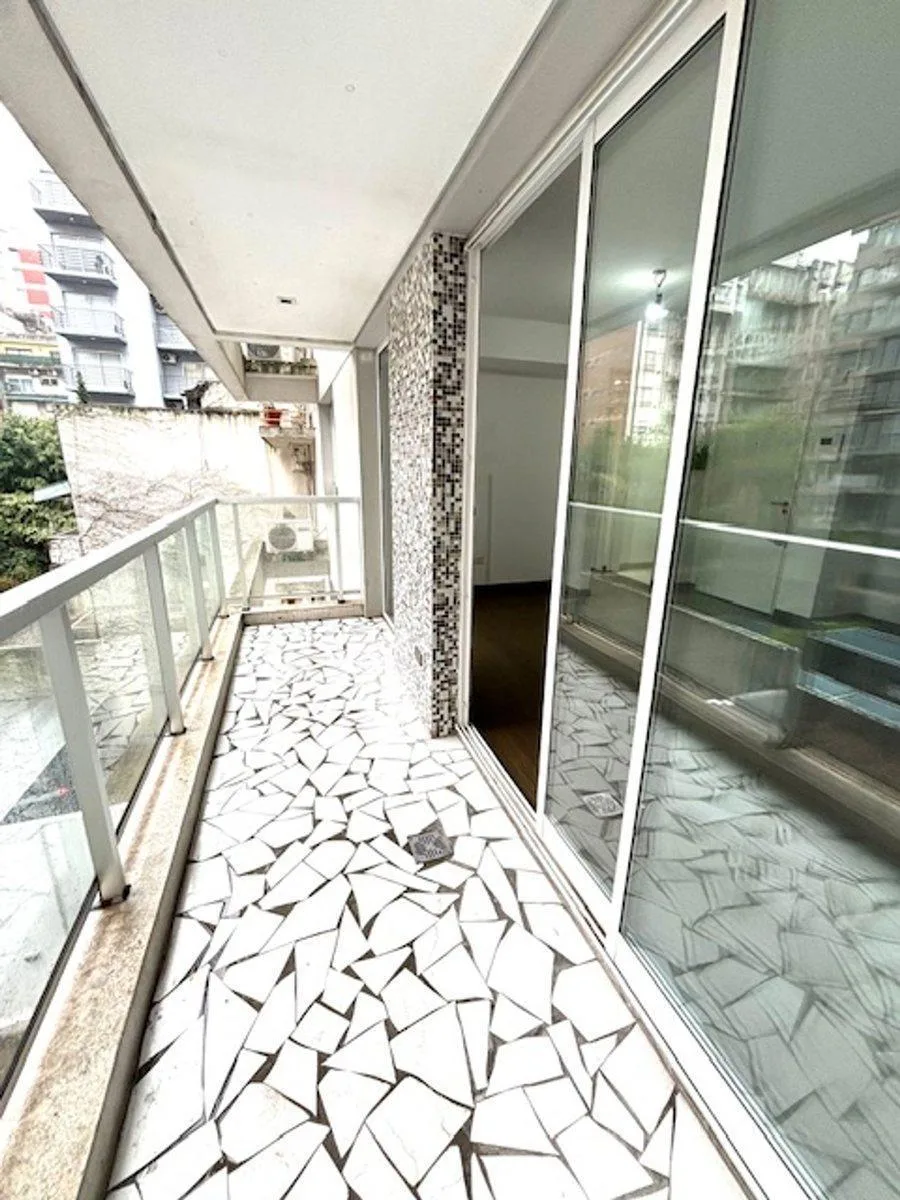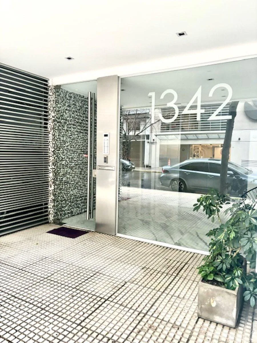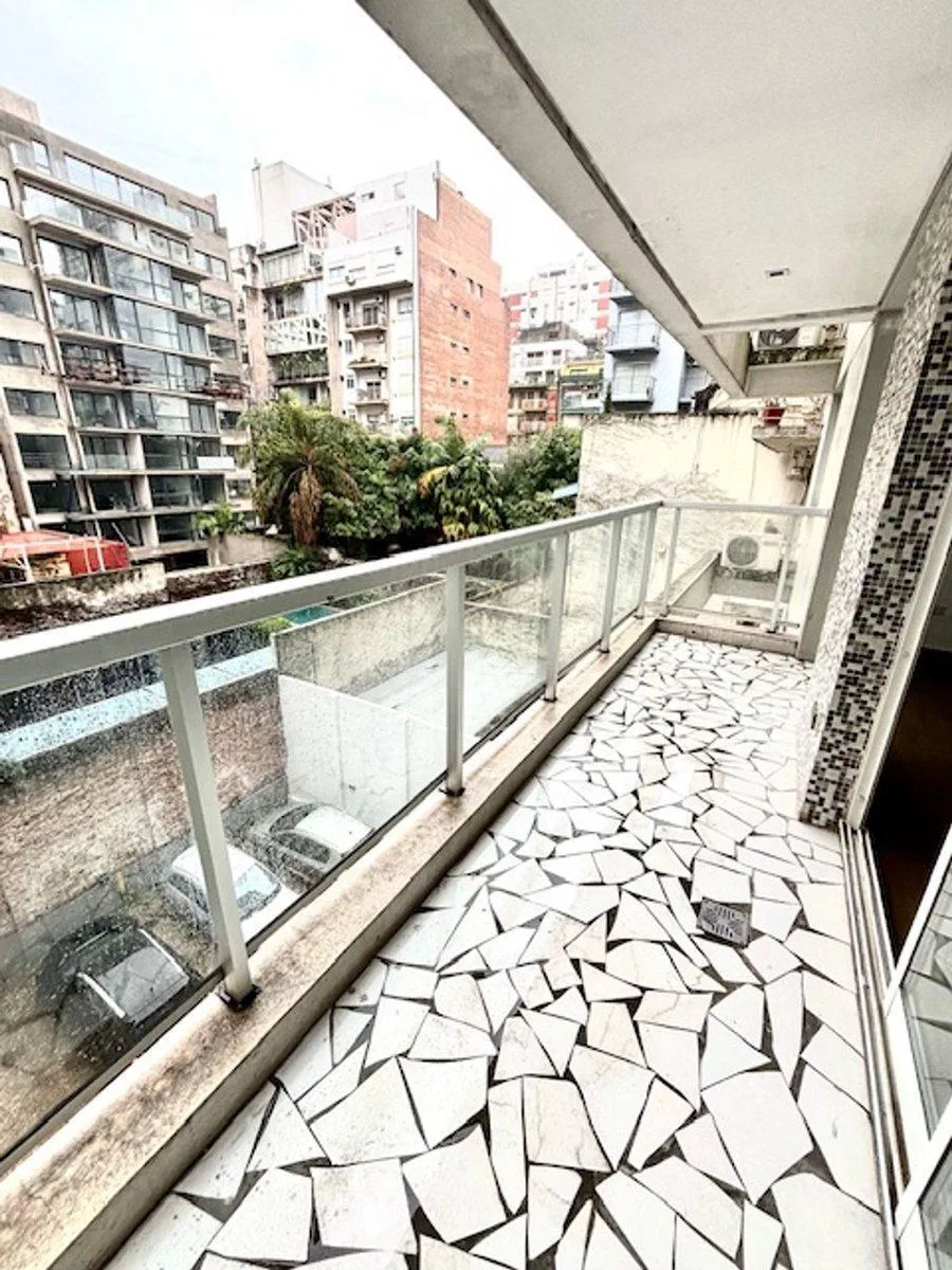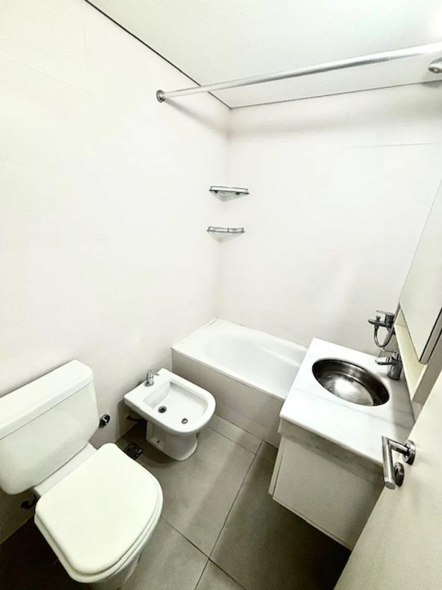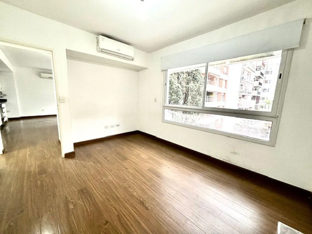 Apartamento de dois ambientes para aluguel em Belgrano, CABA, sem mobília, com orientação este. Fica no 3º andar de fundos em um edifício de 10 andares, 4 unidades por andar, com elevador amplo. Tem living com cozinha integrada e conexão para máquina de lavar, varanda, lavabo e suíte com closet, além de janelas de alumínio com vidro duplo (DVH), ar-condicionado nos dois ambientes e aquecimento por piso radiante individual.