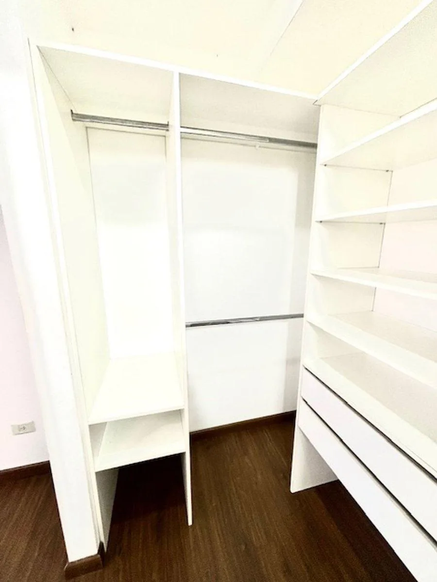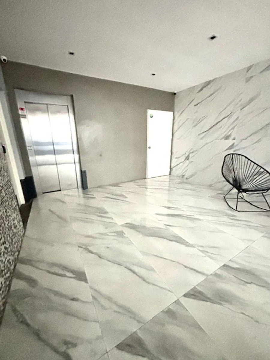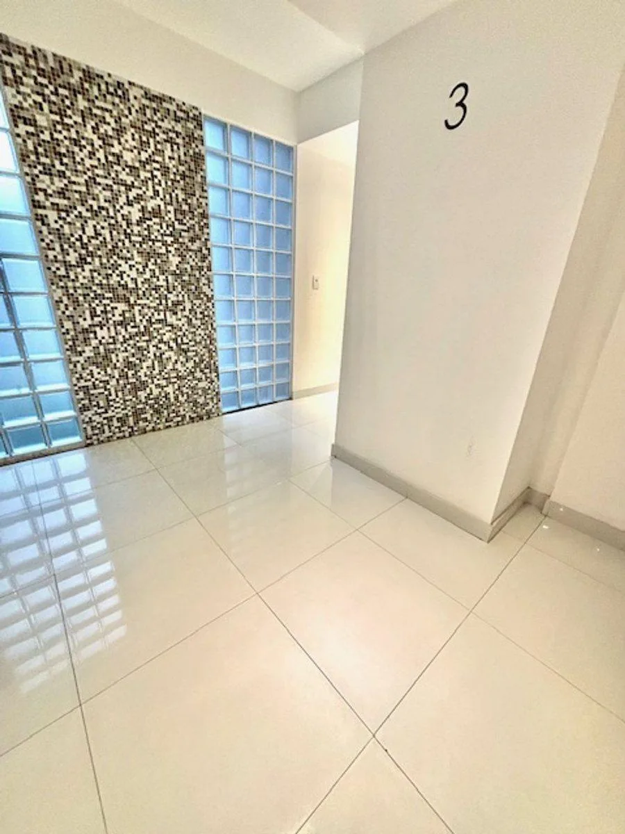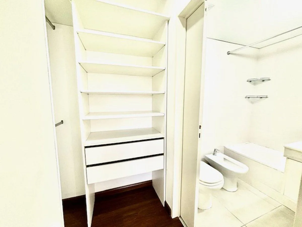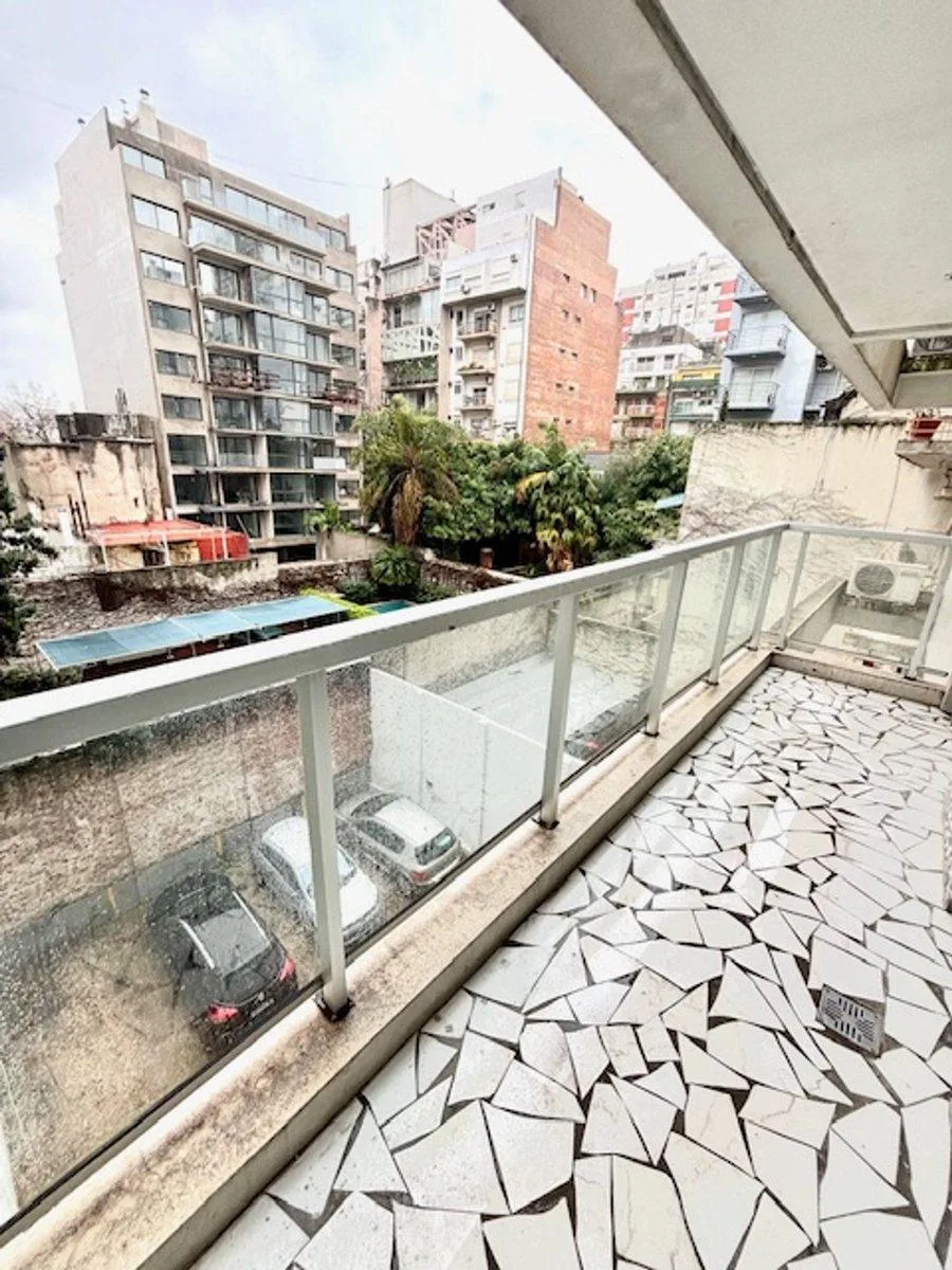 Apartamento de dois ambientes para aluguel em Belgrano, CABA, sem mobília, com orientação este. Fica no 3º andar de fundos em um edifício de 10 andares, 4 unidades por andar, com elevador amplo. Tem living com cozinha integrada e conexão para máquina de lavar, varanda, lavabo e suíte com closet, além de janelas de alumínio com vidro duplo (DVH), ar-condicionado nos dois ambientes e aquecimento por piso radiante individual.