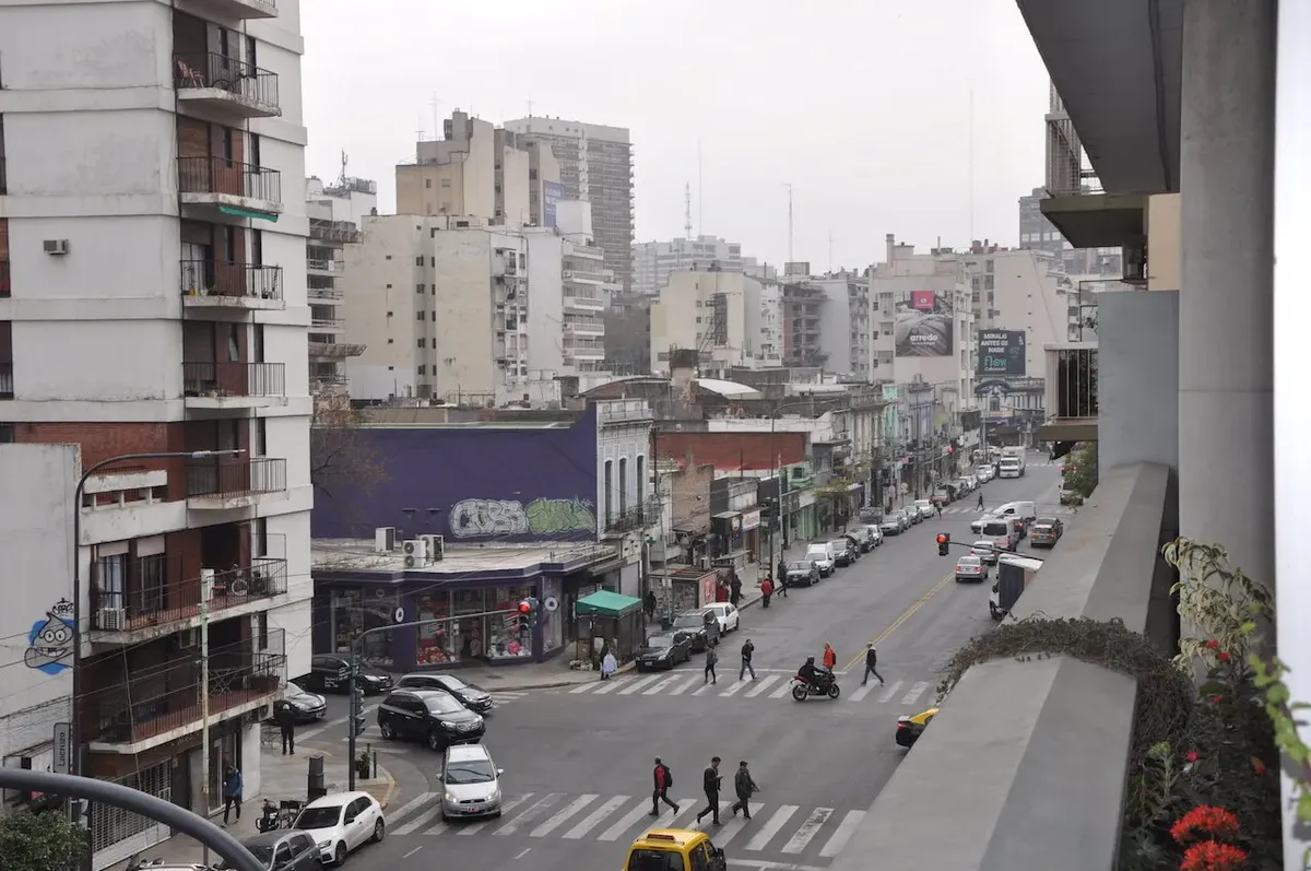 Apartamento de dois ambientes em Colegiales, com varanda corrida. Fica no 2º andar sobre a Av. Federico Lacroze, com frente, e inclui cozinha integrada e 1 dormitório. O living com piso porcelanato tem janela para a rua e acesso à varanda com piso de grama sintética. A cozinha dispõe de forno elétrico, fogão de 4 bocas com vitrocerâmica e janela para o pátio. O dormitório de frente tem guarda-roupa com porta espelhada e blackouts completos. O banheiro completo tem banheira. Há 2 aparelhos de ar-