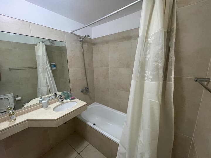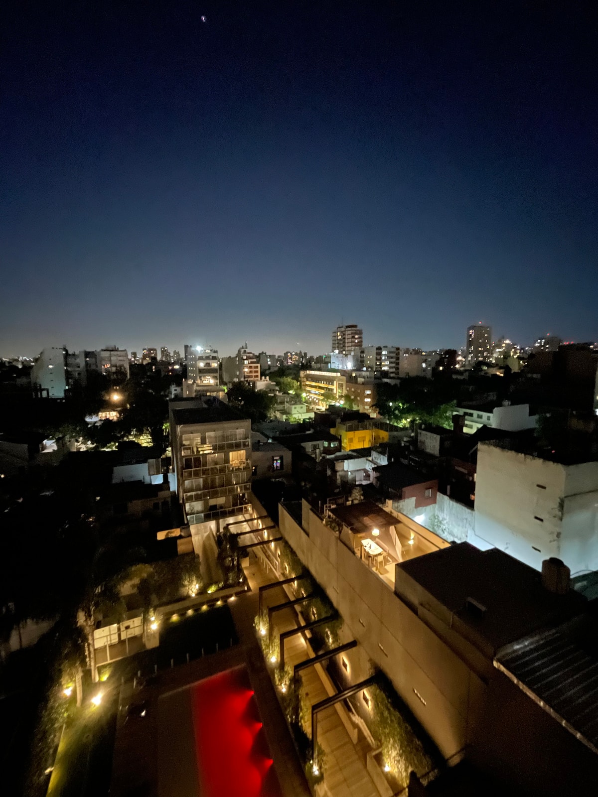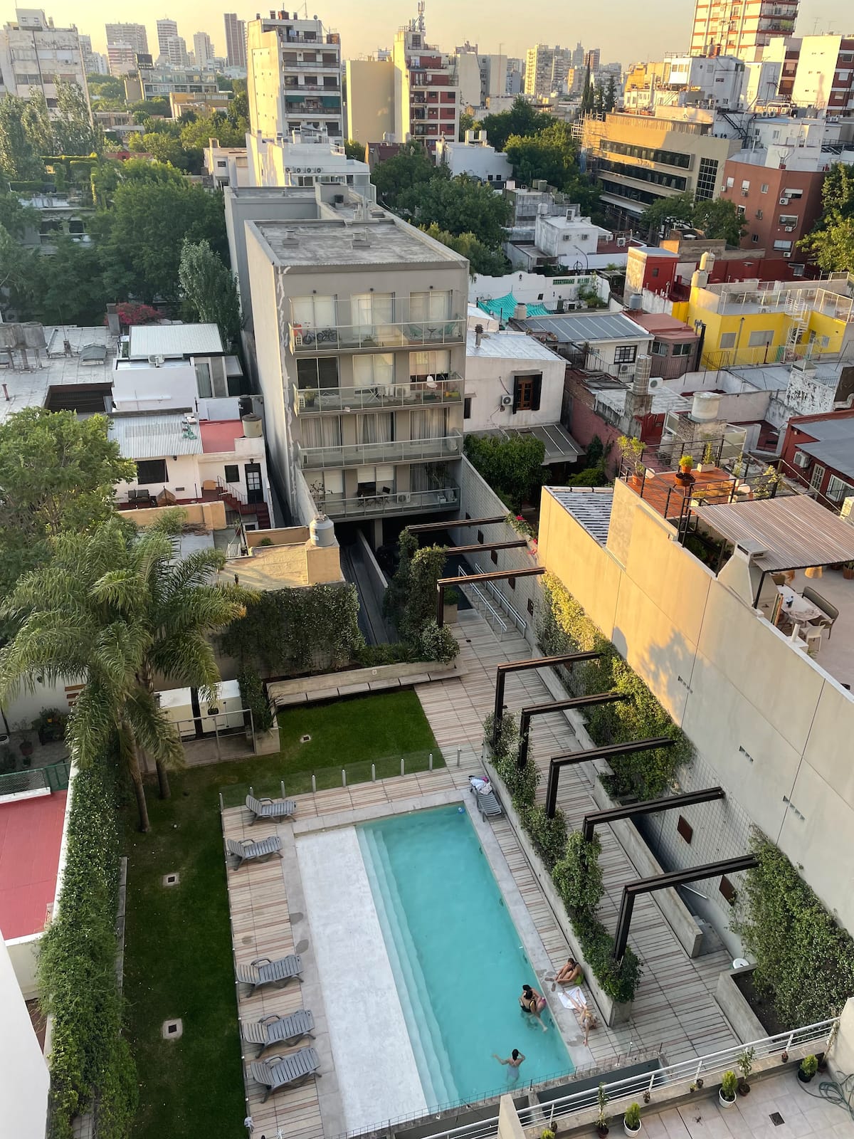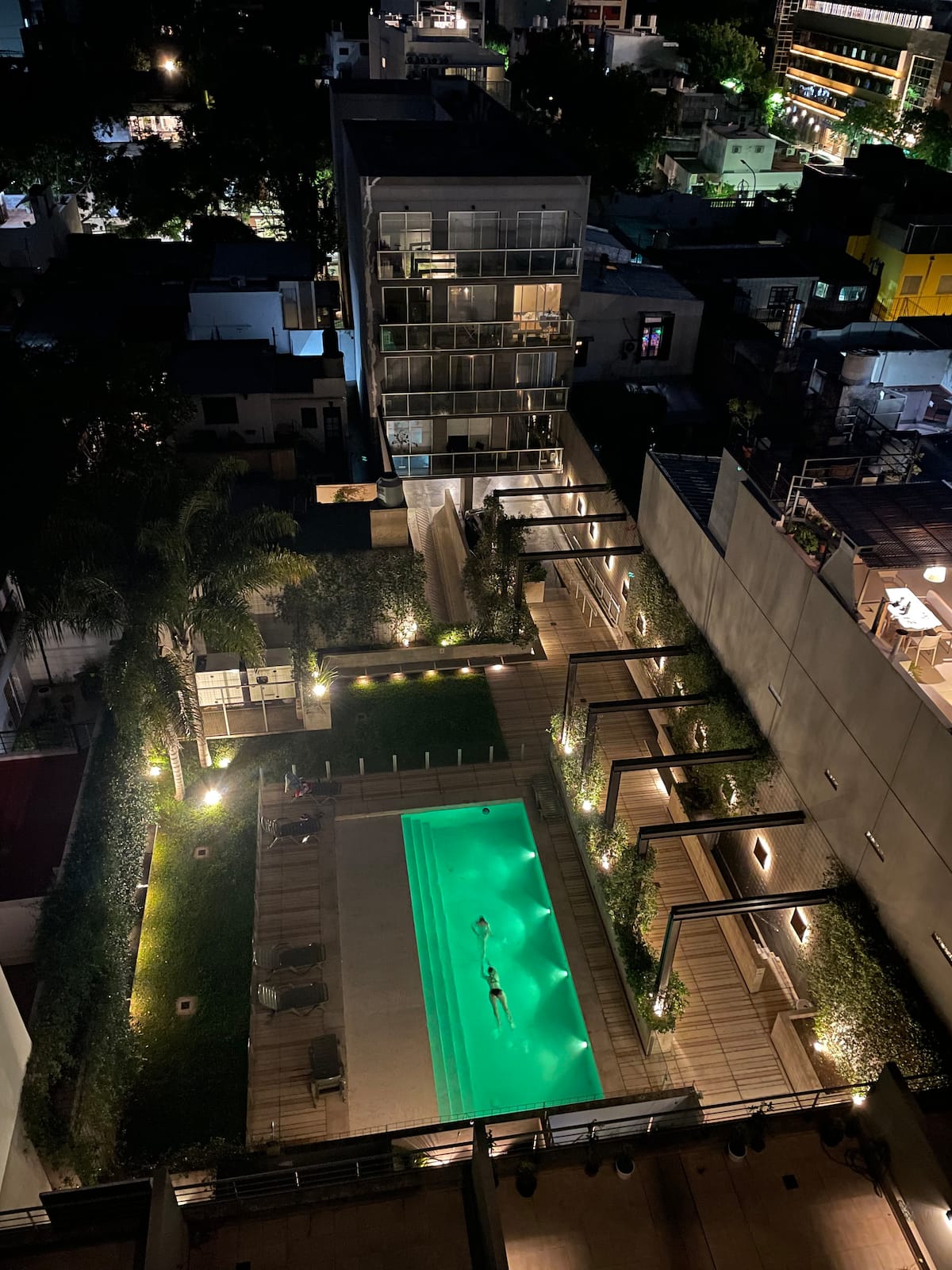 Apartamento em Colegiales. Ambiente único, com vista aberta para a piscina do edifício. O condomínio conta com piscina ao ar livre com chuveiros, lavanderia, academia, salão de festas com área de churrasco e terraço, além de vigilância 24 horas. A região tem comércio e acesso a linhas de ônibus, ao trem Mitre e a estações de metrô.