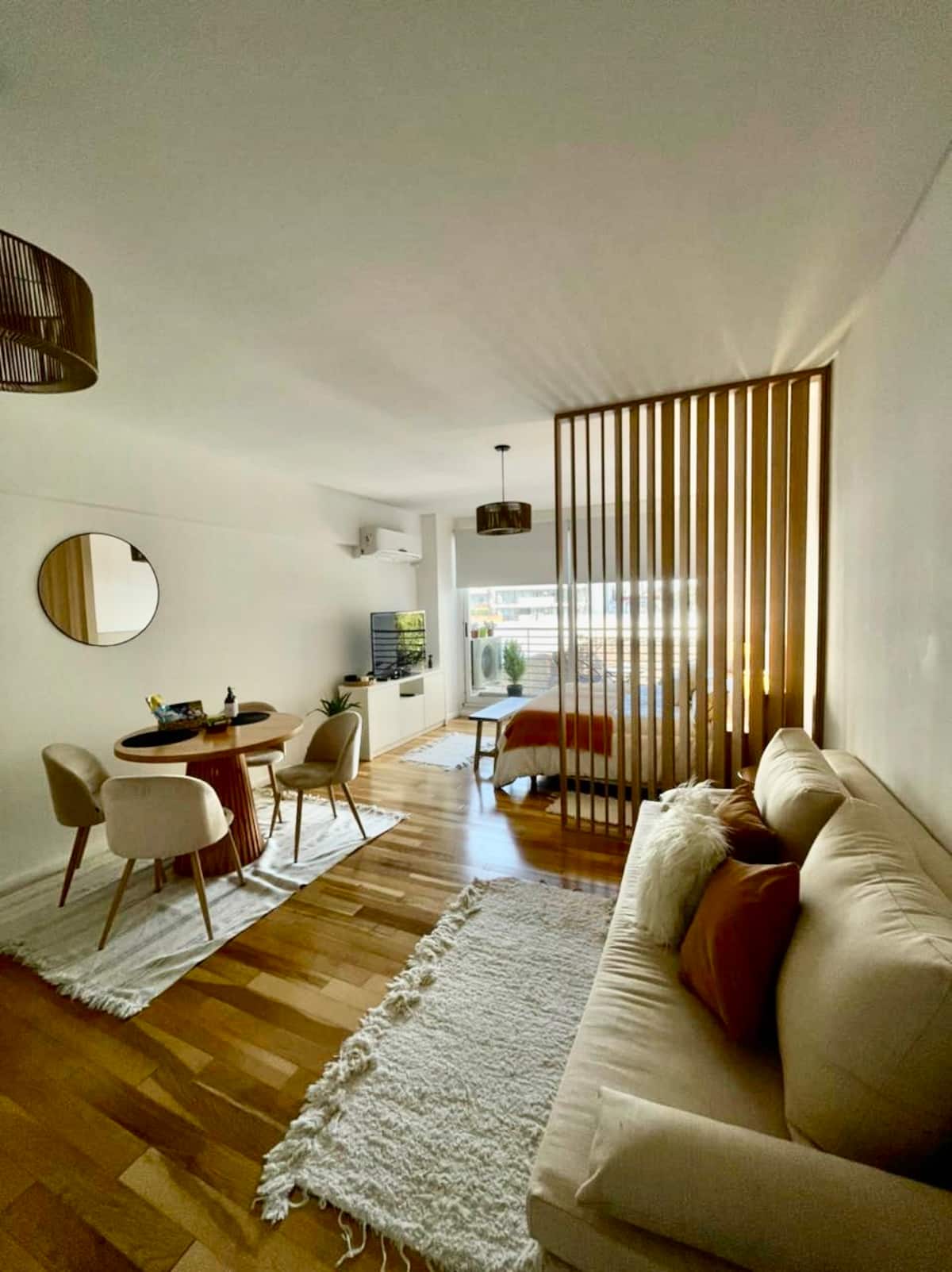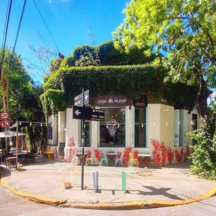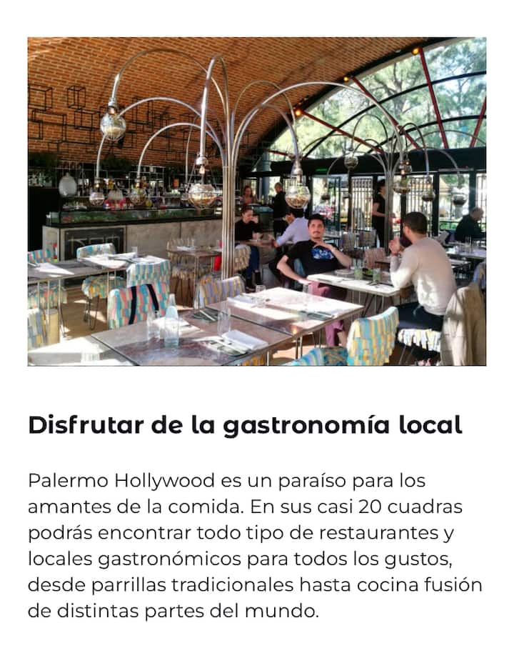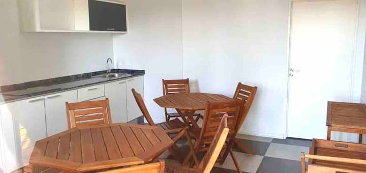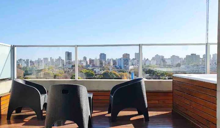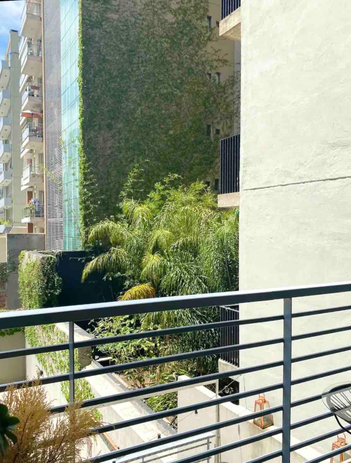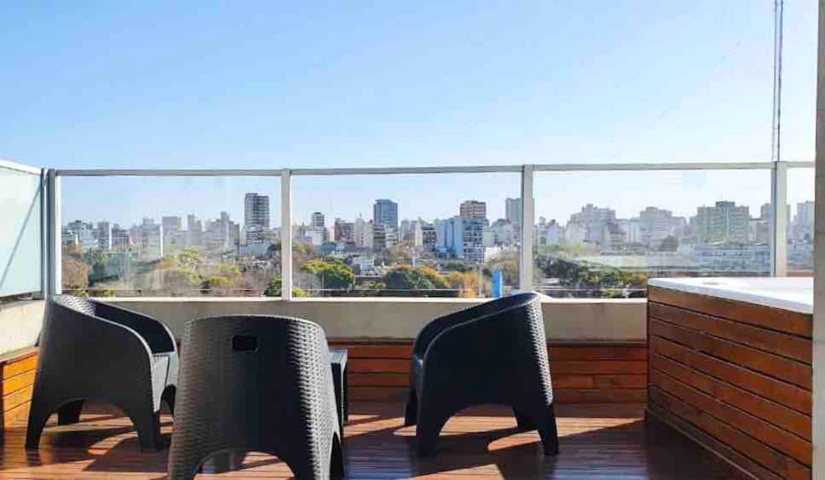 Kitnet em Colegiales com 43 m², mobiliada e com varanda. Cozinha completa para até 3 pessoas, com geladeira com freezer, forno, micro-ondas, forno elétrico, torradeira e cafeteira. Ar-condicionado frio e quente, Wi-Fi gratuito com internet ilimitada de 300 megabytes e TV de 45" com TV a cabo. Localizado a 2 km de Palermo Soho.