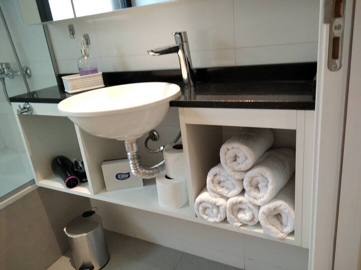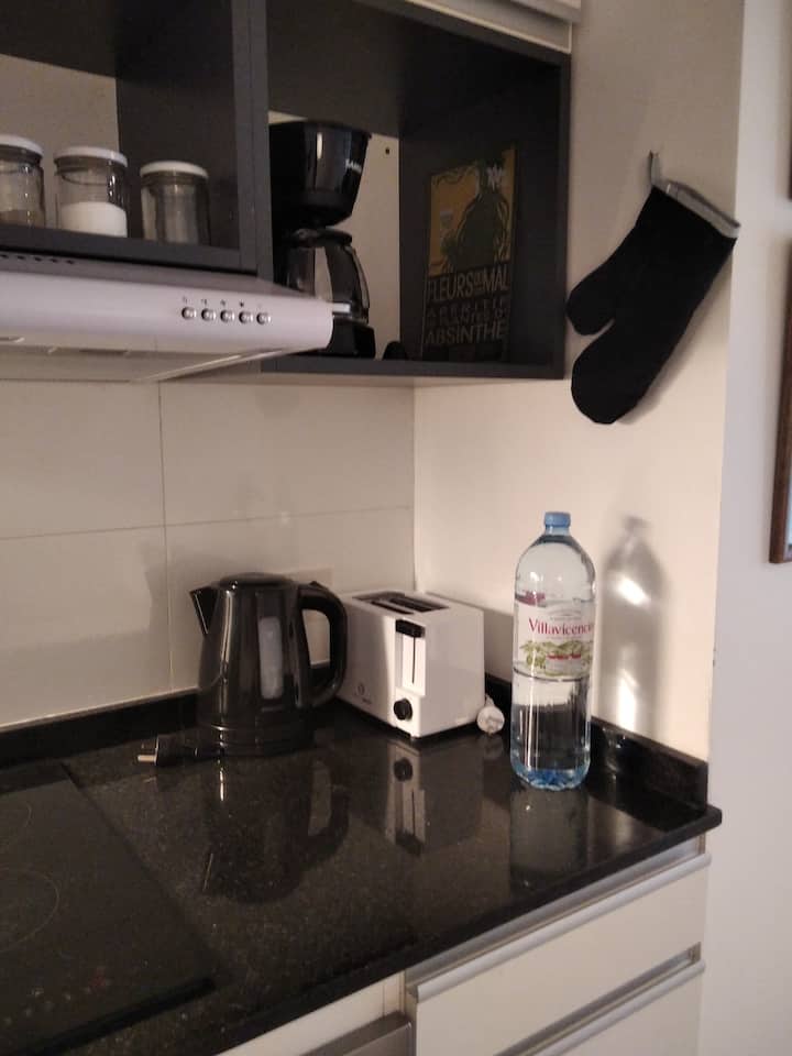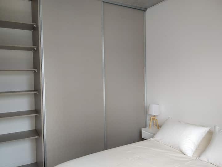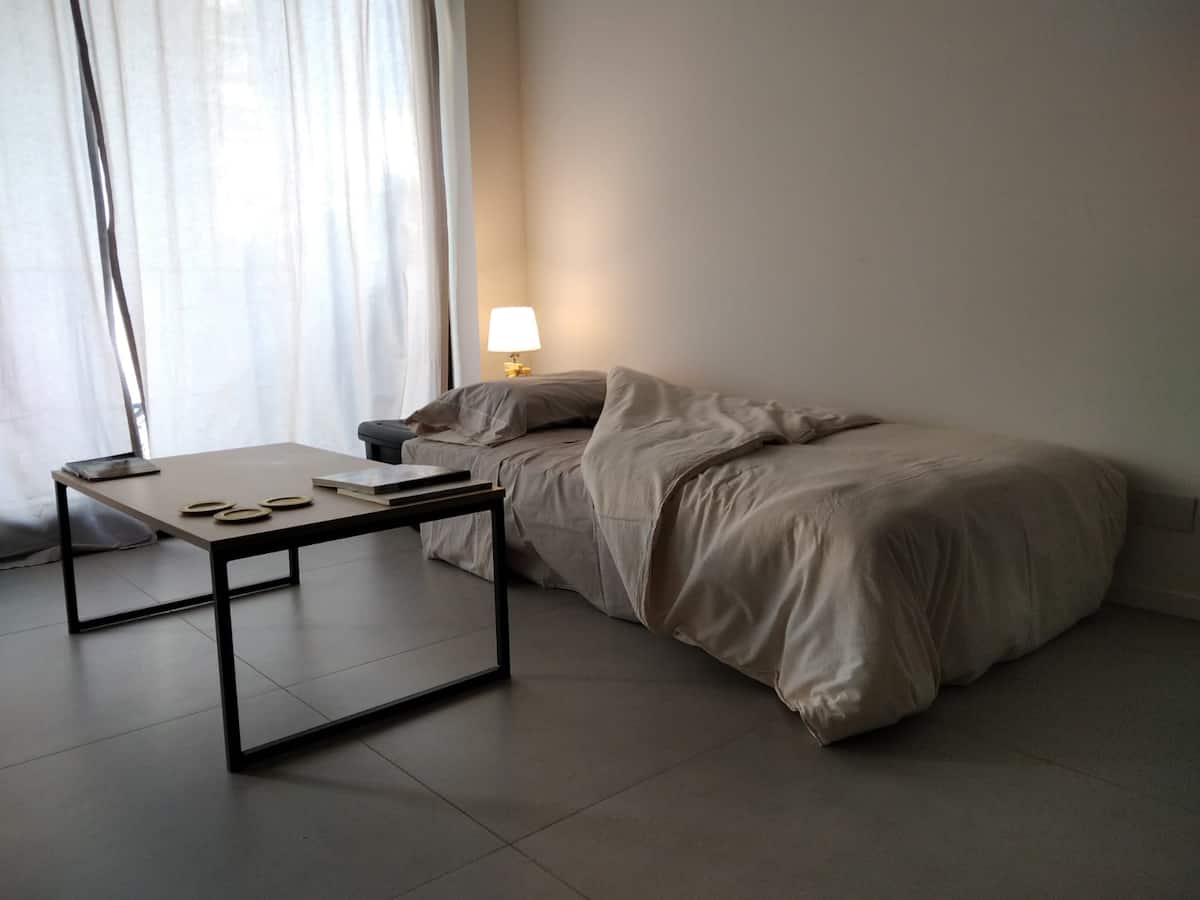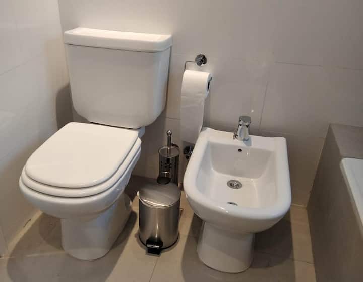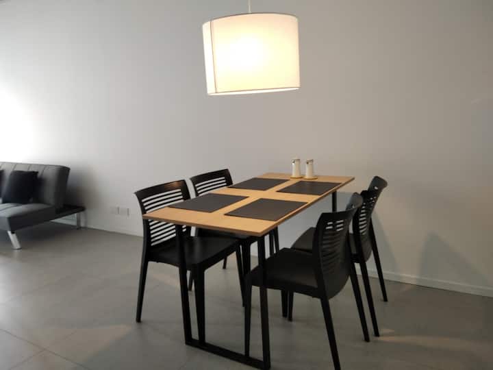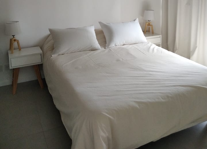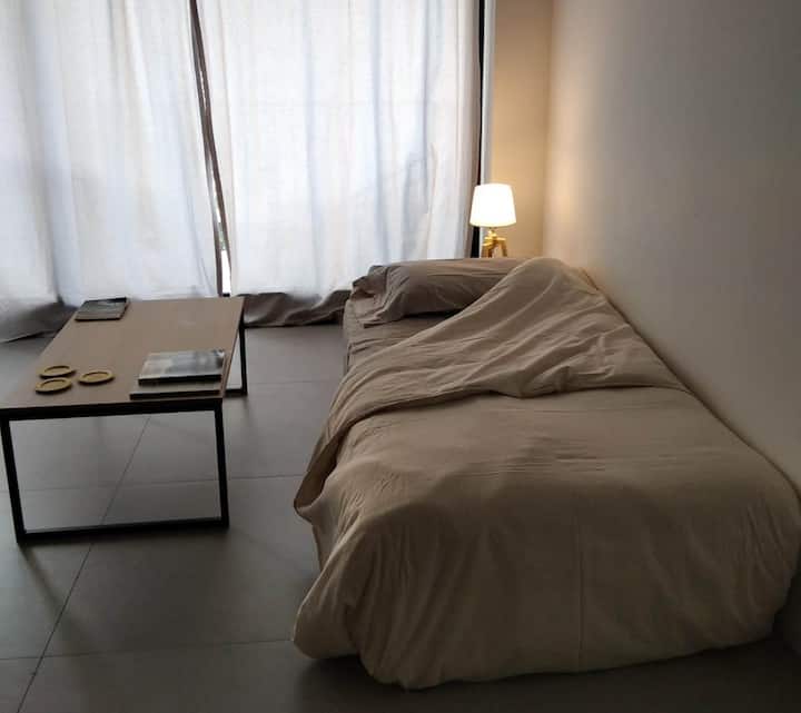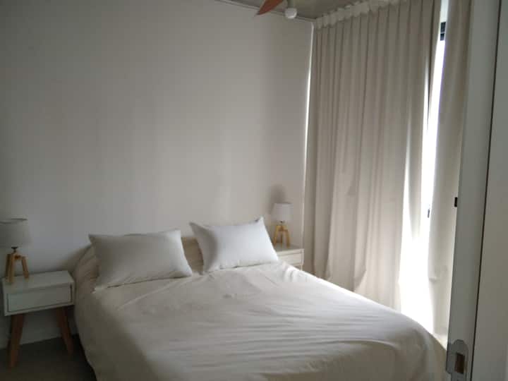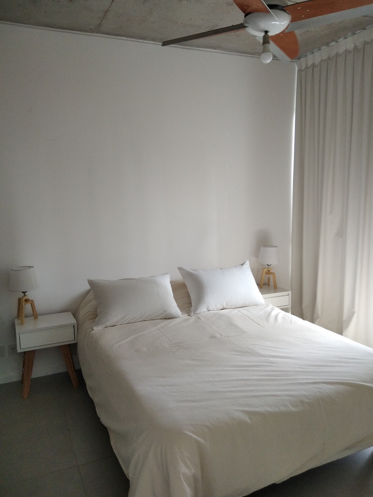 Apartamento de 44 m² em Belgrano, com vista para a copa das árvores e varanda. No térreo, há uma área de cozinha/dining/living integrada à varanda e um quarto com cama de casal, além de 1 banheiro. O imóvel tem TV HD Smart, Wi-Fi, micro-ondas, geladeira com freezer, fogão a gás e ar-condicionado frio/quente; a cozinha inclui forno elétrico, fogão de vidro-cerâmica, chaleira elétrica, torradeira e cafeteira elétrica. O prédio oferece bicicletário no térreo e, no 8º andar, uma área de terraço com