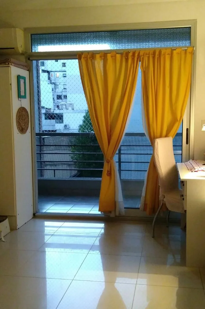 Kitnet de 29 m² com 4 m² de varanda semicoberta, no 3º andar de um prédio com 7 andares, de fundos (contrafrente) em Colegiales. Cozinha completa com fogão (anafes) e forno elétrico, com armários superiores e inferiores, banheiro completo e ar-condicionado frio-calor. Água quente central e acesso ao SUM com terraço de uso comum e churrasqueira. Aluguel com contrato de 2 anos e aumentos fixos semestrais: 1º semestre US$ 600.000, 2º semestre US$ 700.000, 3º semestre US$ 800.000, 4º semestre US$ 90