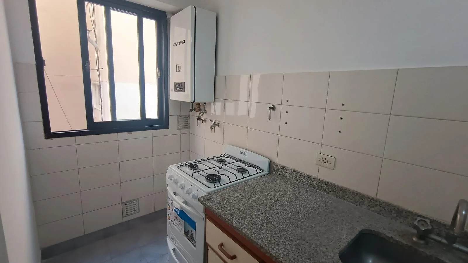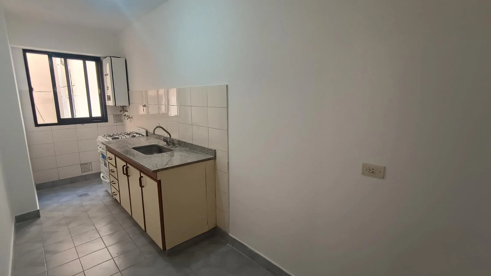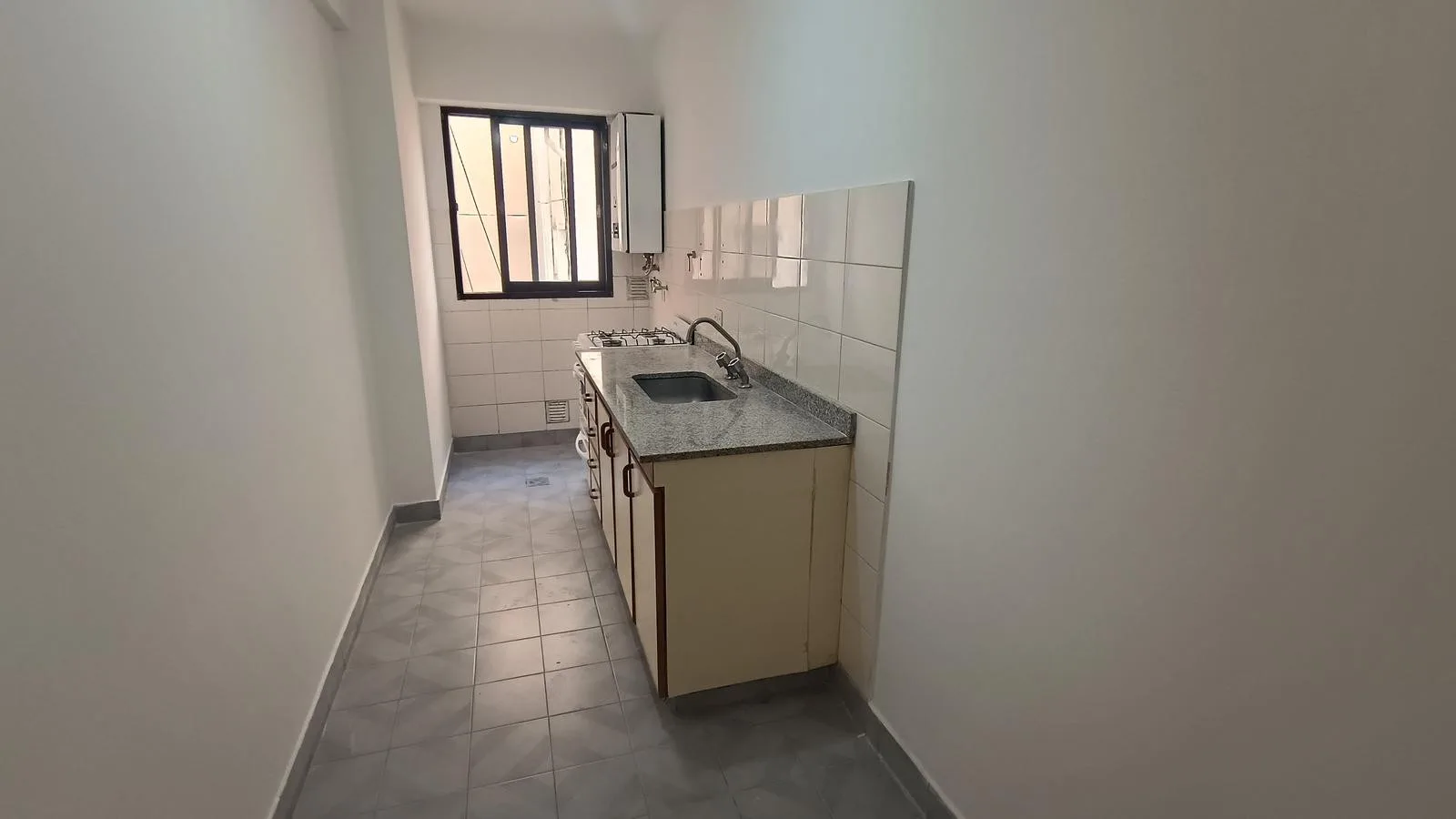 Apartamento de 2 ambientes em Colegiales, com 1 quarto e varanda francesa. Cozinha independente com espaço para mesa do dia e área de lavanderia, com forno novo. Sala com saída para varanda francesa e banheiro completo com banheira. O dormitório tem amplo armário. Persianas em ambos os ambientes, ar-condicionado frio/calor, aquecedor de passagem (tiro balanceado) e pontos de iluminação. O prédio tem encarregado com moradia permanente, segurança nos fins de semana e terraço de uso comum. Contrato