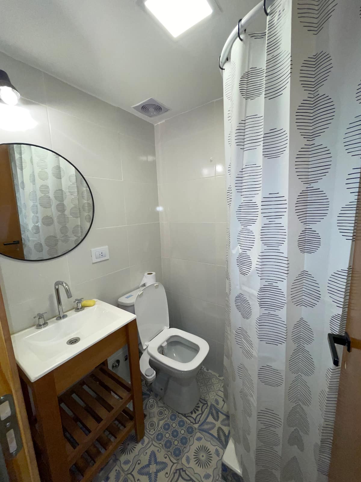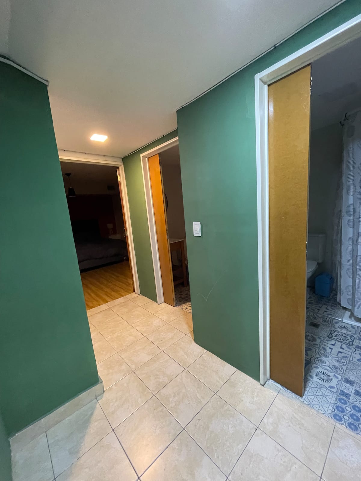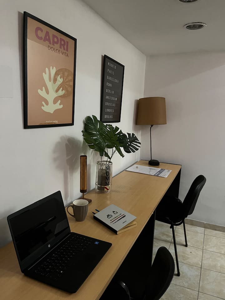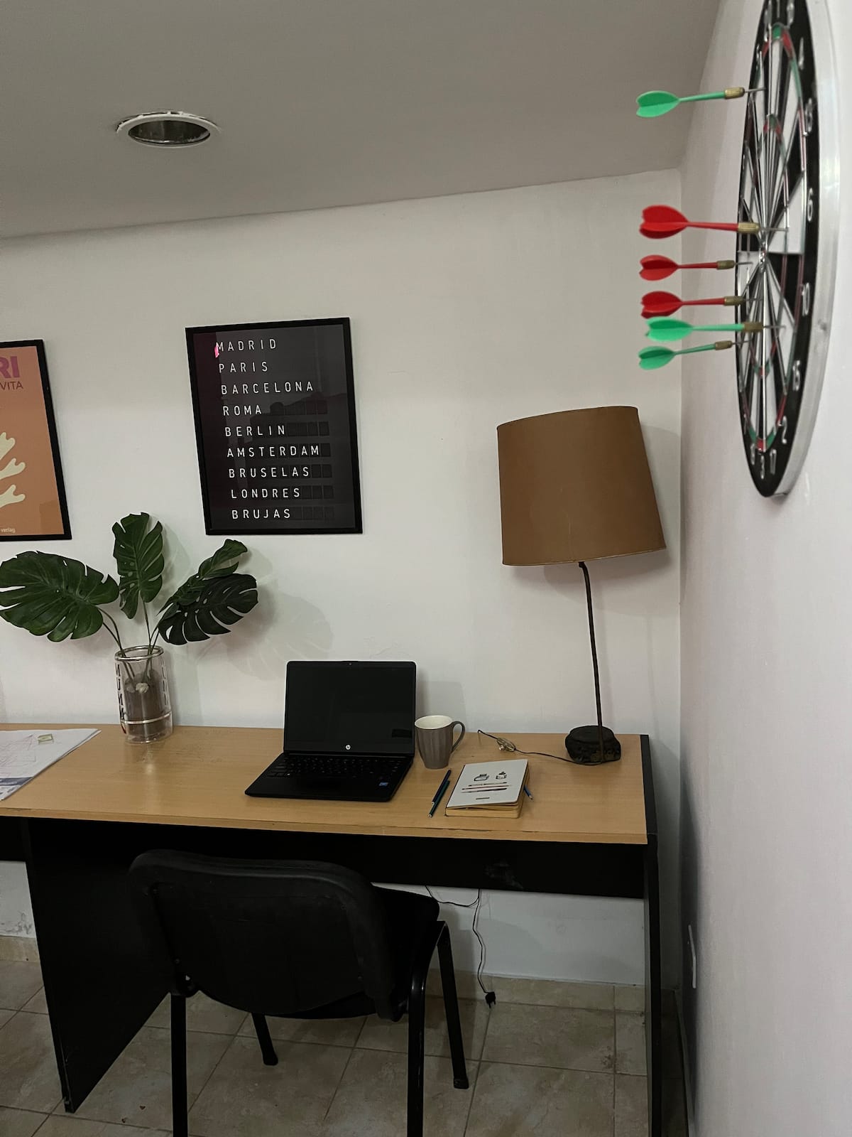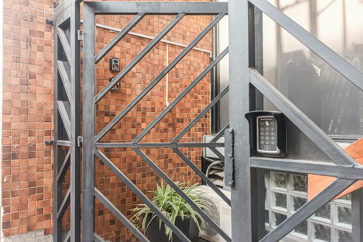Quarto privativo com cama de casal (full) e áreas compartilhadas. Há 3 banheiros compartilhados, sala e cozinha compartilhada, além de área de estudo e Wi-Fi. A área de relaxamento tem ar-condicionado. Localização em San Telmo; estação de metrô da Linha C a 50 metros, Plaza de Mayo a 800 metros e Mercado de San Telmo a 400 metros.