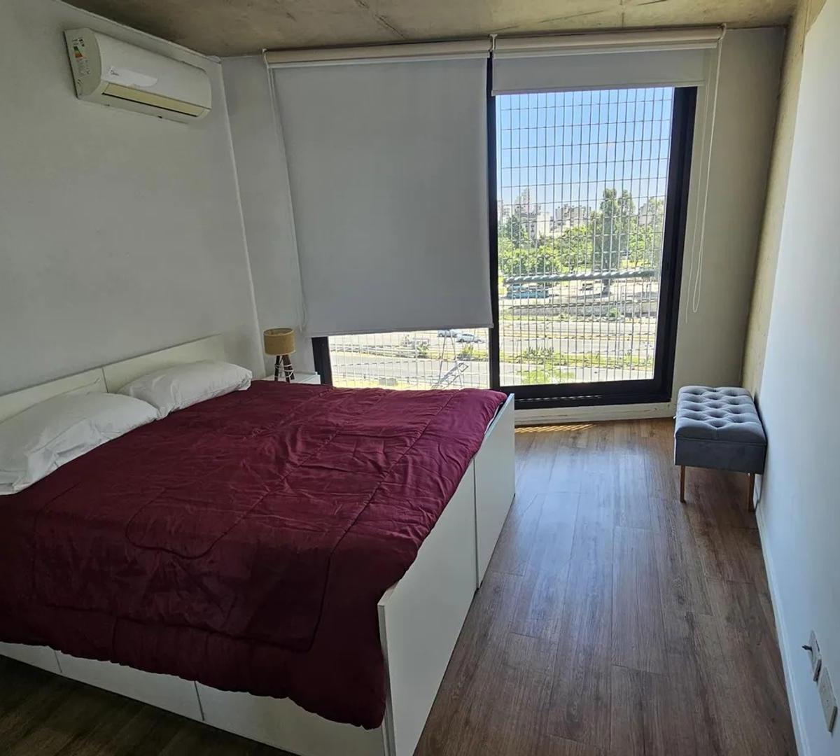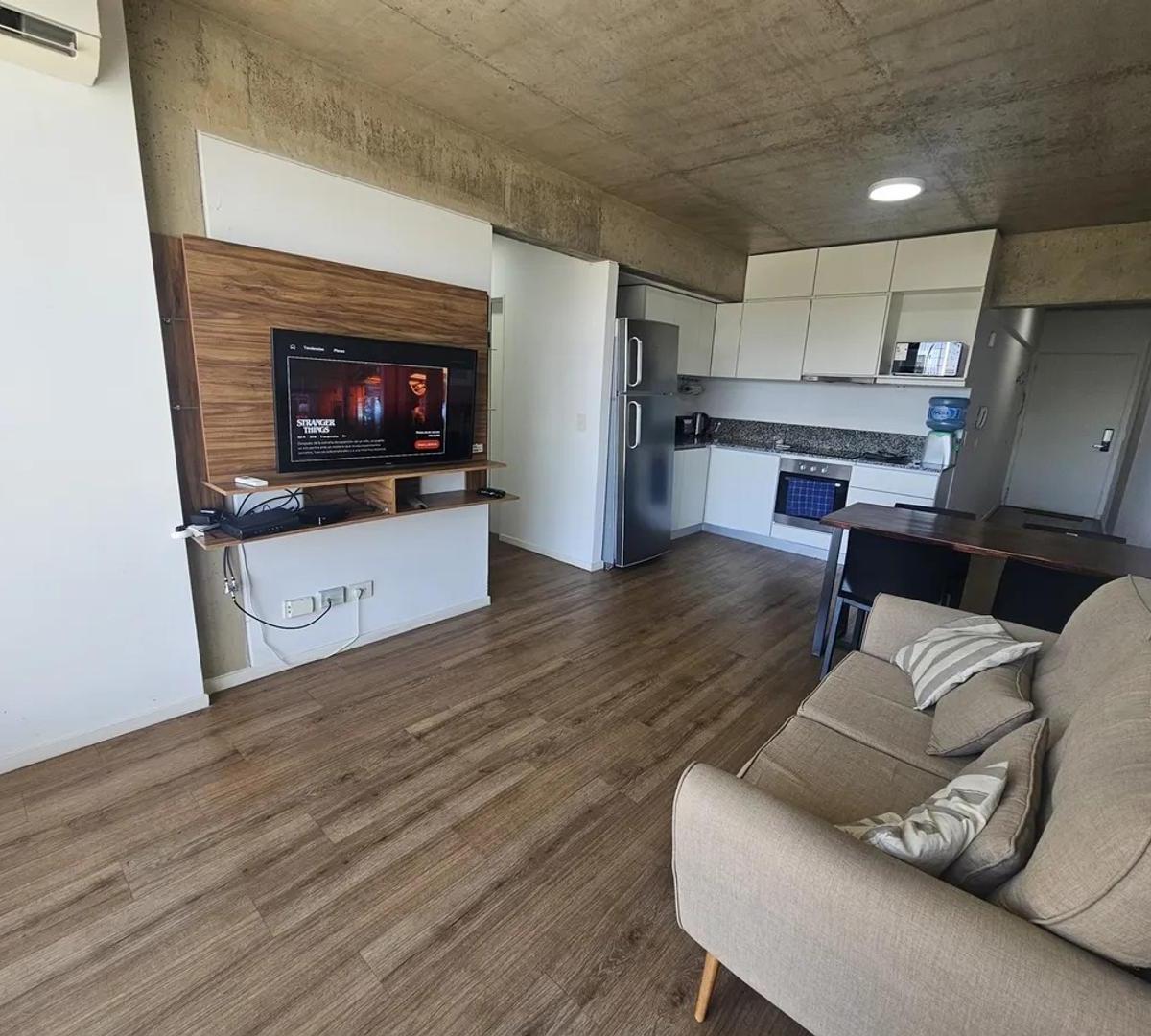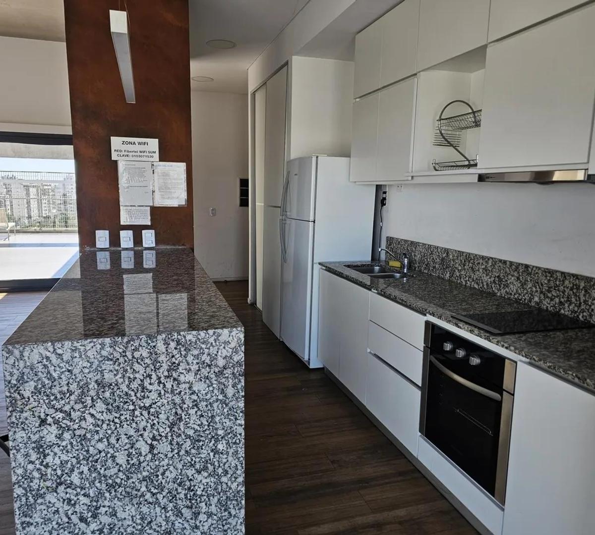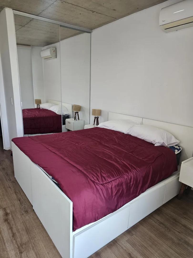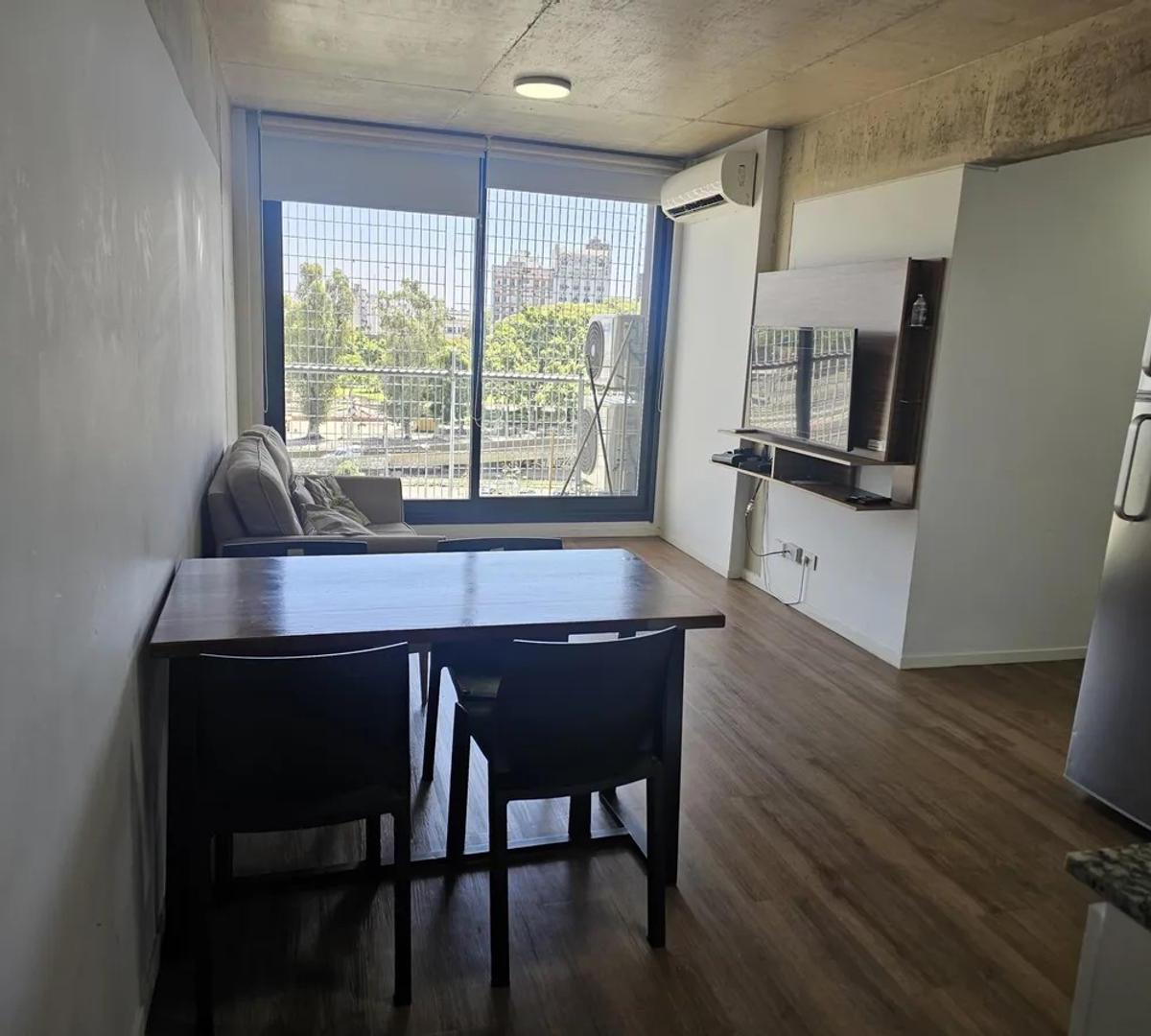 Apartamento de 2 ambientes com 55 m² em San Telmo, com varanda de frente para a rua. Possui 1 quarto, ar-condicionado frio/quente em todos os ambientes, cozinha integrada com forno elétrico e eletrodomésticos Whirlpool (geladeira e micro-ondas), banheiro completo e placard embutido. O apartamento é mobiliado e conta com fechadura digital na entrada. O prédio tem segurança monitorada 24 h, solarium, salão de festas, área de churrasco e lavanderia; a vaga coberta é opcional (mediante consulta). O
