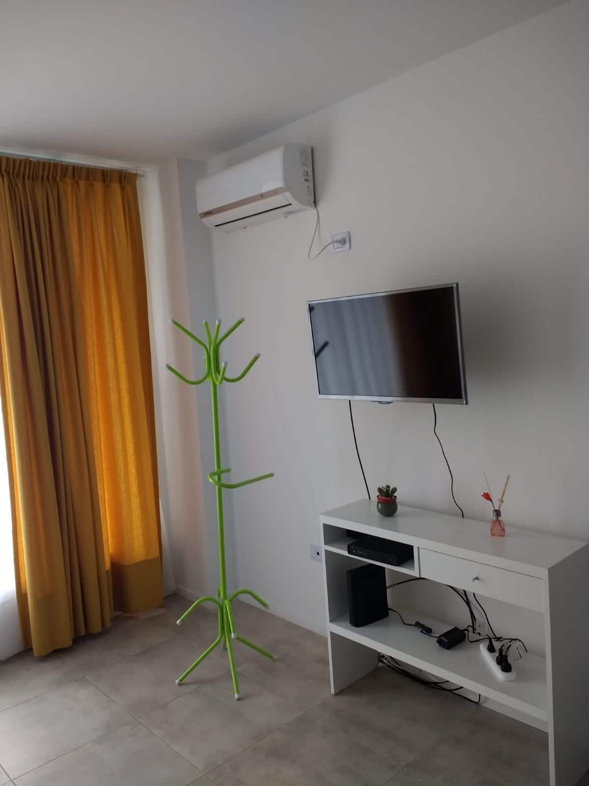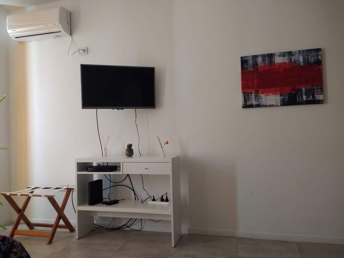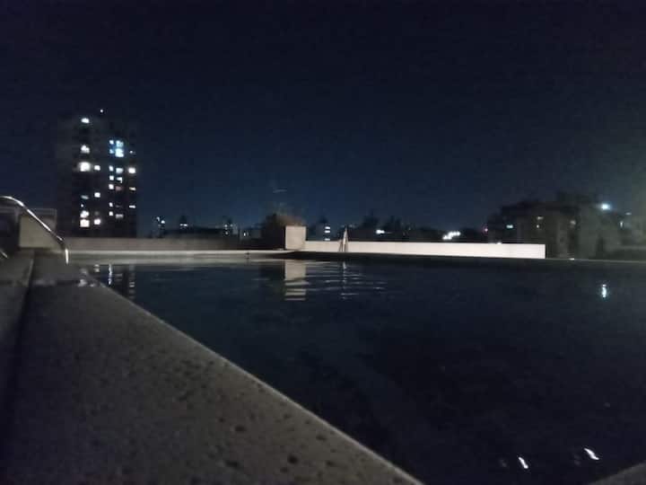 Apartamento tipo kitnet com 1 quarto, com ar-condicionado. Tem TV com Netflix, Wi-Fi, secador de cabelo, micro-ondas, armário e varanda. O prédio conta com lavanderia, área de churrasco, terraço, piscina e academia.