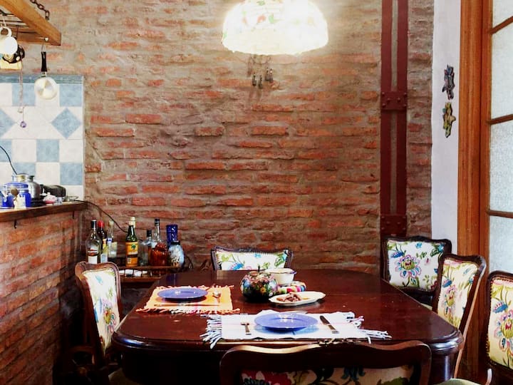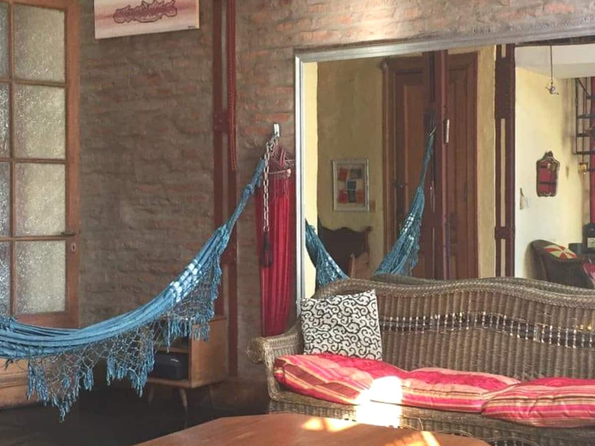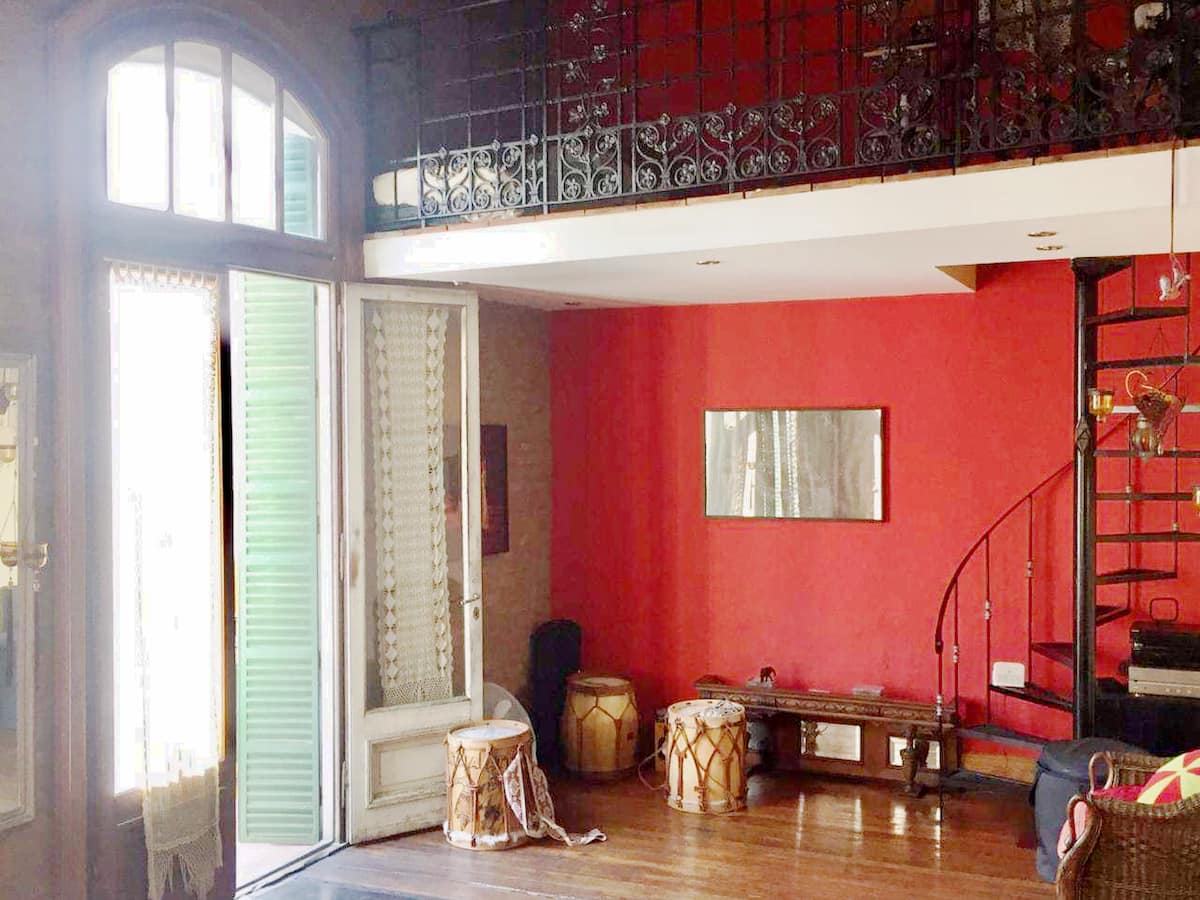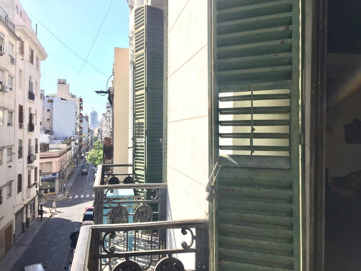 Quarto em apartamento amplo em San Telmo, com cama de casal (queen size). Banheiro compartilhado, Wi-Fi e acesso a terraço. O hóspede pode usar o restante do imóvel, exceto os outros quartos.