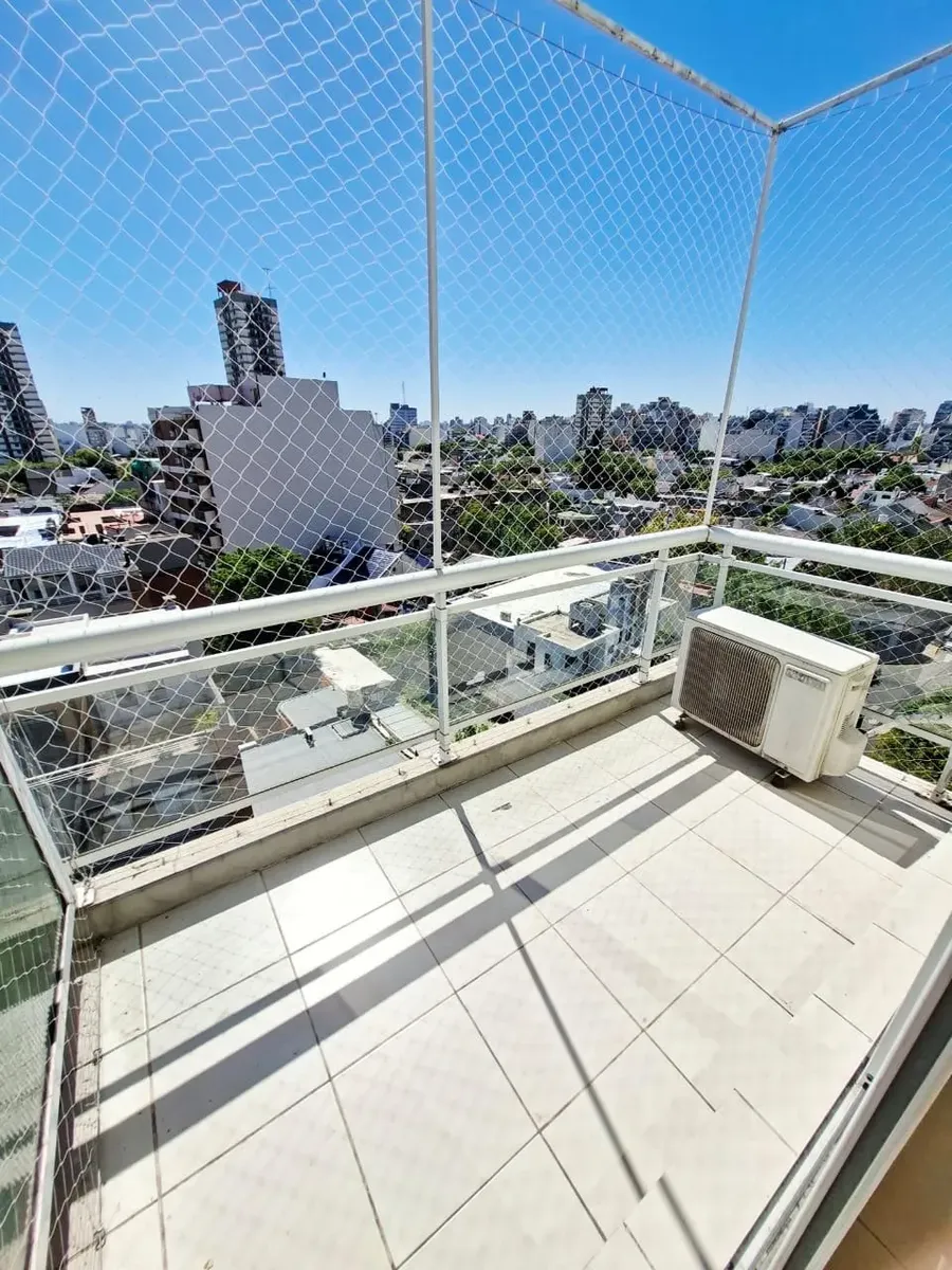 Apartamento de 2 ambientes com 45 m² totais em Flores, de frente para a rua, com 1 quarto e 1 banheiro. Cozinha equipada, sala e área de jantar, e varanda. Tem ar-condicionado e elevador; prédio com 10 anos. Condomínio de AR$140.000. Não é apto profissional e não há vaga de garagem.