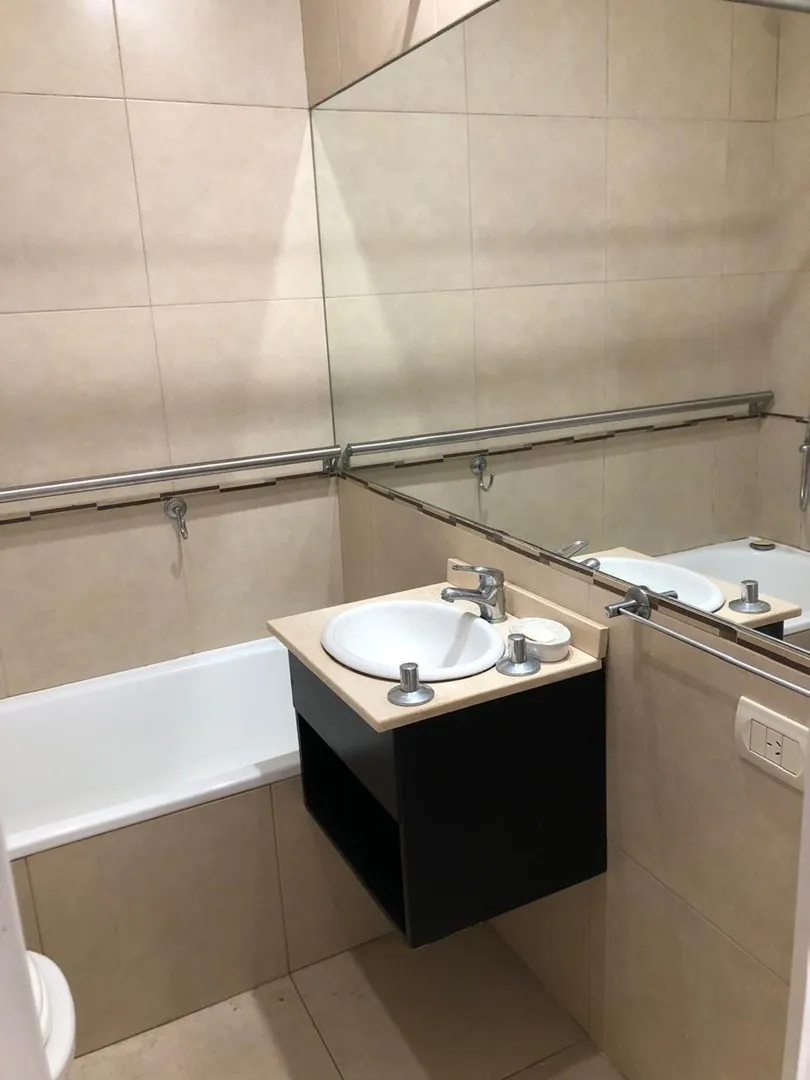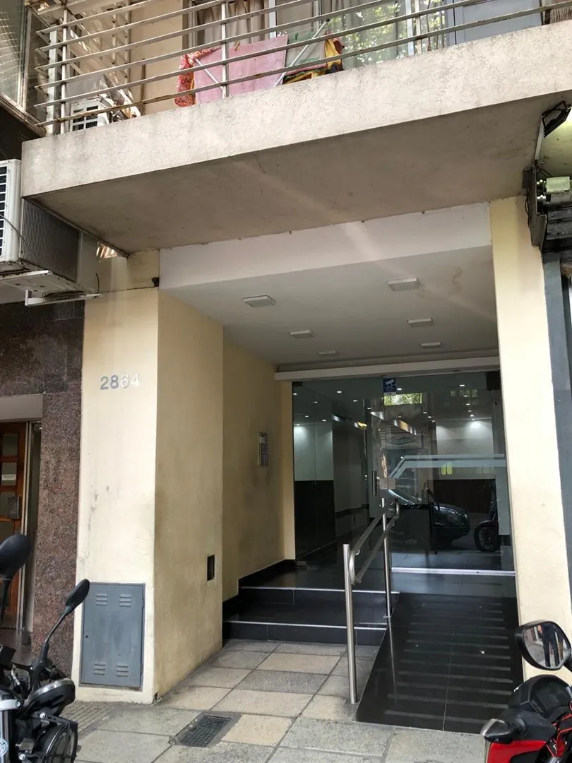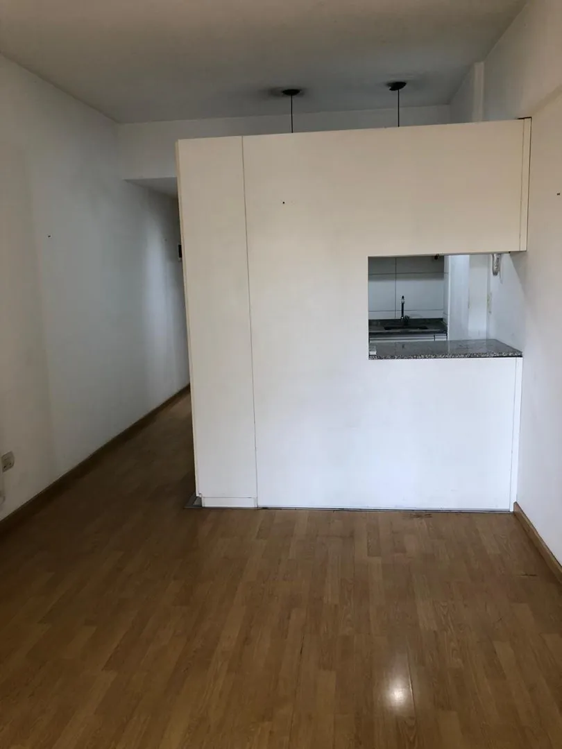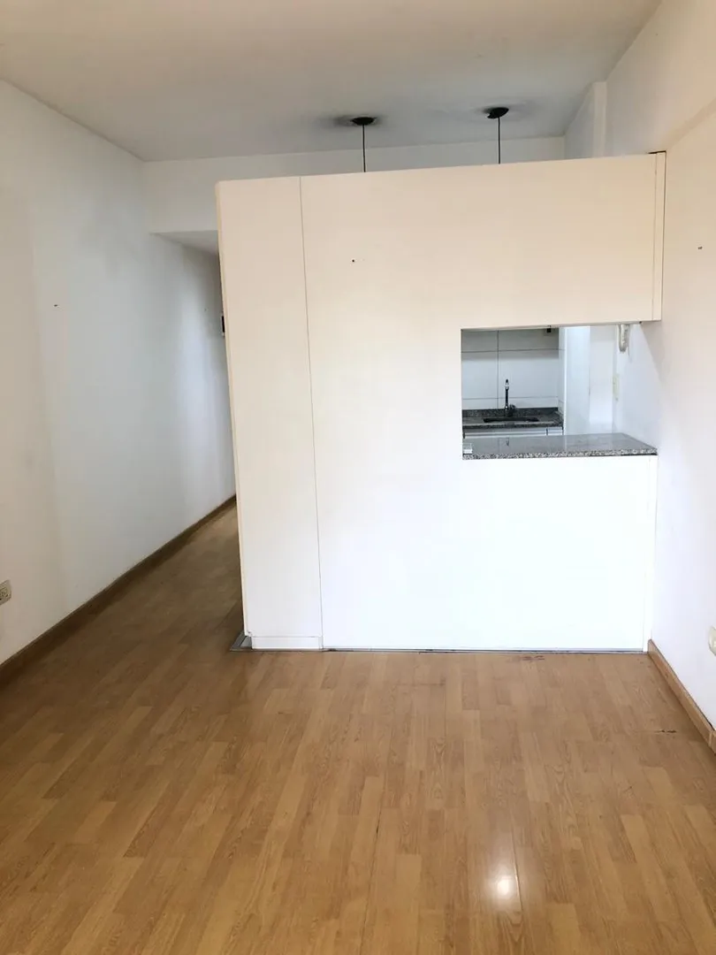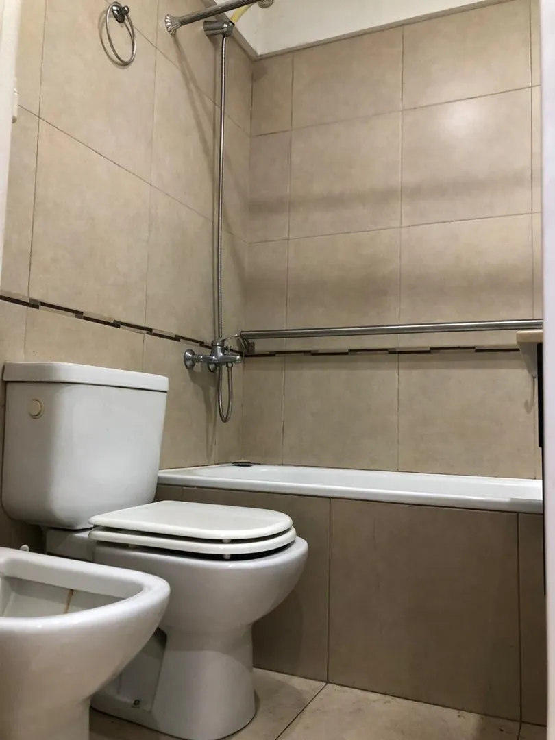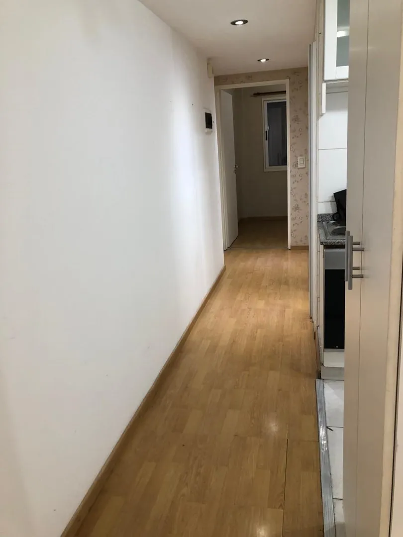 Apartamento de 2 ambientes em Flores, no 2º andar de frente para a rua, em prédio com elevador. Conta com cozinha e sala semi-separadas, com móveis planejados, saída para máquina de lavar e acesso a varanda de frente, além de ar-condicionado. O dormitório tem armário embutido e ar-condicionado; há banheiro com banheira. Fica na rua Aranguren, entre Nazca e Terrada. O contrato é de 2 anos, com atualização trimestral pelo IPC, e exige seguro fiança (Finaer) e comprovação de renda.