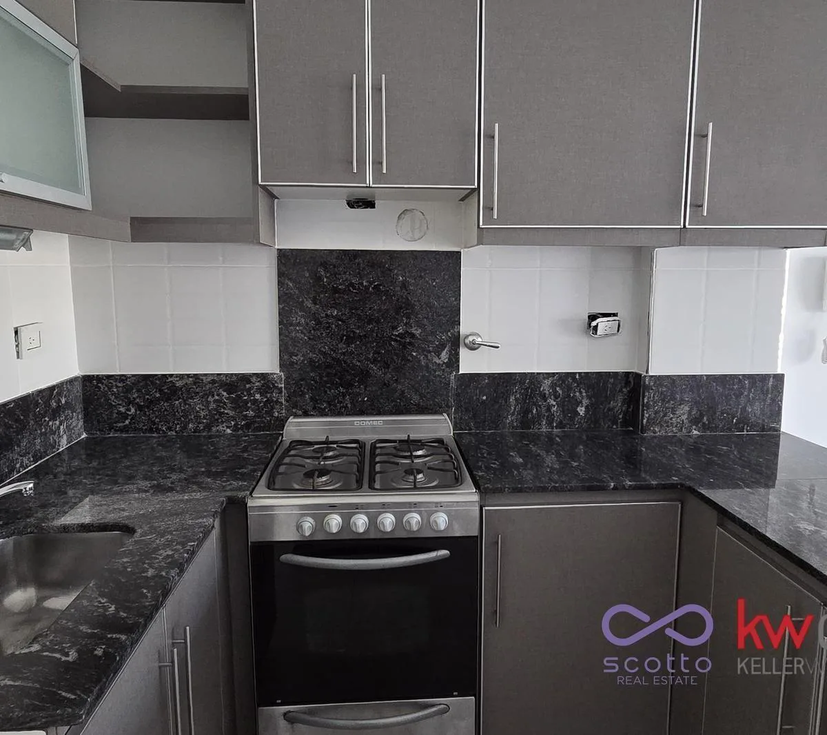 Apartamento de 2 ambientes com 1 dormitório e varanda de frente em Flores. Fica no 3º andar (piso 3), com orientação para a rua e cozinha integrada com bancada dupla. Inclui living integrado, 1 banheiro completo, quarto com closet e vaga de garagem. Aluguel de 1.100.000 e condomínio de 170.000.