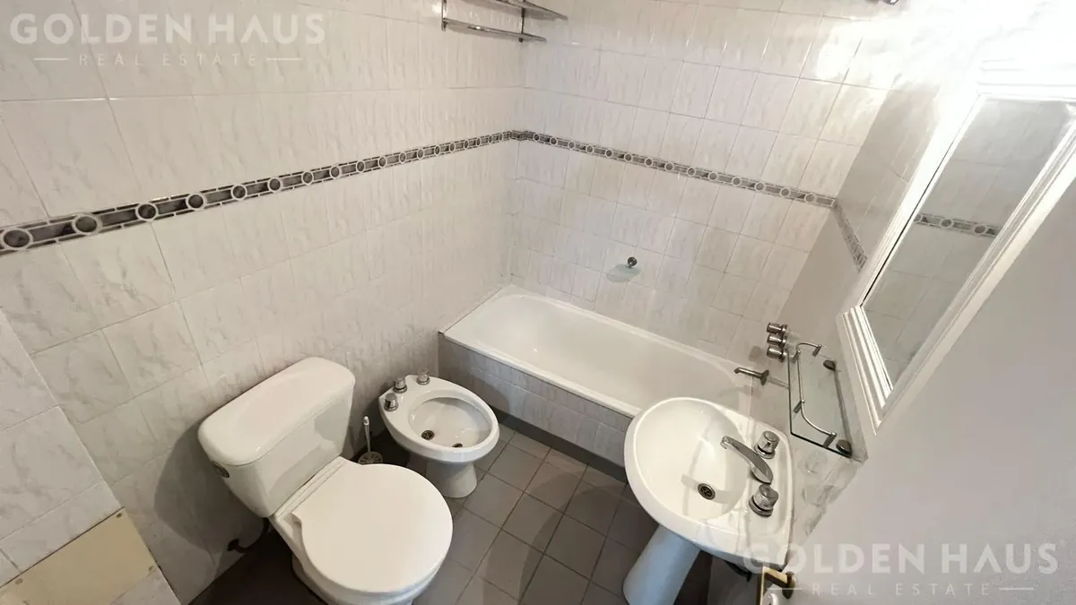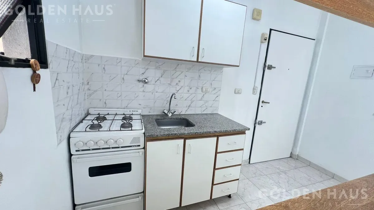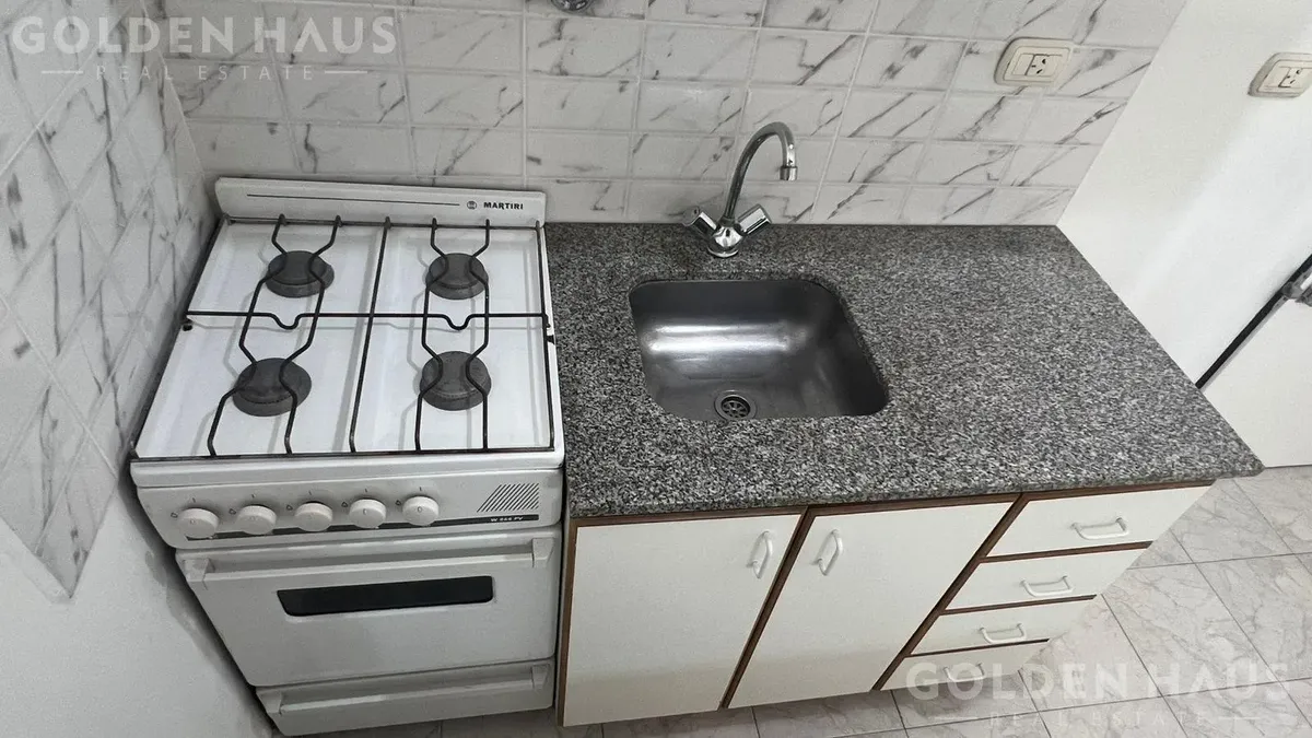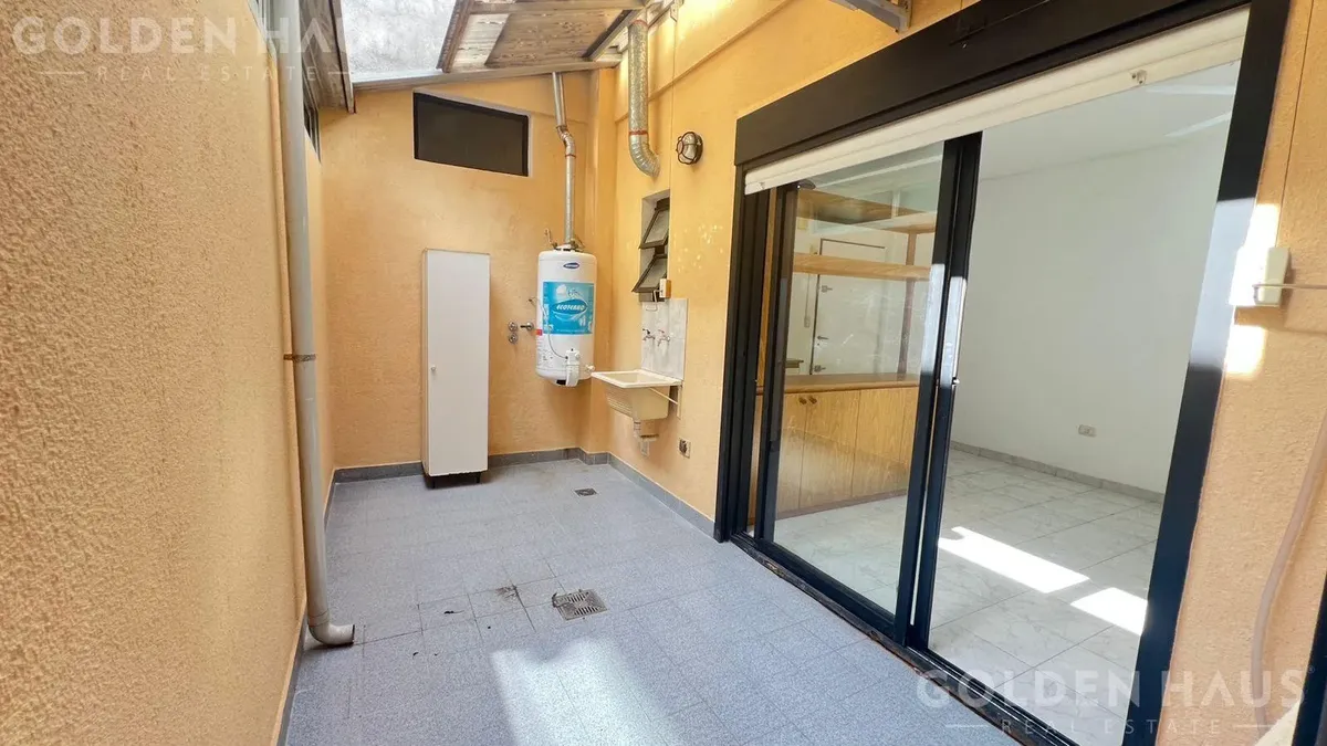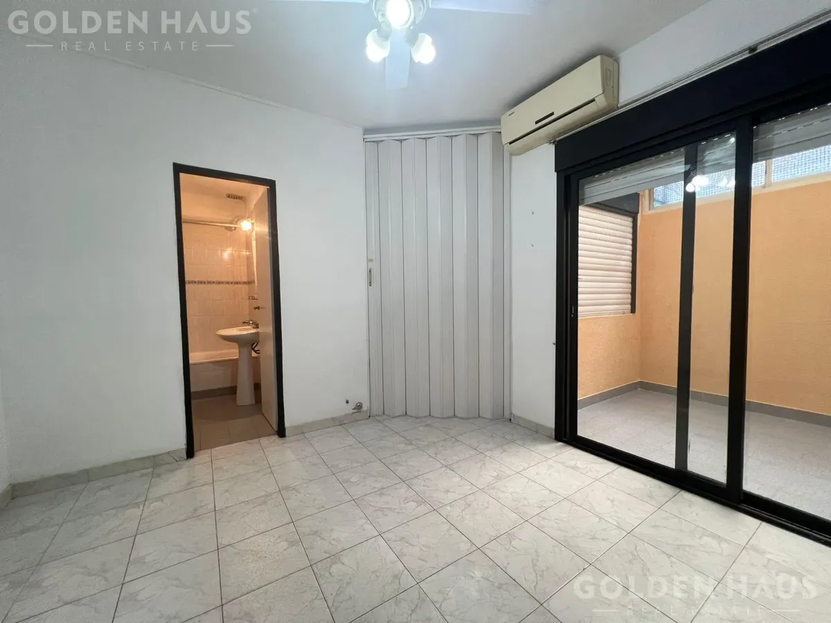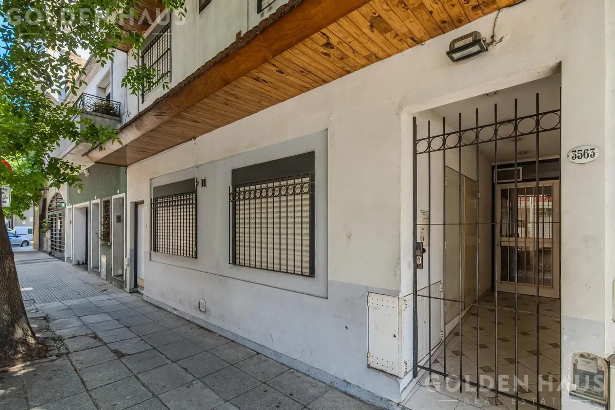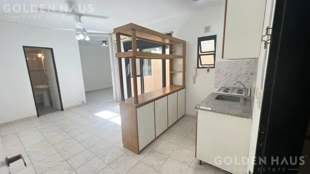 PH de dois ambientes em Floresta, no térreo (PB), dentro de um complexo com 12 unidades. Cozinha com armário superior, bancada e barra para café da manhã; sala com saída para pátio de 8 m², com cobertura retrátil, área de lavanderia e aquecedor a gás. Quarto com armário embutido e ventilação para o pátio; banheiro completo. Condomínio de ARS 39.000, incluindo AYSA; ar-condicionado instalado e ventilador de teto.