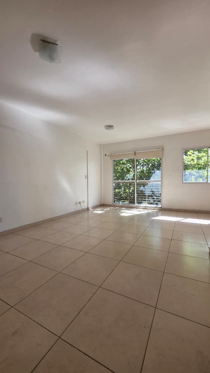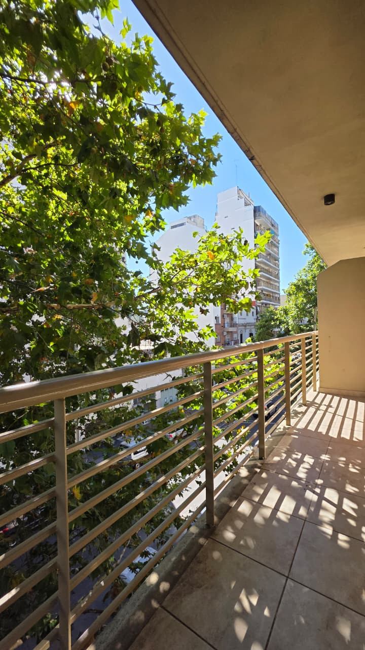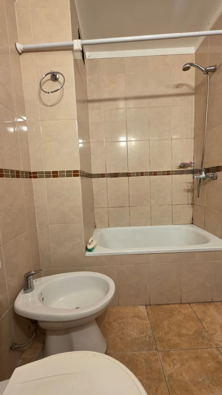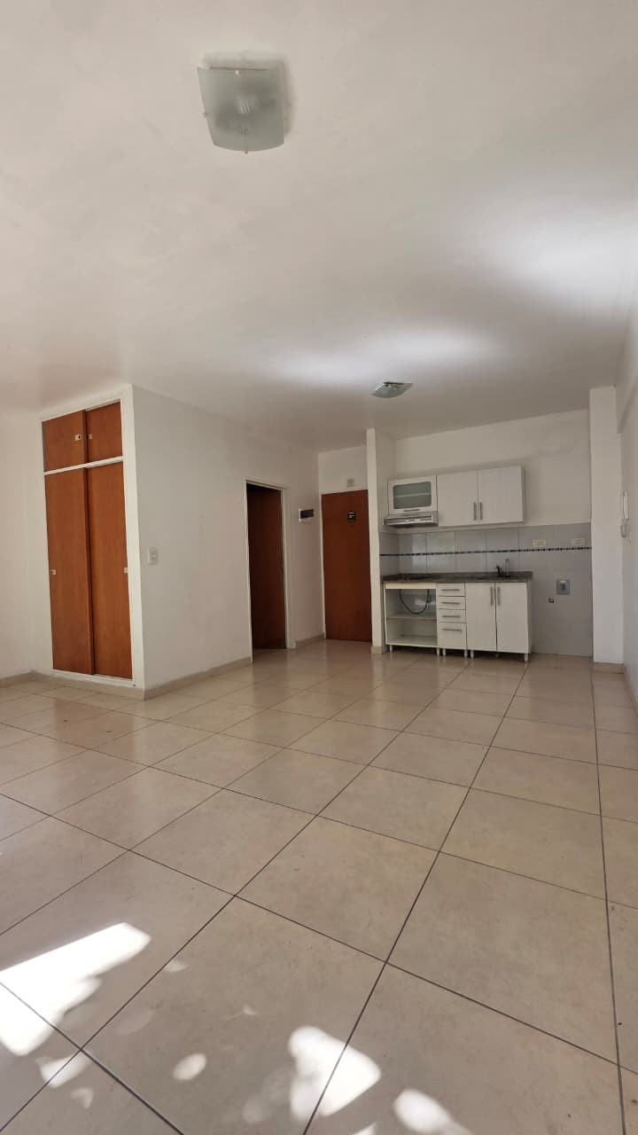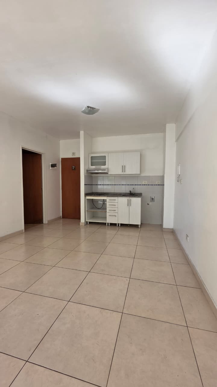 Kitnet de 1 ambiente para aluguel, com 5,30x3,30 m (ambiente) e varanda de 5,10x1 m voltada para a rua. Cozinha com móveis sob e sobre a bancada, espaço em L de 1,60x3 m com armário embutido e banheiro com banheira de 1,50x2,30 m. Edifício moderno; instalação elétrica do apartamento. Fica a cerca de meio quarteirão da Av. Rivadavia. O valor do aluguel é informado junto com as últimas despesas de condomínio; não aceita animais. Exige comprovante de renda e garantia: fiador proprietário em CABA ou