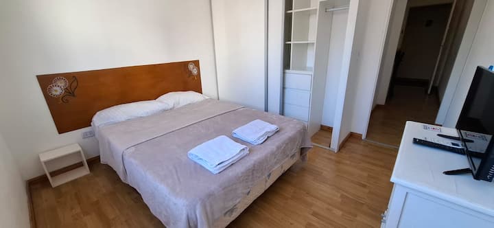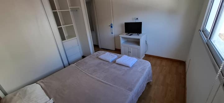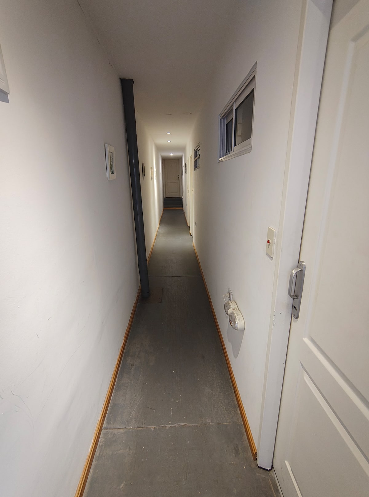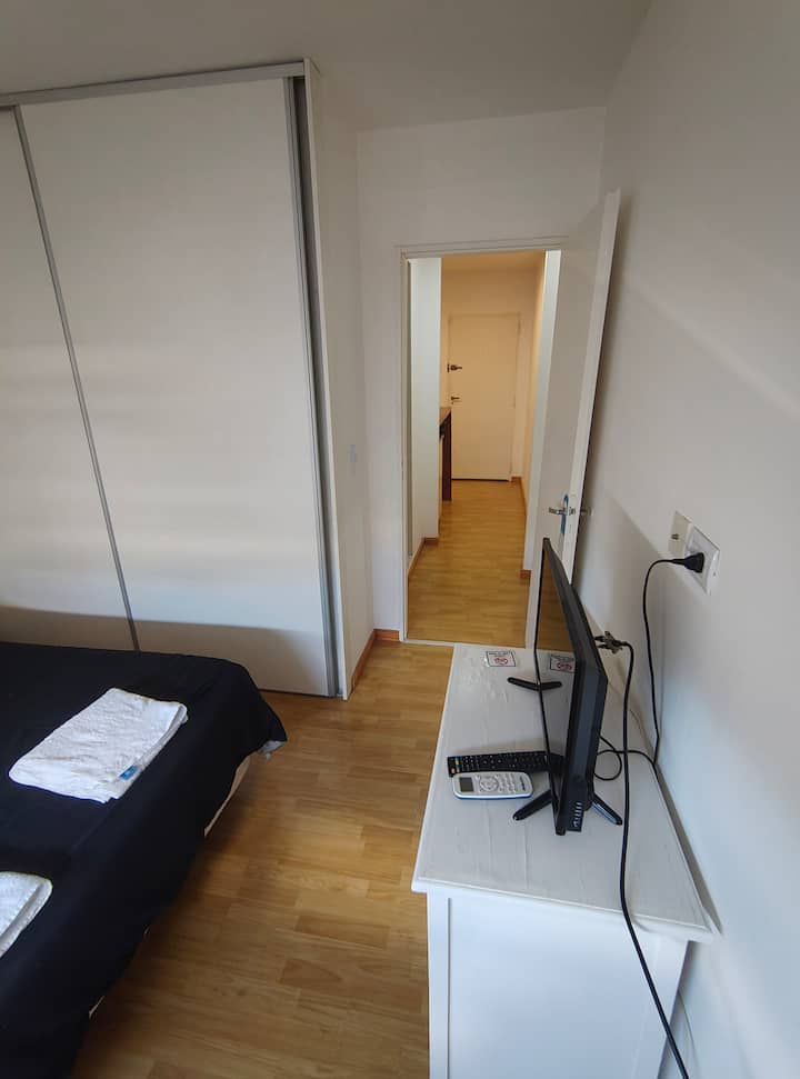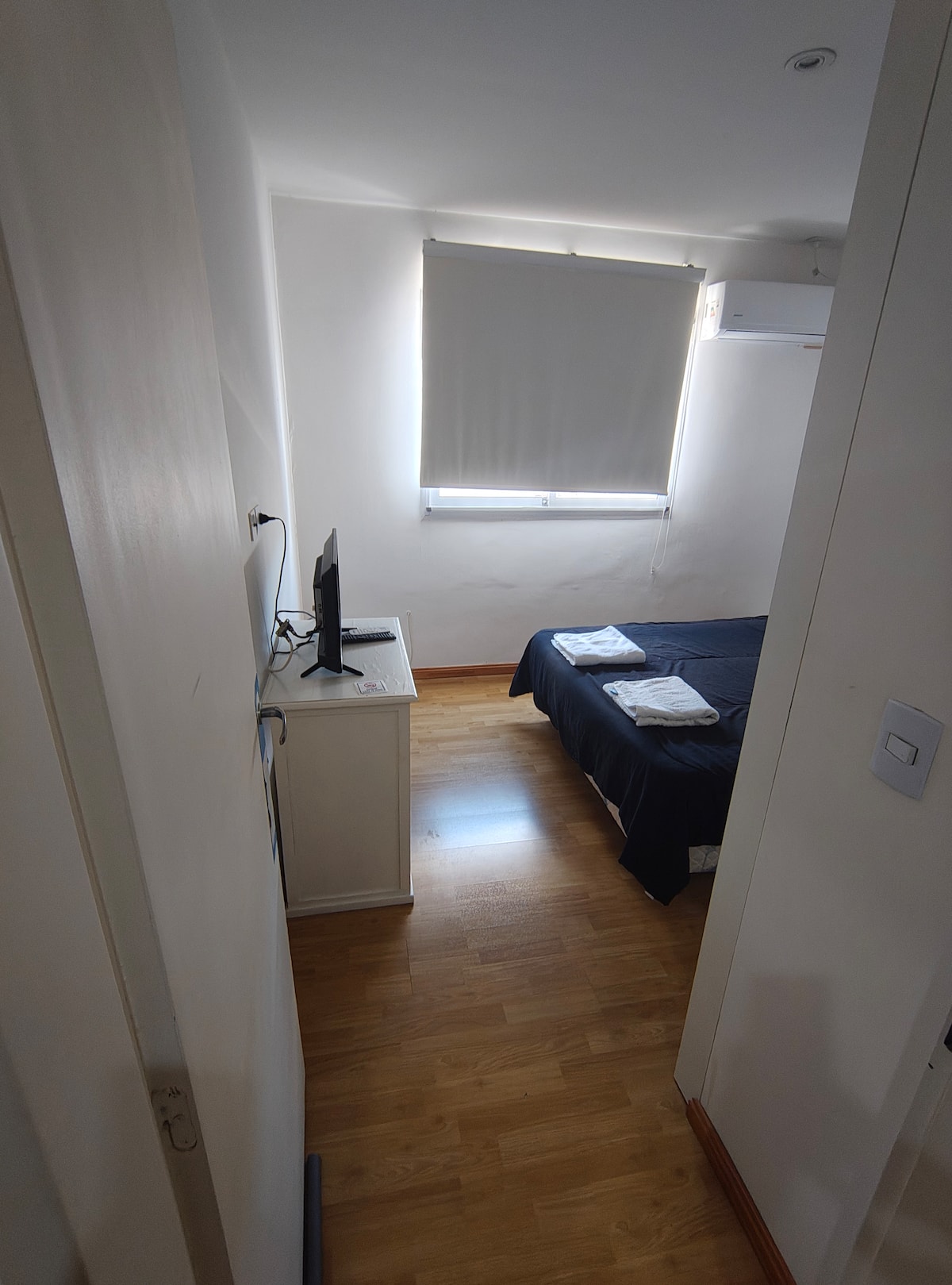 Kitnet dividida com 1 quarto e sala, em andar térreo acessado por escadas. Fica a poucos metros da estação.