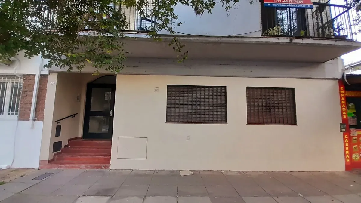 Apartamento de 2 ambientes no térreo, de frente para a rua, com pátio privativo, em Vicente López. O imóvel tem sala de estar e jantar, cozinha equipada com área de refeições diárias, hall de distribuição com saída para o pátio com área de lavanderia, banheiro completo com banheira e 1 quarto com armário embutido e piso de cerâmica. Fica a 3 quadras da Av. Maipú e da Estación Aristóbulo del Valle do Ferrocarril Belgrano. O condomínio é indicado como de baixo valor.