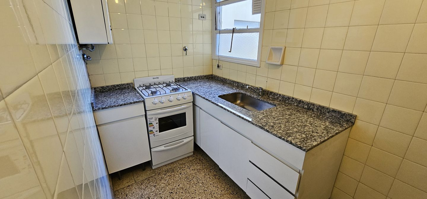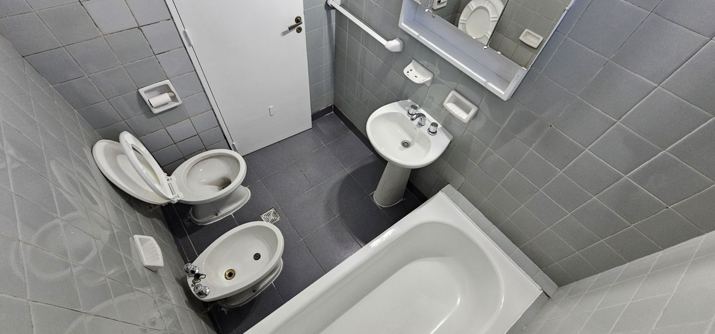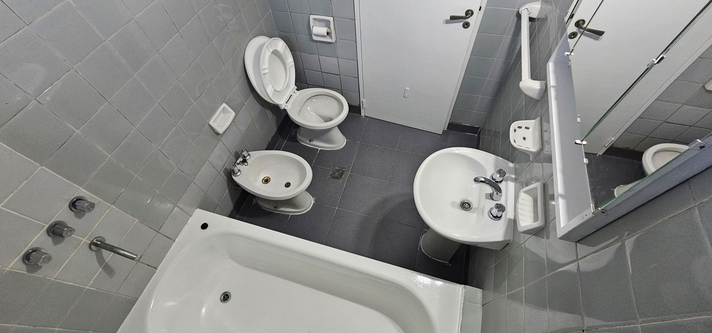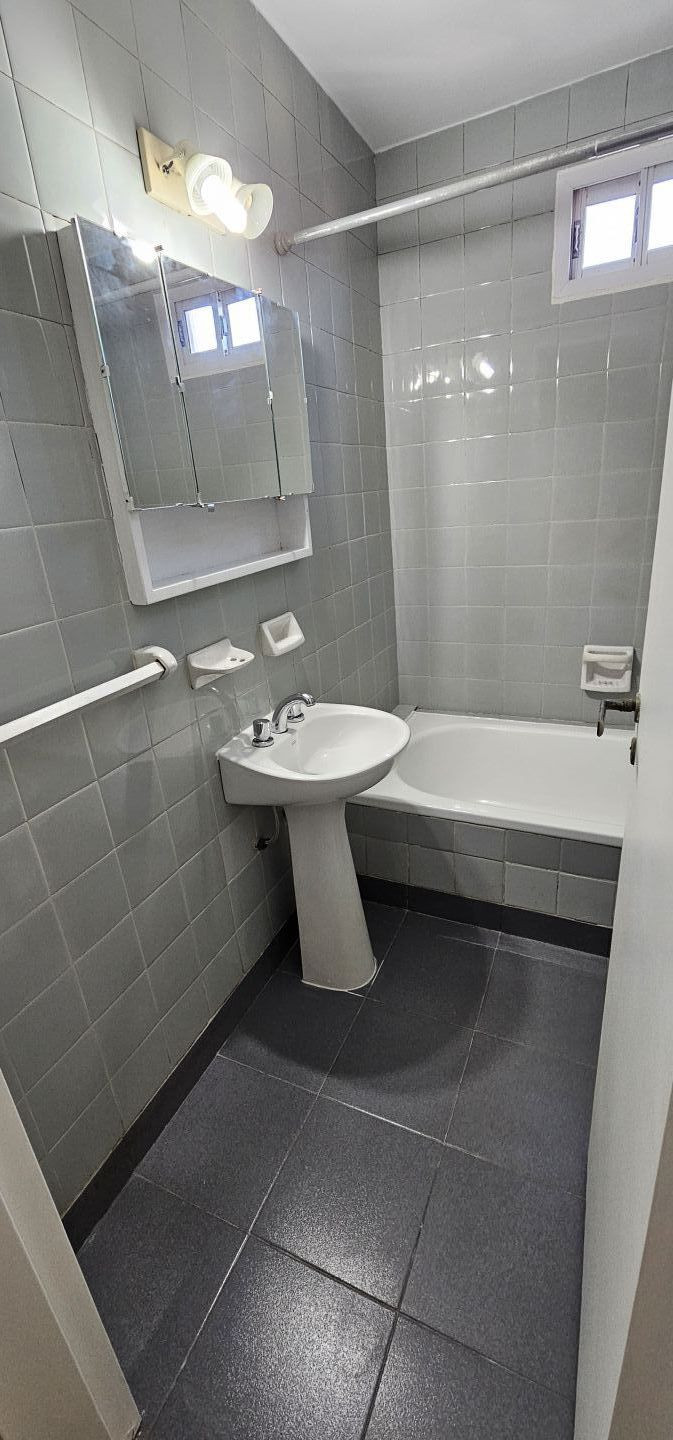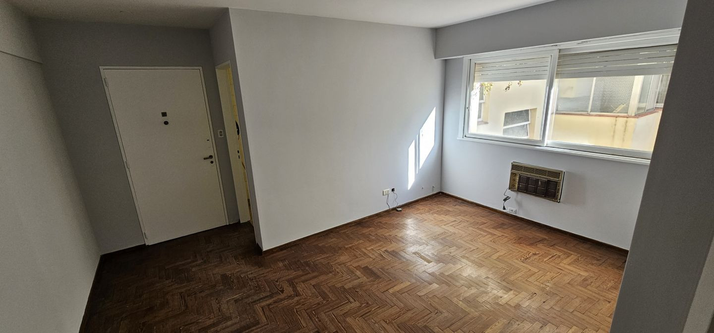Apartamento de 2 ambientes em Florida, em Vicente López, no 6º andar, com disposição interna. Sala de estar e jantar medindo 4,70 x 3, piso de madeira encerado, e cozinha com espaço para mesa para 2/3 pessoas (4,25 x 1,50). Banheiro completo com banheira e armário no ante-banho, quarto de 3,10 x 2,95 com armário e piso de madeira; janelas com persianas. O condomínio é de 130.000 ARS, com AYSA incluído.