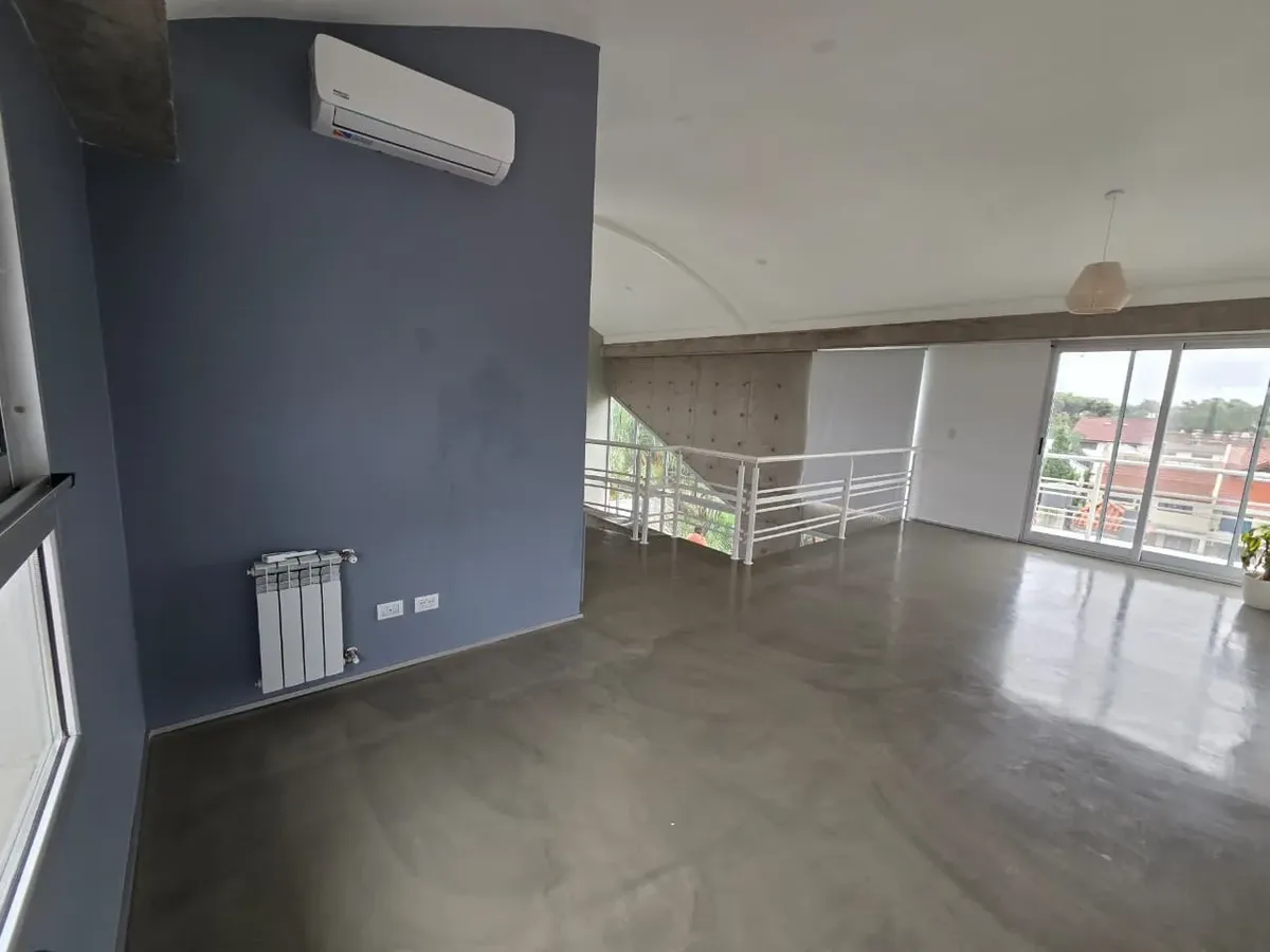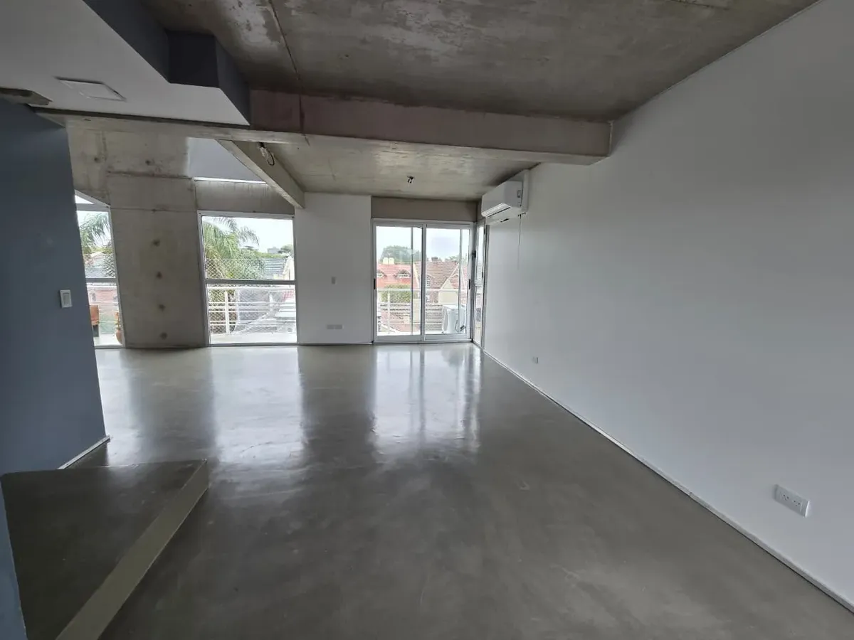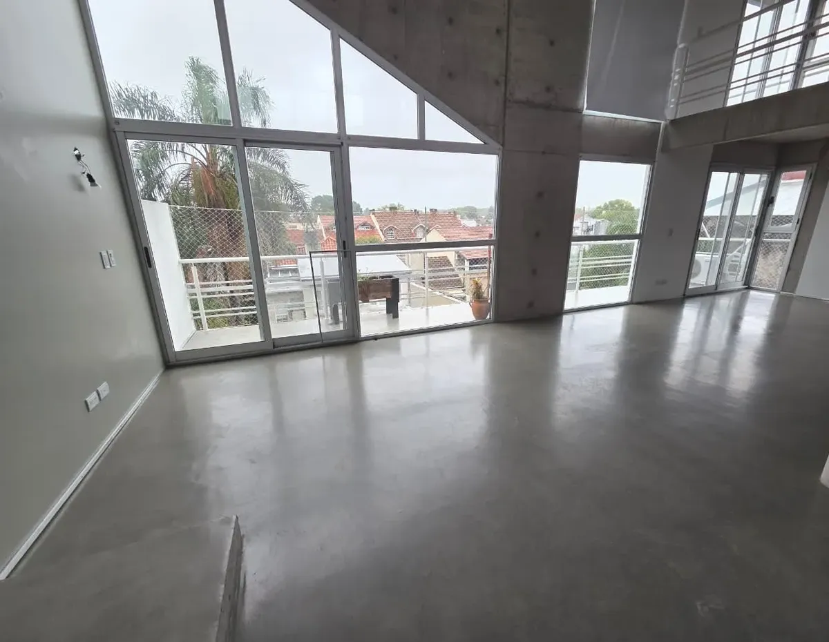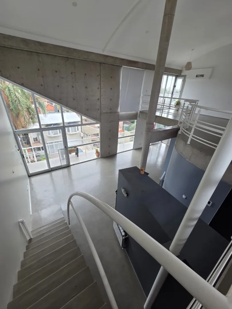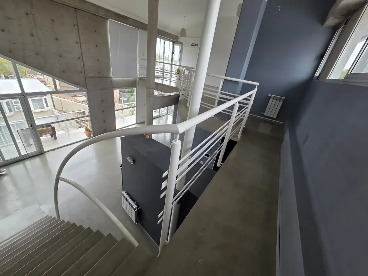 Loft de 120 m² em 2 níveis, no 3º andar (com elevador ou escada), em Vicente López. Possui 2 banheiros completos, lavabo de recepção, cozinha, 2 varandas com vista aberta (uma na planta baixa e outra no andar superior) e amplas janelas. Há ar-condicionado, com 1 unidade no andar de baixo e 2 no andar de cima, além de aquecimento por radiadores. O imóvel conta com 2 vagas de garagem, sendo uma coberta, e o condomínio inclui ARBA e imposto municipal.