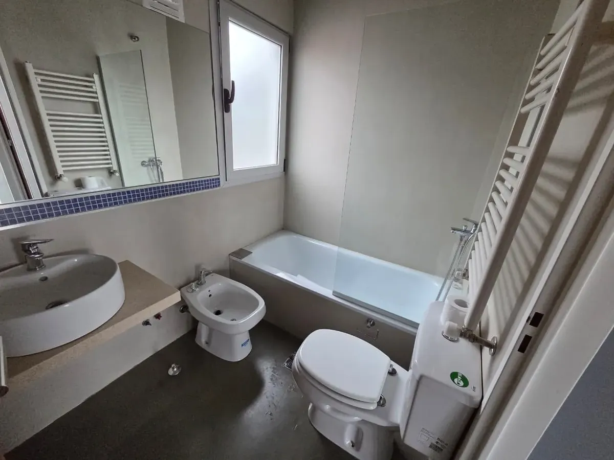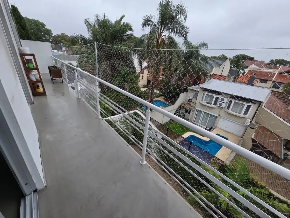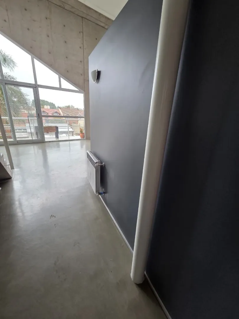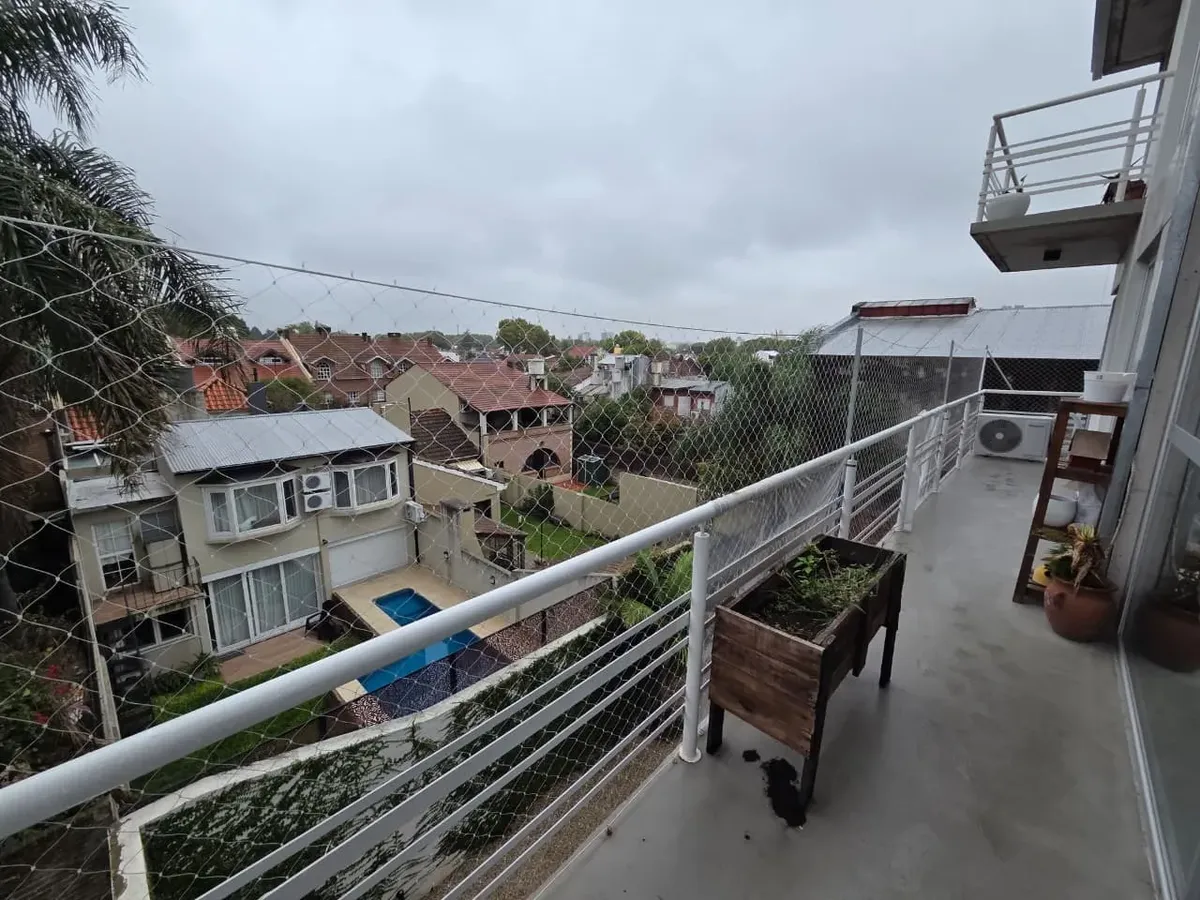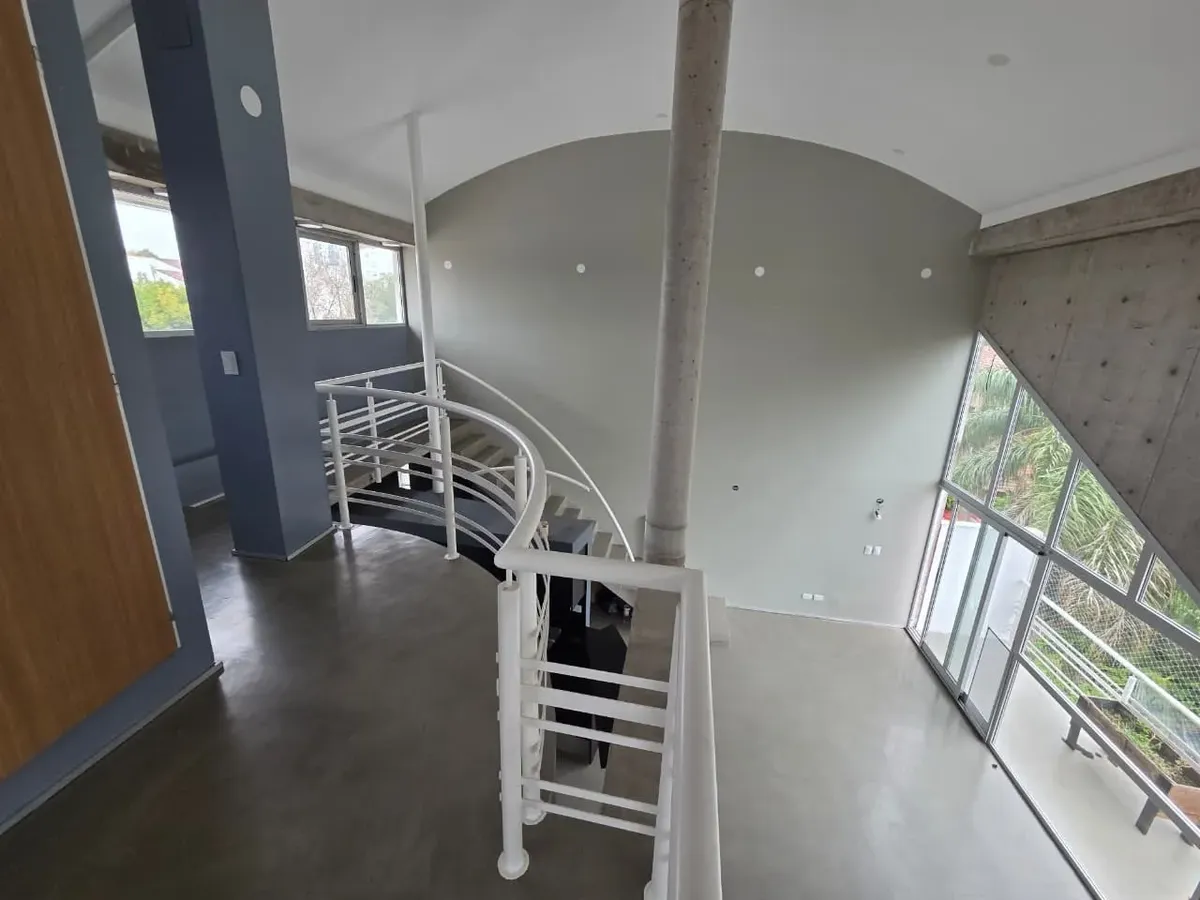 Loft de 120 m² em 2 níveis, no 3º andar (com elevador ou escada), em Vicente López. Possui 2 banheiros completos, lavabo de recepção, cozinha, 2 varandas com vista aberta (uma na planta baixa e outra no andar superior) e amplas janelas. Há ar-condicionado, com 1 unidade no andar de baixo e 2 no andar de cima, além de aquecimento por radiadores. O imóvel conta com 2 vagas de garagem, sendo uma coberta, e o condomínio inclui ARBA e imposto municipal.