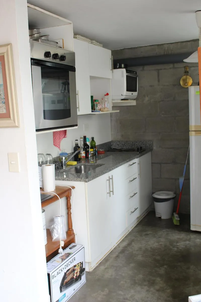 Apartamento duplex tipo PH no térreo, sem mobília, com 1 dormitório. Sala de estar e jantar com saída para jardim próprio de 18 m². Banheiro completo com banheira no piso térreo e cozinha integrada com armários de meloamina, forno e fogão elétricos e espaço para máquina de lavar roupa. No piso superior há hall com acesso por escada caracol, dormitório com vista para o living e espaço para escritório ou um segundo dormitório pequeno. A unidade é toda elétrica, com água quente por termotanque elét