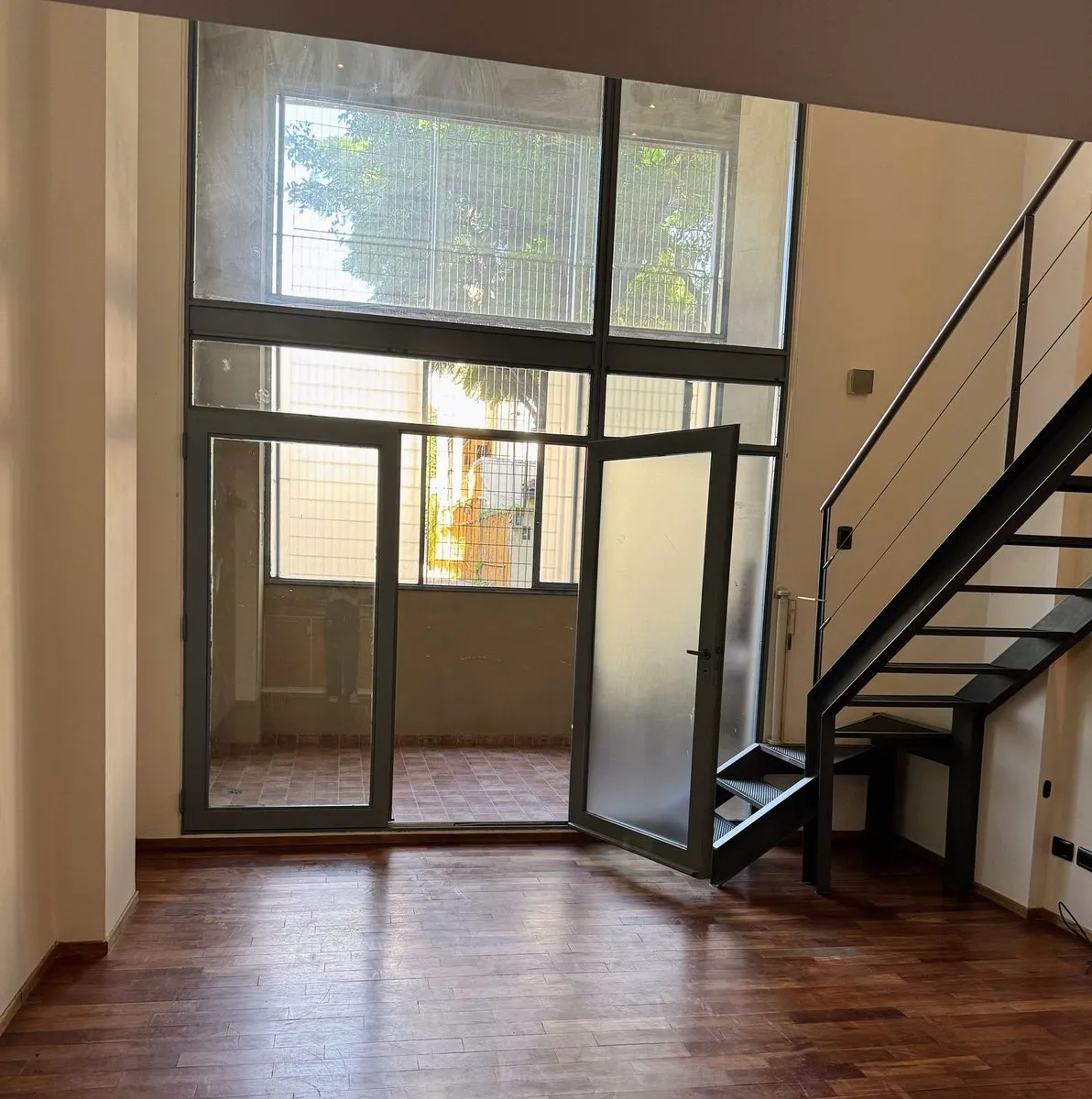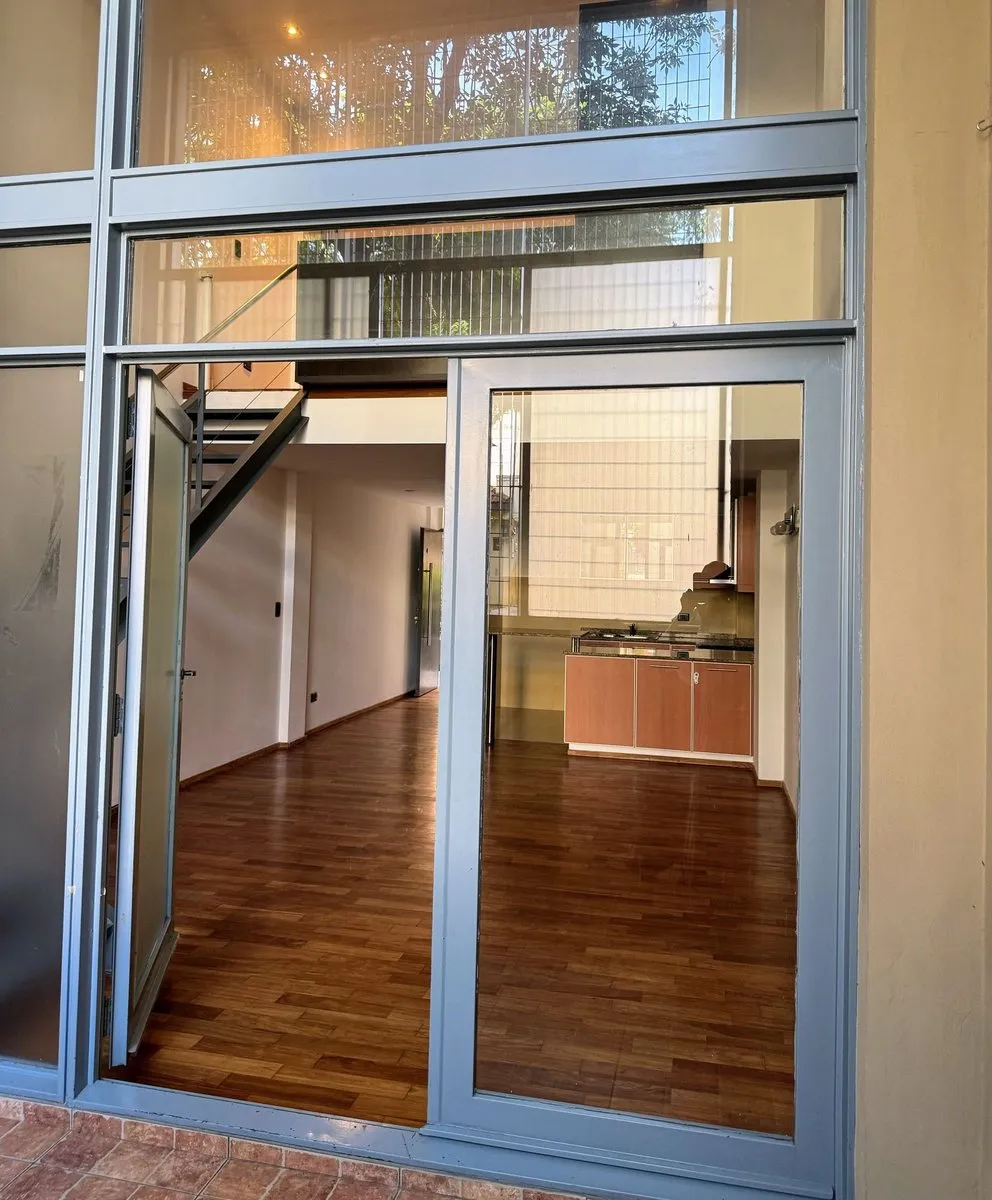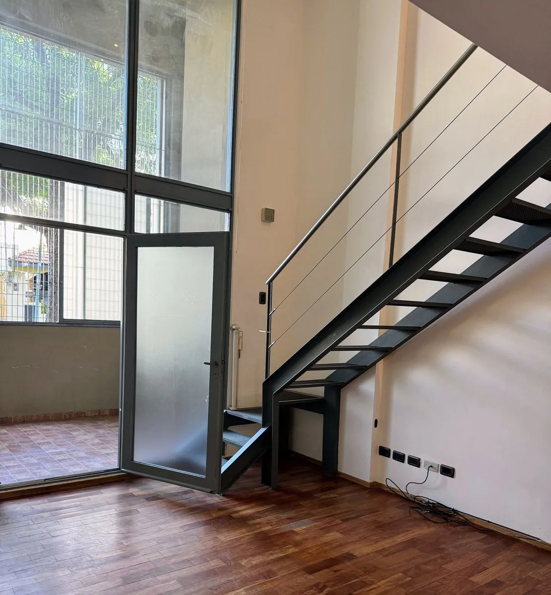 Loft de 2 ambientes em duas plantas no complexo Talar de Florida, com pátio privativo e 1 dormitório com suíte. No piso térreo, sala de estar e jantar com cozinha integrada, área de serviço independente e lavabo, com saída para o pátio com área de churrasco. No piso superior, dormitório com closet e banheiro completo, com ar-condicionado frio/calor e luminárias instaladas. Inclui vaga de garagem (fixa) e depósito em subsolo, além de segurança 24 horas e amenities como jardins de uso comum, pisci