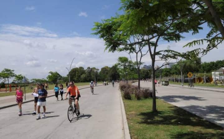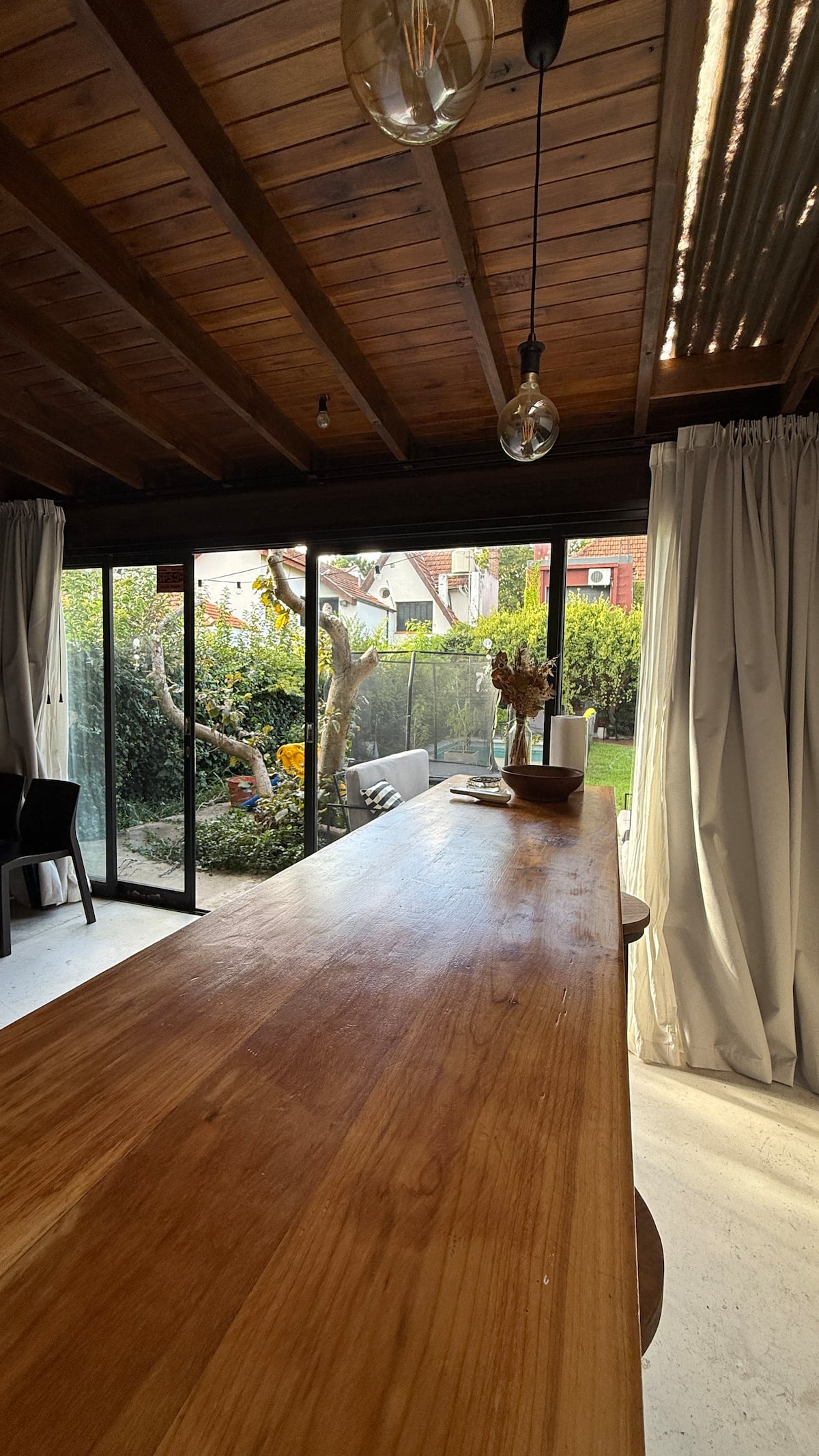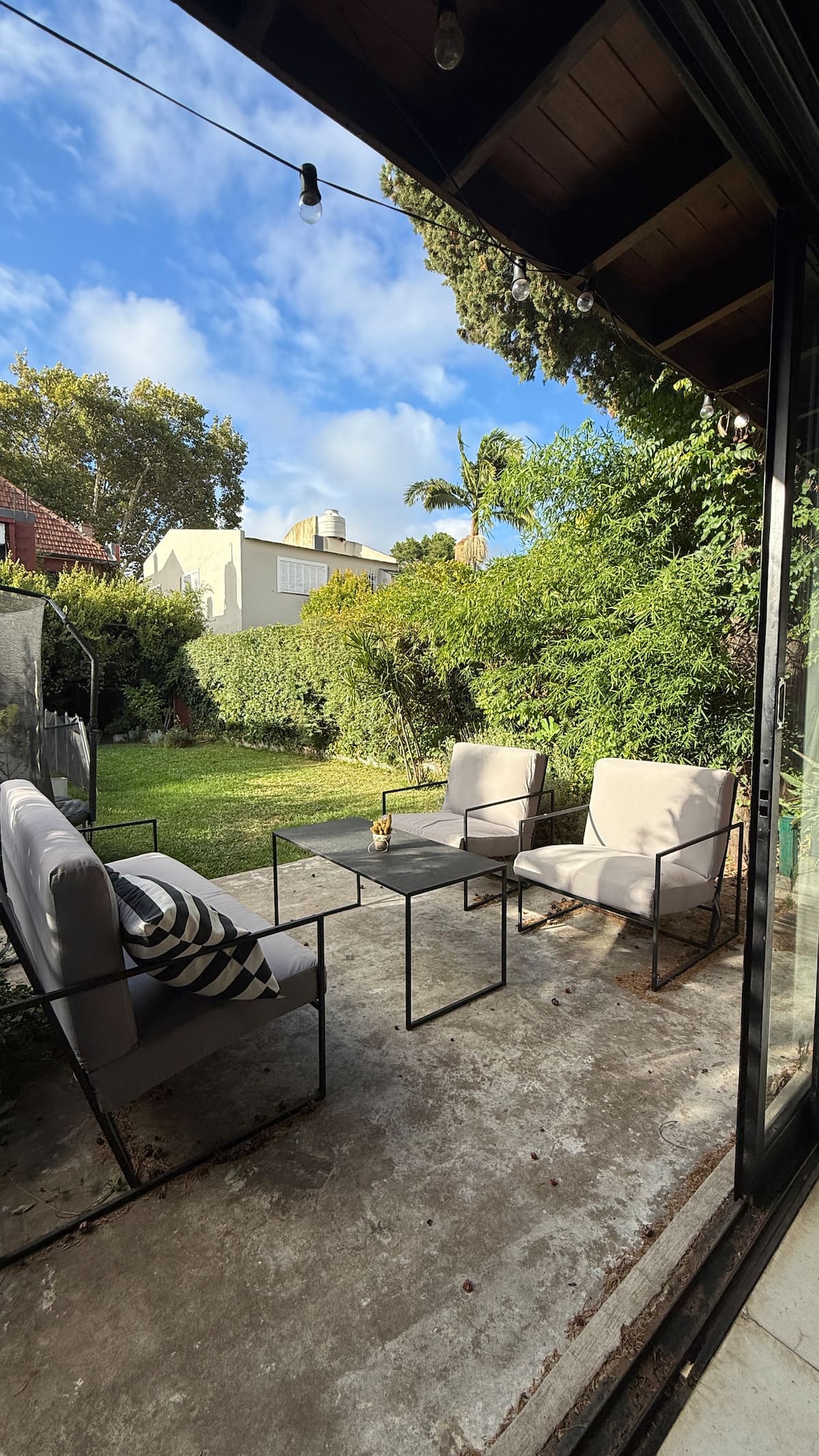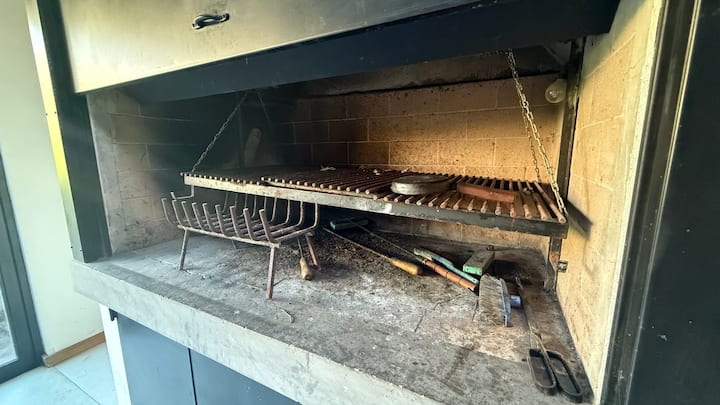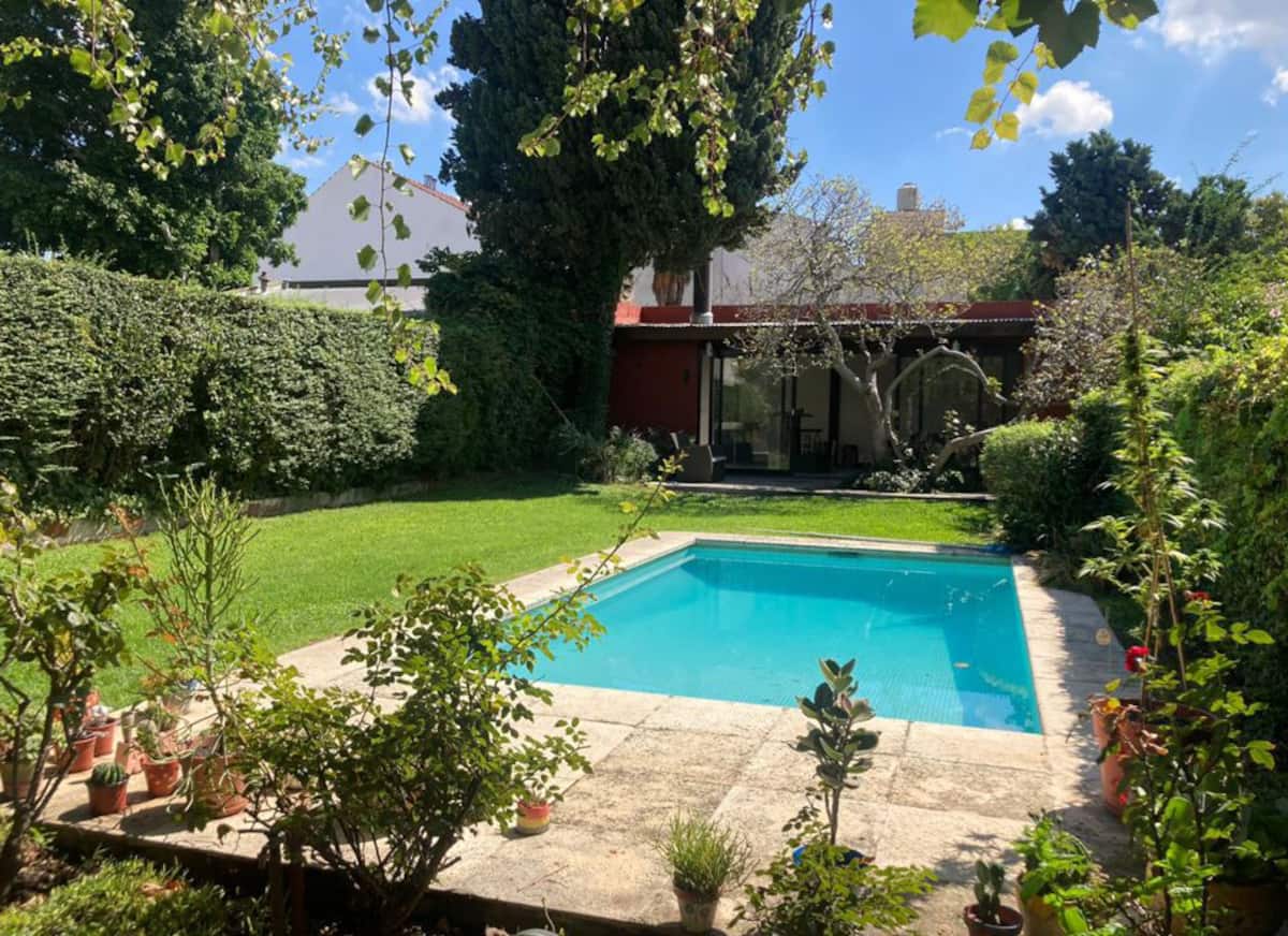 Loft em área de jardim com árvores, com banheiro e cozinha privativos, e acesso a piscina compartilhada. O espaço inclui Wi-Fi, geladeira, guarda-roupa, área de lounge e TV, além de ar-condicionado e aquecimento. Há bicicletas e área com churrasqueira; a localização fica em Florida, Vicente López, a poucos minutos da região do Metrobus e do trem, com acesso ao rio a poucos quarteirões.