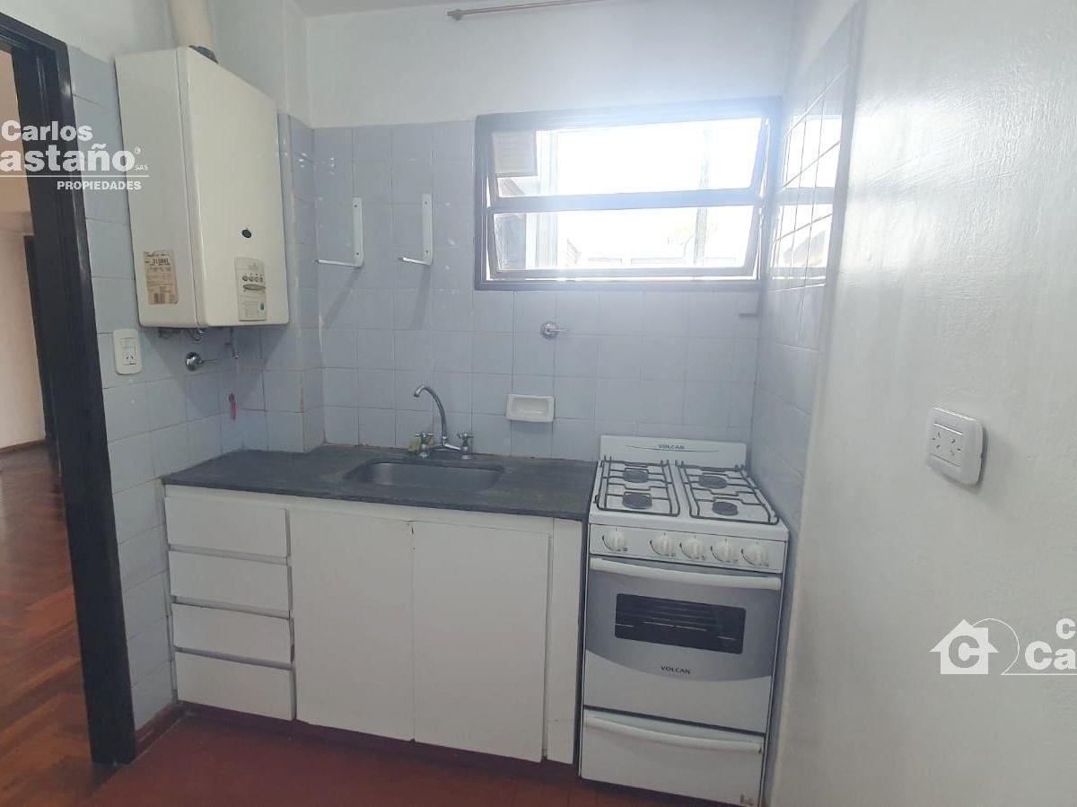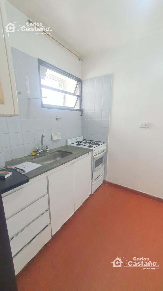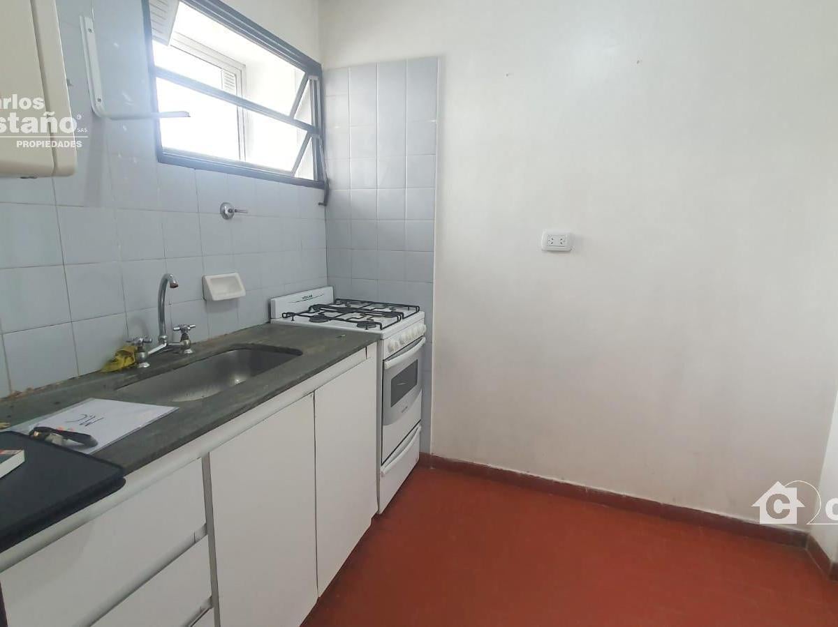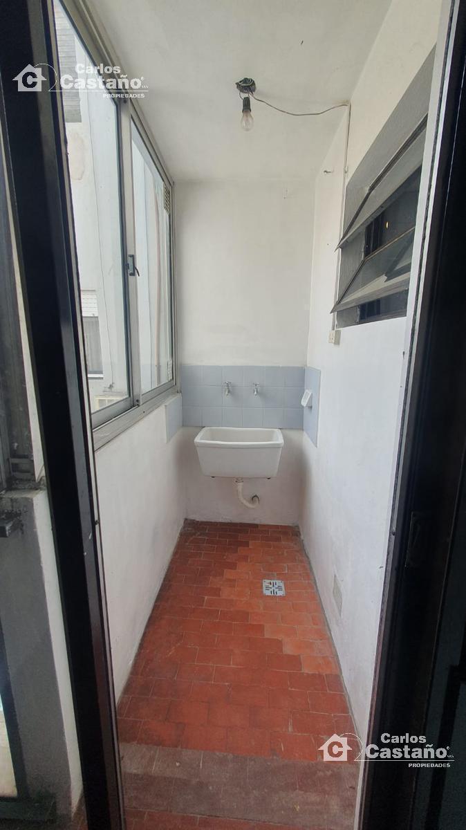 Apartamento de 2 ambientes em Florida, com 1 quarto e cozinha de 2x2 m. O living e a área de jantar medem 4x4 m com piso de parquet. O quarto mede 3x3,5 m com armário embutido, e há banheiro completo, área de lavanderia de 2x1 m e terraço comum. O prédio tem 3 andares e há 2 unidades por andar. Não aceita animais e exige fiança de aluguel.