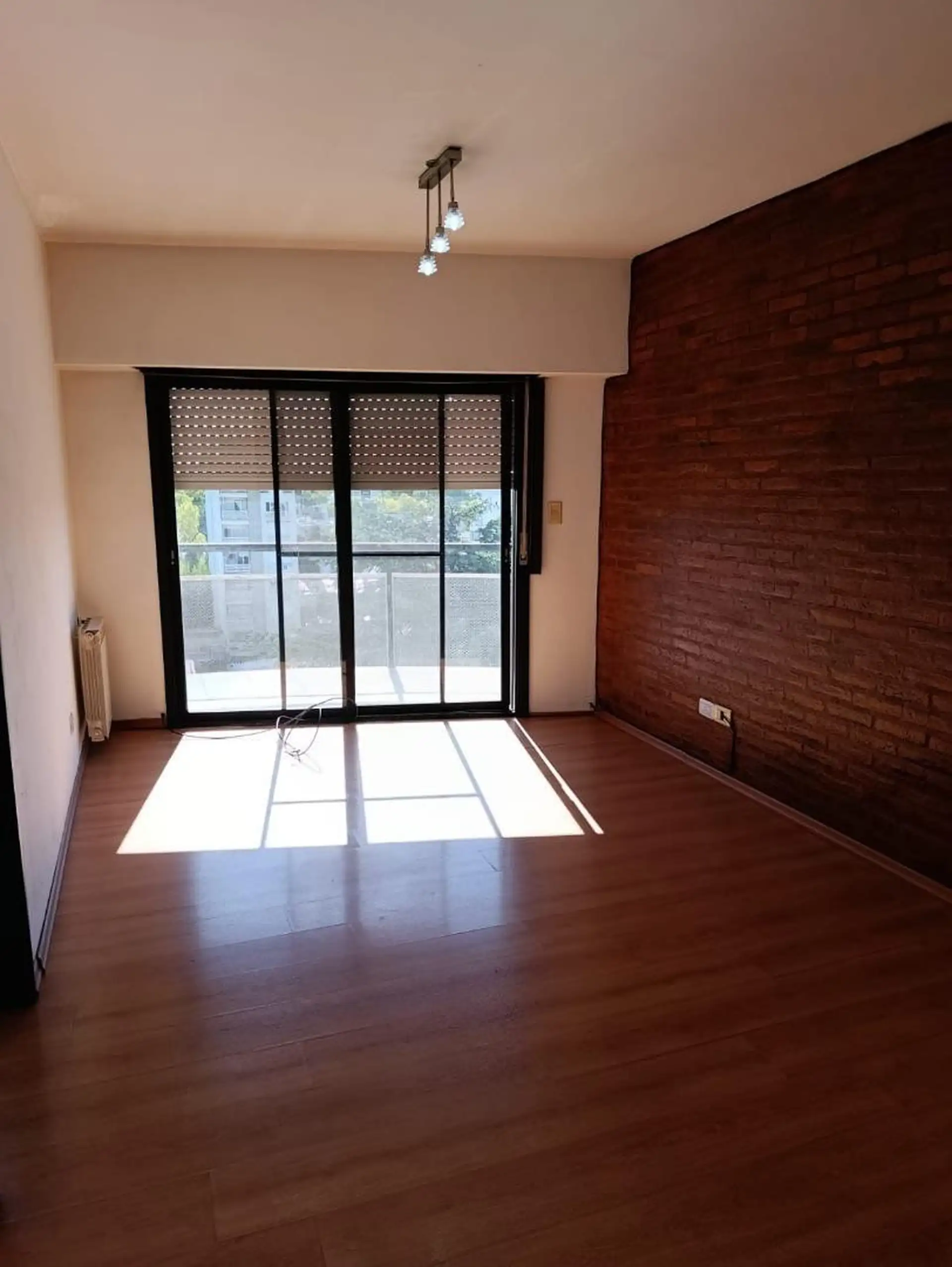 Apartamento de dois ambientes para alugar em San Martín centro, em 7º andar, com cozinha separada, living-comedor, 1 quarto com armário e ar-condicionado, banheiro completo com banheira e varanda. Há vaga de garagem. O imóvel fica na Intendente Campos 1700. Contrato de 2 anos com ajustes trimestrais segundo IPC; não são aceitos animais.