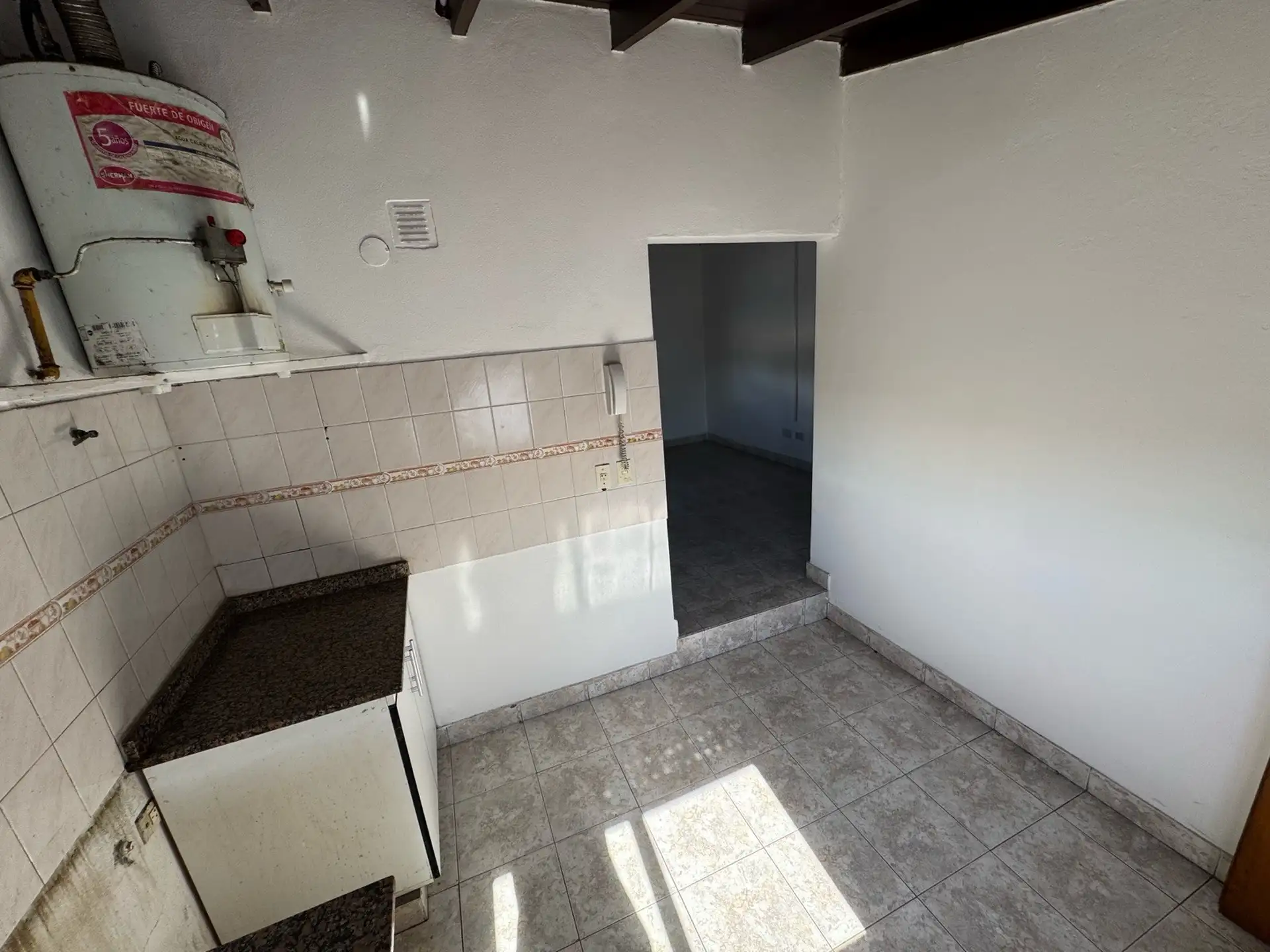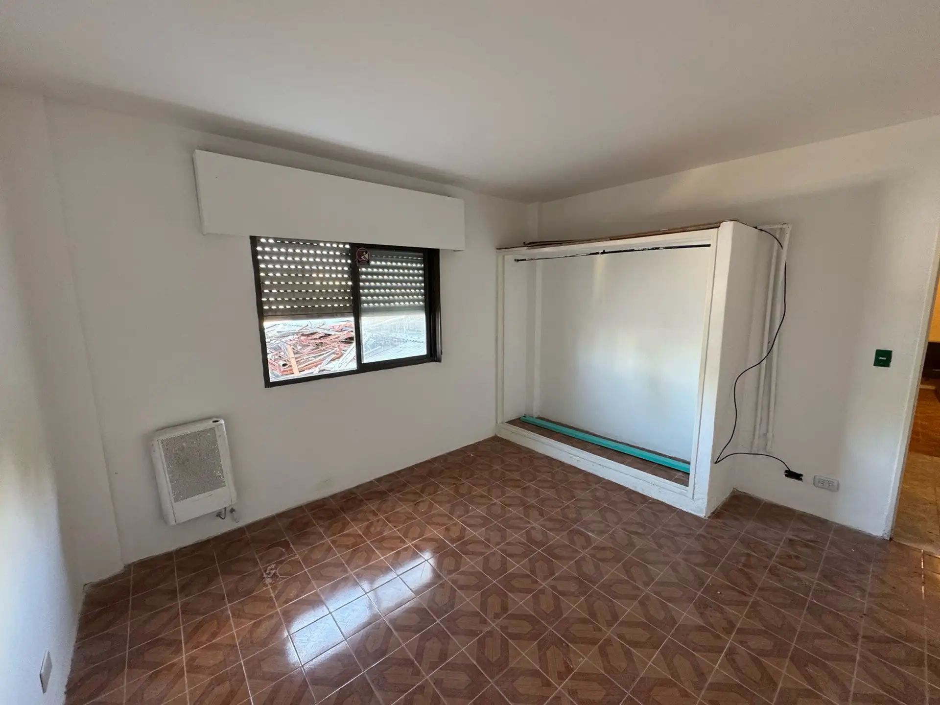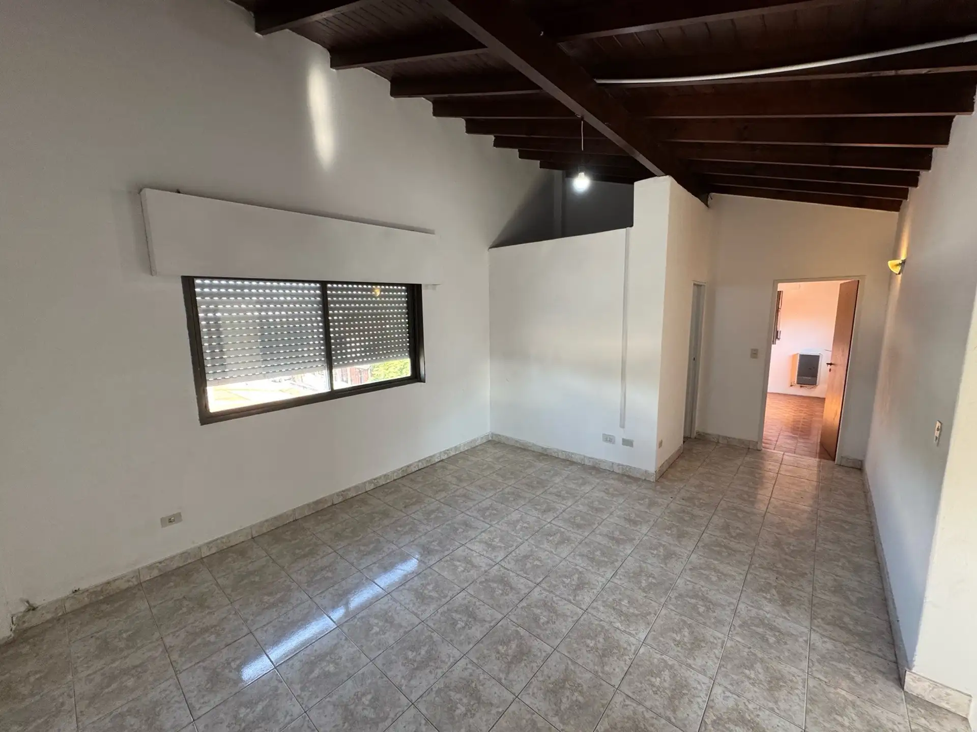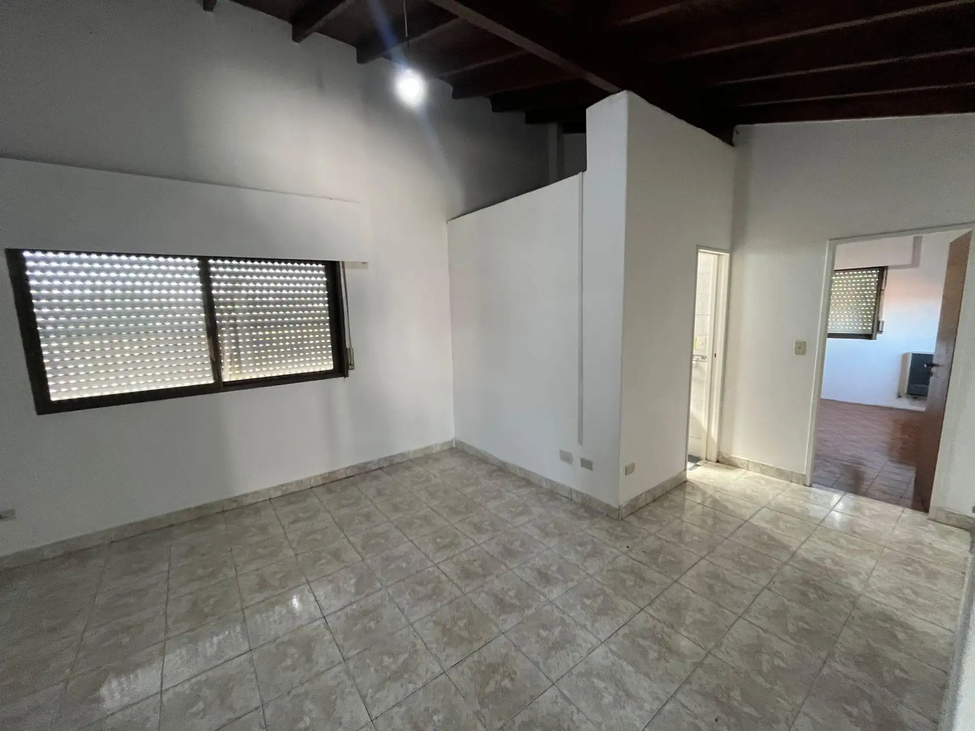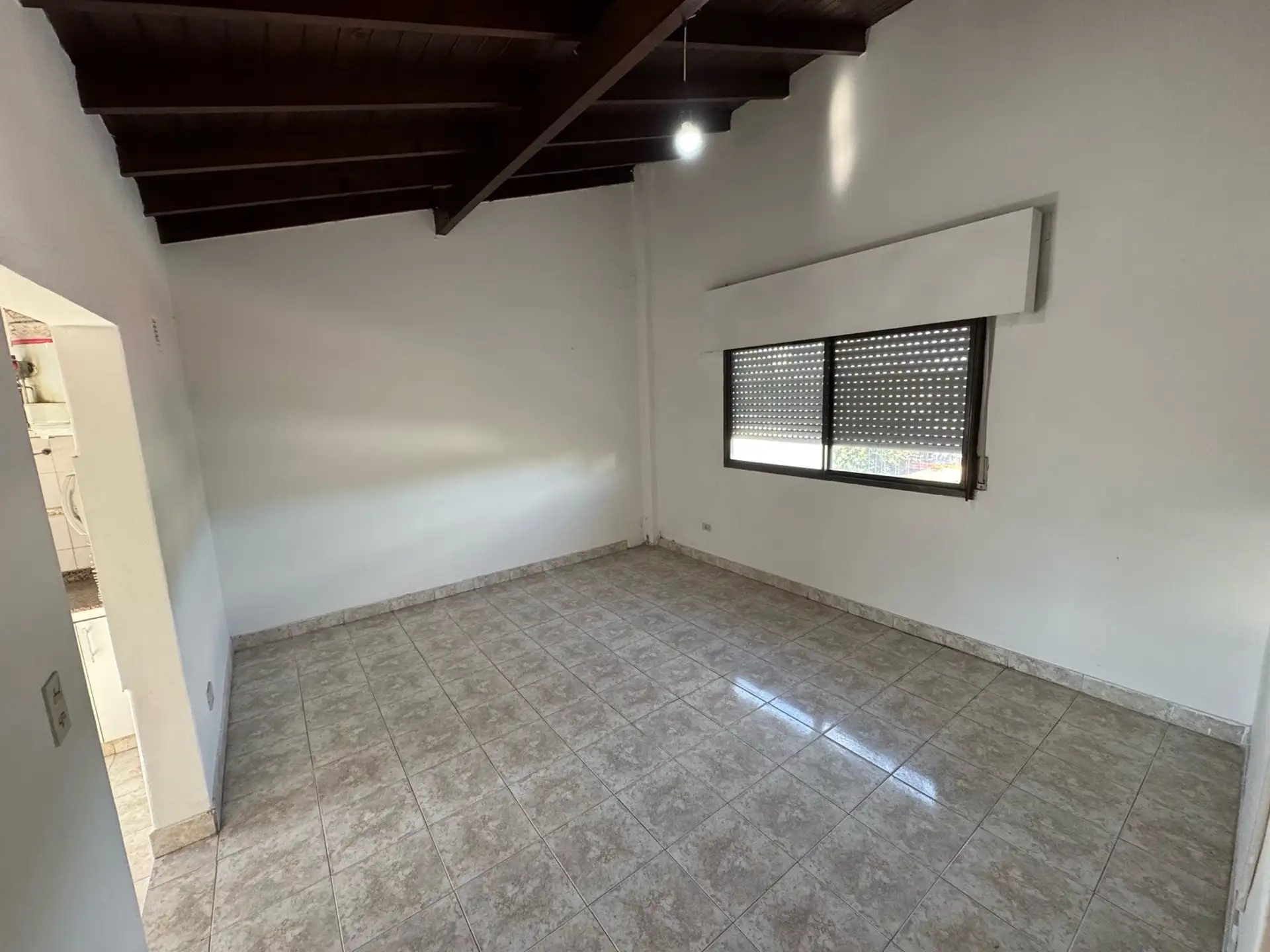Apartamento de 2 ambientes com 1 quarto no bairro José León Suárez, no 2º andar e acessível por escadas. Sala de estar e jantar integrada à cozinha com móveis baixos; banheiro completo com box e chuveiro. Quarto com armário embutido. Orientado para o sul, voltado para os fundos (contrafrente). Idade de 20 anos, com água corrente, gás natural e eletricidade; apto para animais de estimação. Fica a poucos metros da Av. Márquez, e a cerca de 4 quadras da estação de trem do ramal Suárez-Retiro.