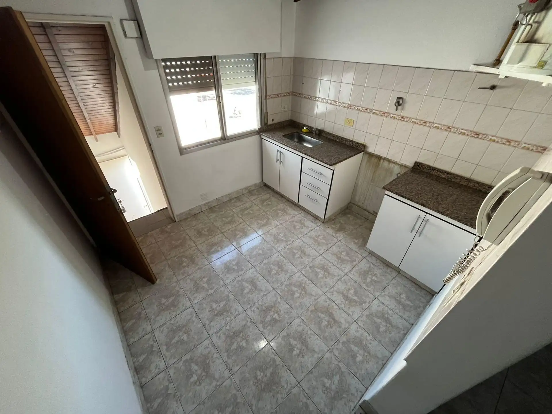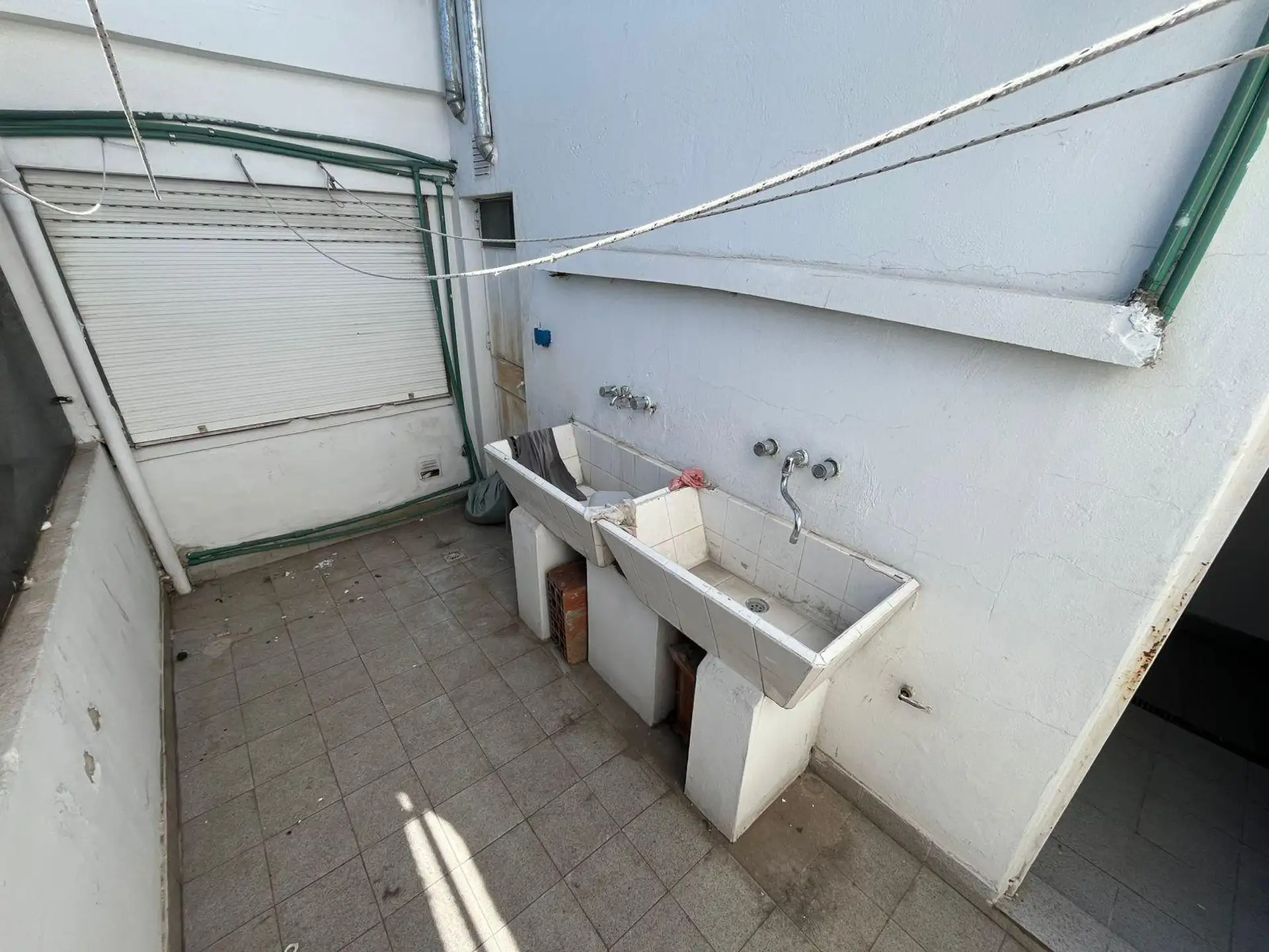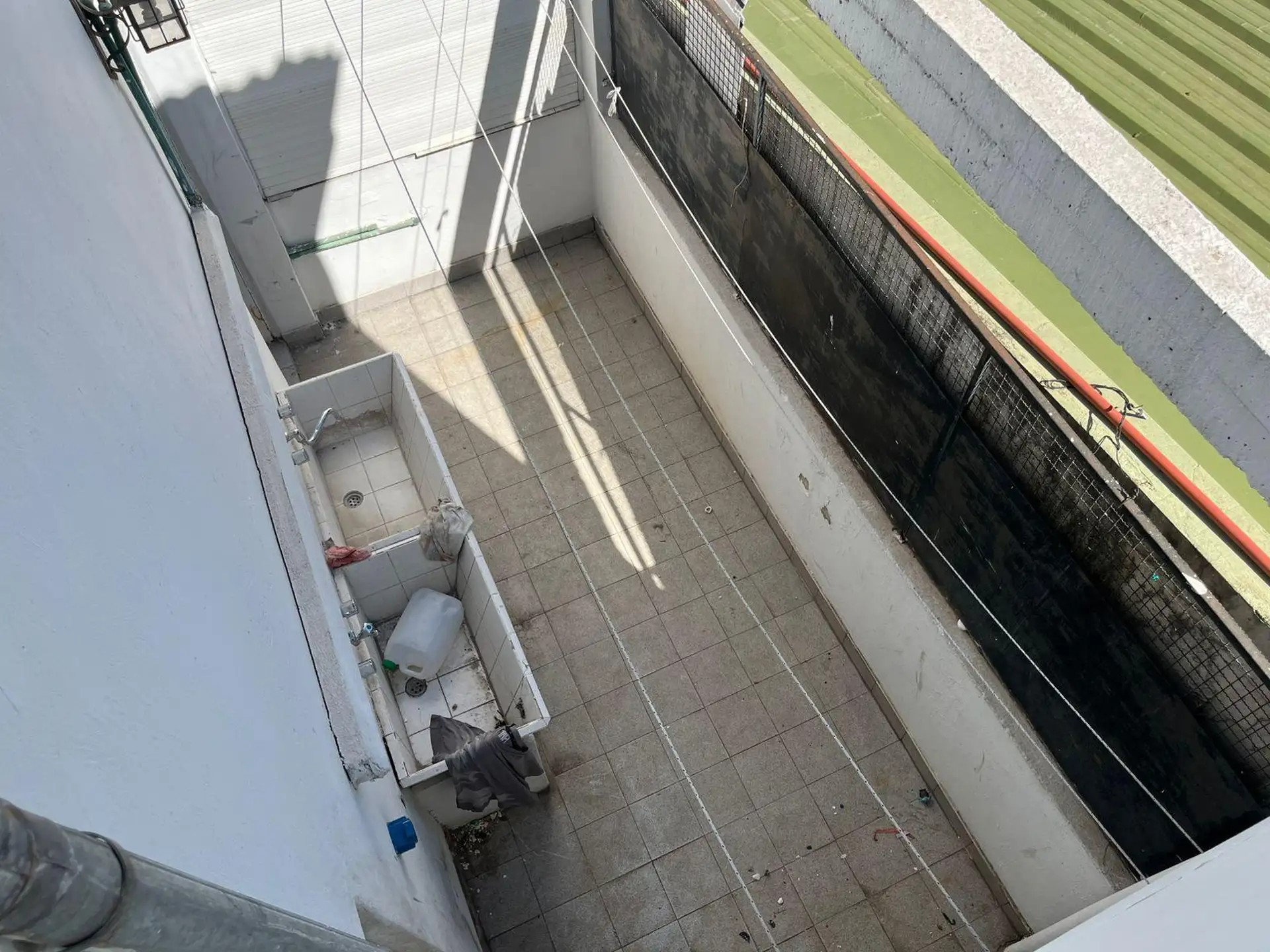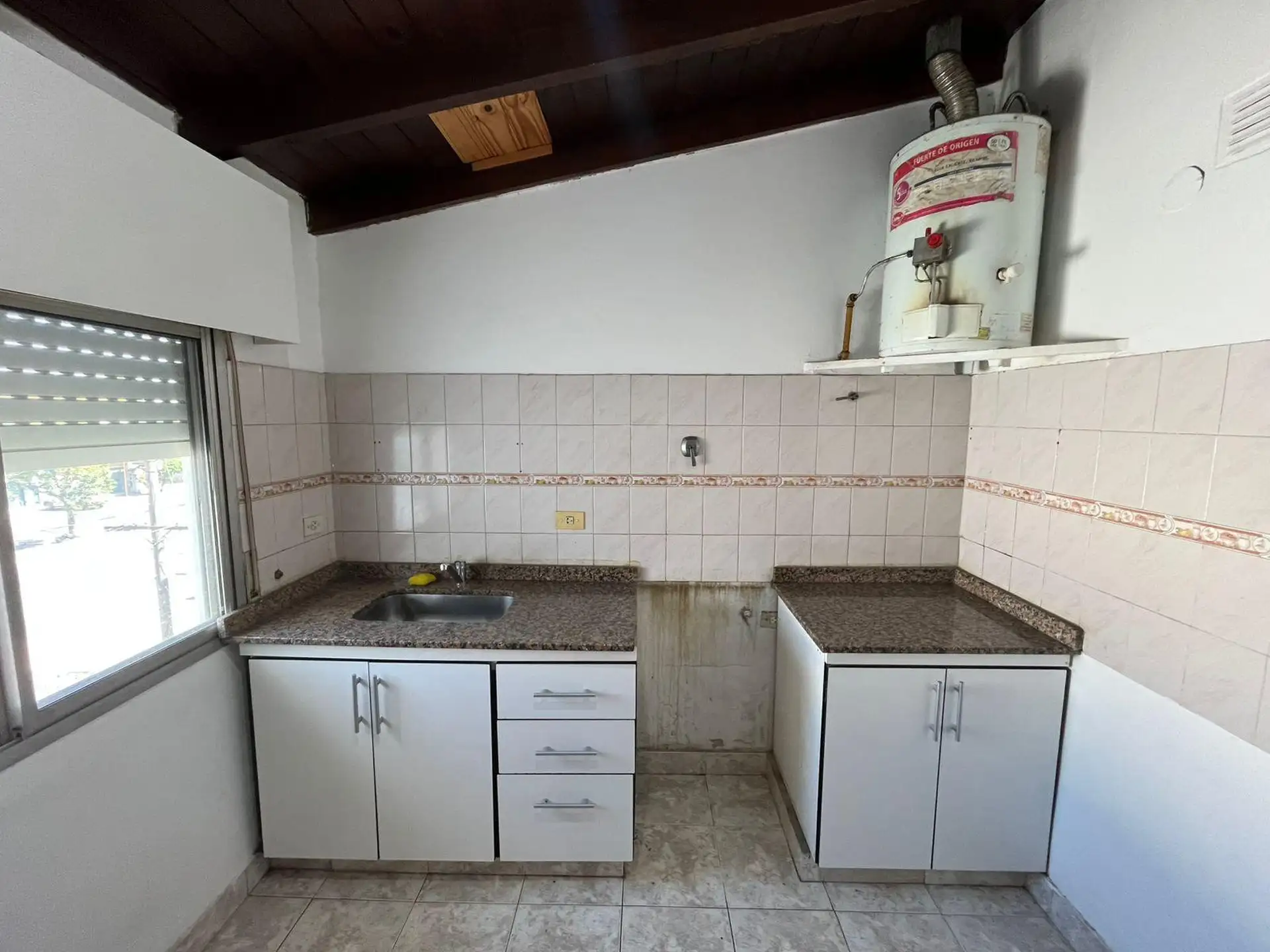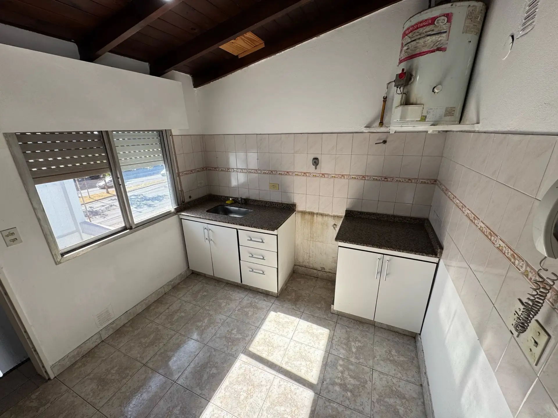 Apartamento de 2 ambientes com 1 quarto no bairro José León Suárez, no 2º andar e acessível por escadas. Sala de estar e jantar integrada à cozinha com móveis baixos; banheiro completo com box e chuveiro. Quarto com armário embutido. Orientado para o sul, voltado para os fundos (contrafrente). Idade de 20 anos, com água corrente, gás natural e eletricidade; apto para animais de estimação. Fica a poucos metros da Av. Márquez, e a cerca de 4 quadras da estação de trem do ramal Suárez-Retiro.