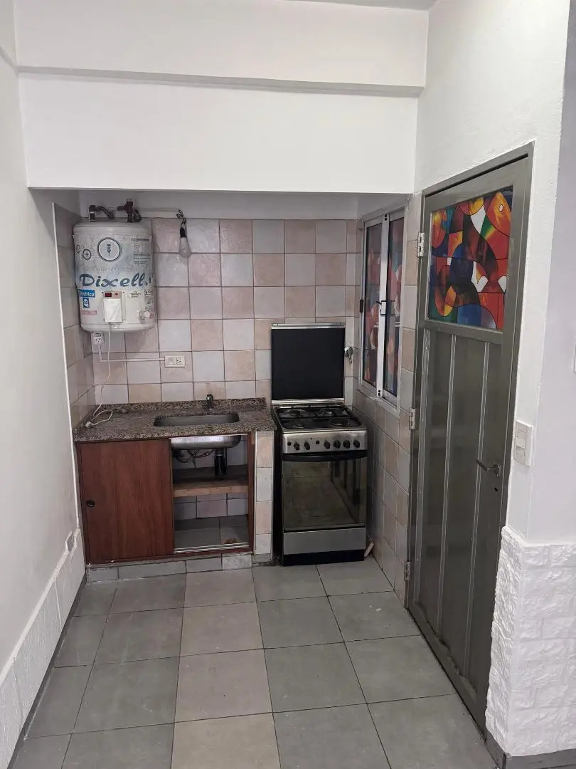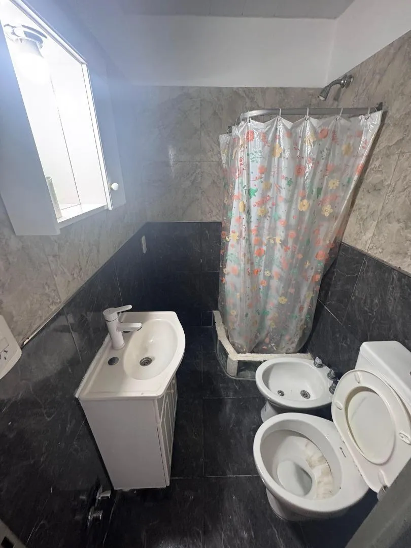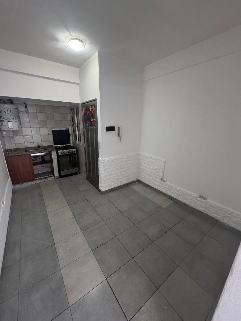 Apartamento no 1º andar, acessado por escada, de fundos em Hurlingham. Planta de 2 ambientes com cozinha e sala de jantar, 1 banheiro completo e 1 dormitório com varanda. Valor mensal: ARS 400.000.