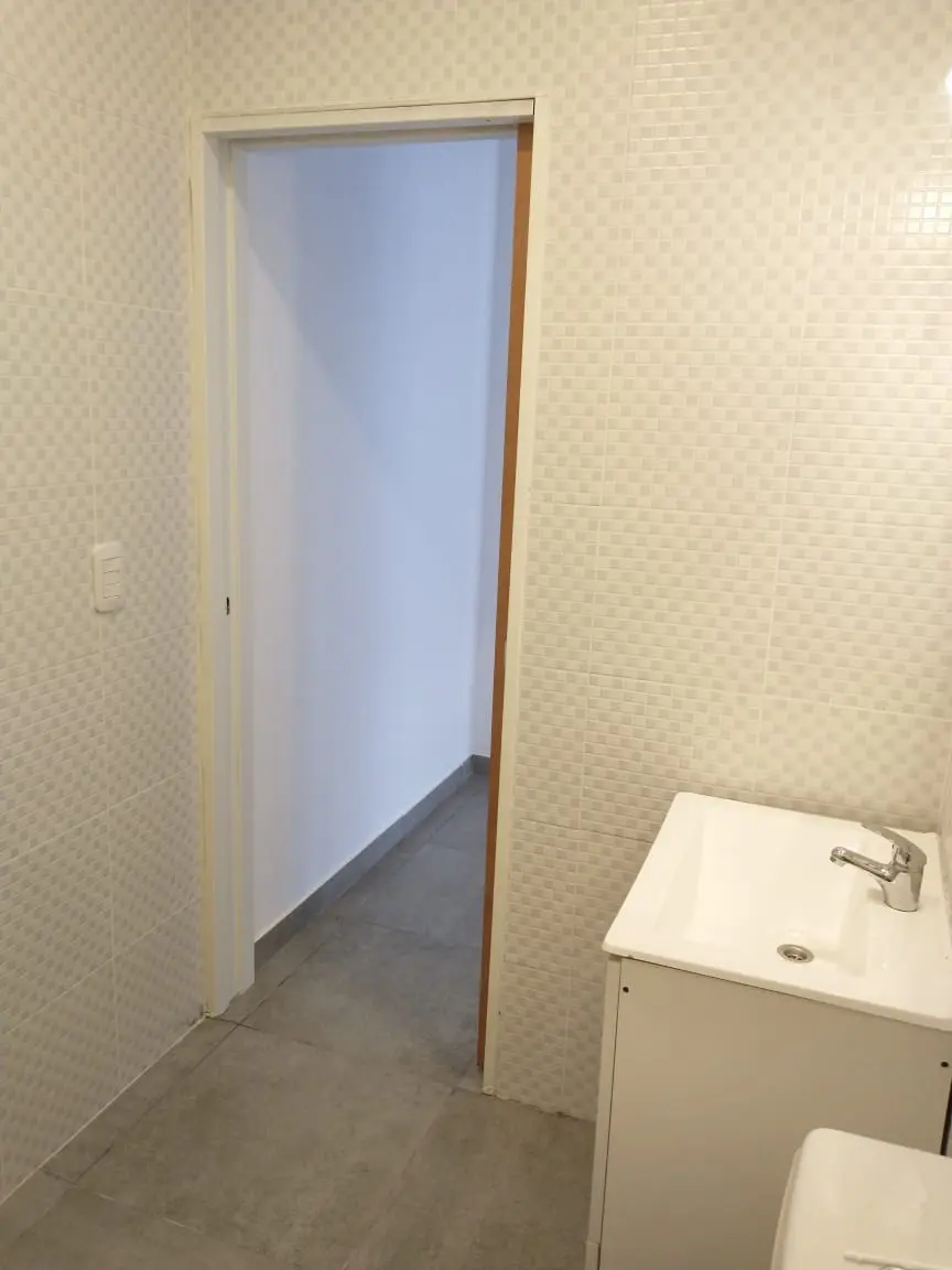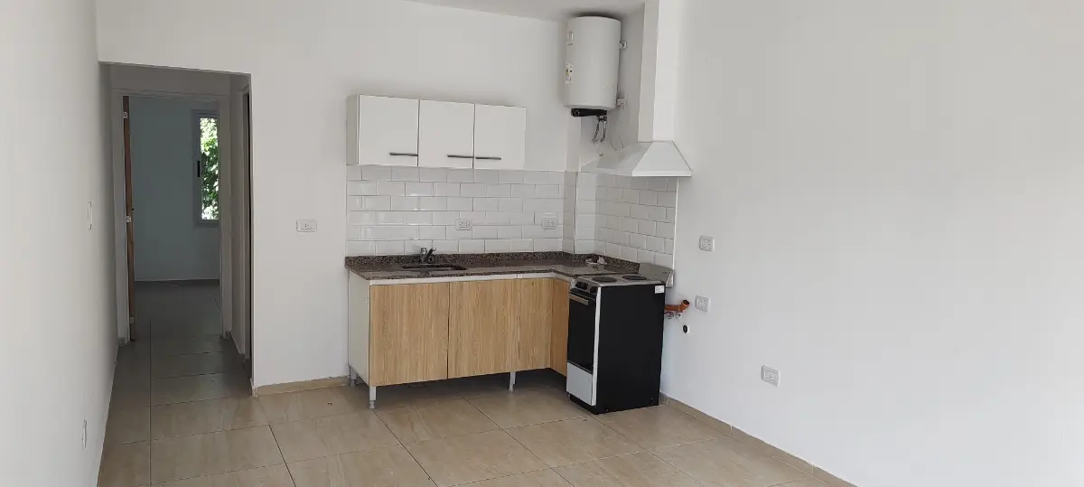Apartamento de 2 ambientes com 1 quarto em Hurlingham, com varanda de frente para a rua e pátio nos fundos. Cozinha e sala integradas, com forno e bancada (armário sob a pia), banheiro completo com bidê de mão e box com banheira, além de instalações para máquina de lavar e aquecedor tipo eco (termo de alta recuperação). O imóvel dispõe de luminárias em LED e permite no máximo 2 pessoas. Endereço: Charrúa 938, Villa Tesei, a 2 quadras da autopista.