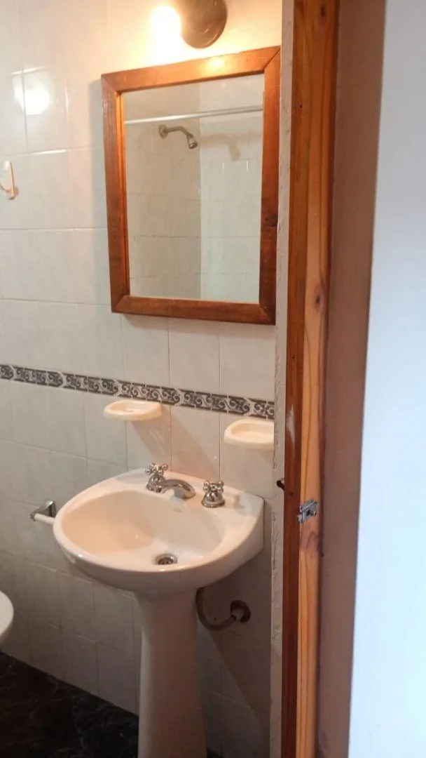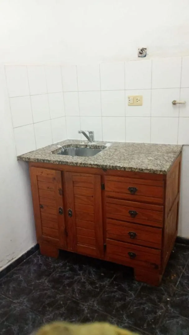 Apartamento de dois ambientes em Villa Tesei, Hurlingham, com entrada individual. Há sala de estar e jantar, cozinha semi-integrada com móveis de armário inferior e quarto com banheiro em suíte. Inclui pequeno pátio interno com área de lavanderia. O imóvel tem gás natural, luz e água corrente. O aluguel é de $490.000 por mês, sem condomínio, com contrato de 2 anos e reajustes trimestrais. Exige comprovante de renda e dois fiadores com comprovante de renda. Fica a 400 m do Hipermercado carrefour