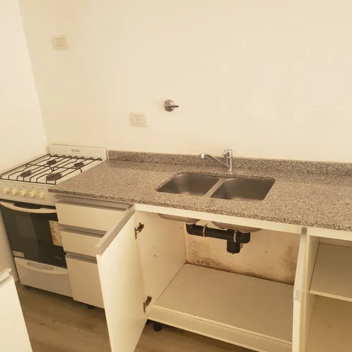 Unidade tipo PH de 2 ambientes com pátio em Hurlingham. Inclui cozinha integrada com área de refeições equipada, 1 banheiro completo e 1 dormitório com armário. A locação prevê limite de até 2 pessoas e não aceita cães.