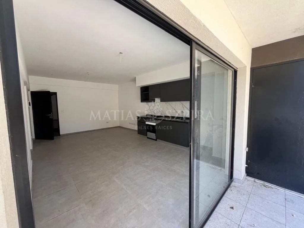 Apartamento para alugar de 2 ambientes em Hurlingham, unidade nova (a estrenar) com pátio e área de churrasco. Possui 1 dormitório com closet, cozinha, banheiro completo e vaga de garagem. O complexo tem salão comunitário (SUM) e piscina. Inclui churrasqueira individual equipada. A unidade conta com cozinha planejada (armário aéreo e base) e bancadas em granito negro (Brasil ou Boreal) com cuba de aço inox. Há instalação e pontos para máquina de lavar na varanda (nos apartamentos de 2 e 3 ambien