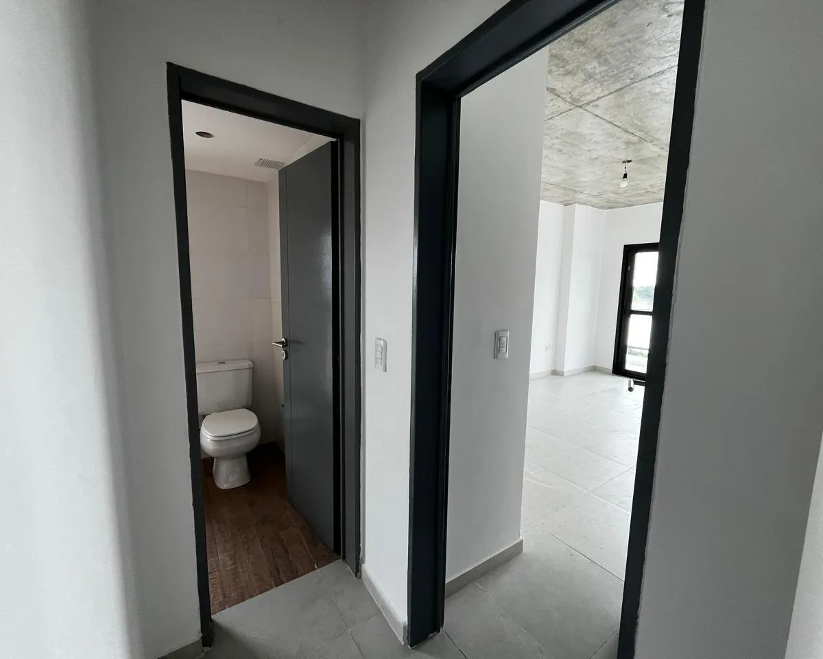 Apartamento de dois ambientes em Hurlingham, em edifício novo (a estrenar). Inclui 1 quarto, cozinha com área de refeições e 1 banheiro. Possui aquecimento por piso radiante elétrico e janelas com vidro duplo (DVH). O edifício tem SUM com cozinha integrada e área de piscina e solário, além de salão com churrasqueira, vigilância 24 horas, elevadores e controle eletrônico de acesso.