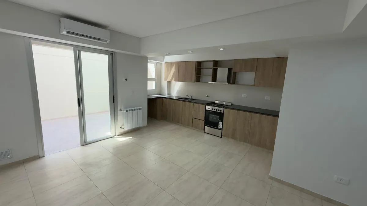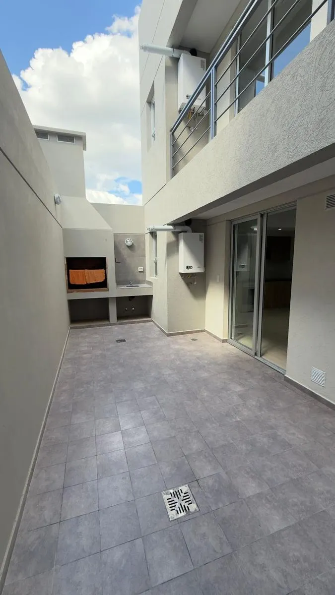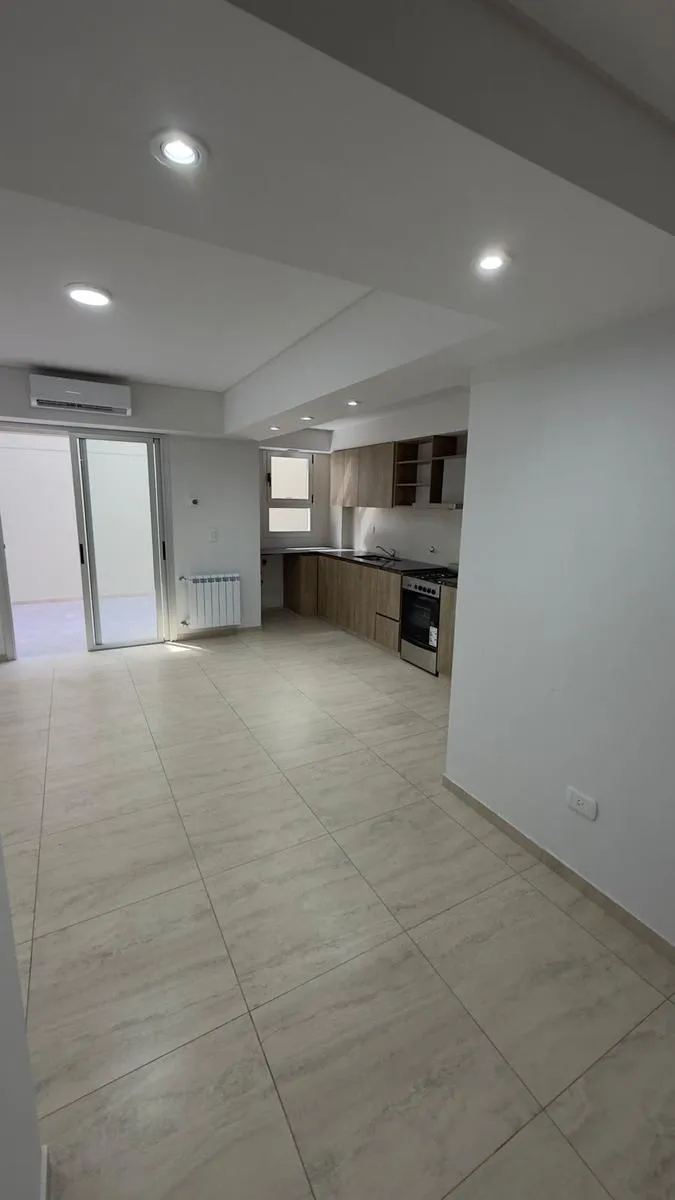 Apartamento de 2 ambientes no 1º piso em William Morris, com acesso por escadas. Inclui living integrado à cozinha com armários planejados, bancada, coifa e fogão/forno em aço inox, além de janela com balcão de frente. Há ar-condicionado (split) no ambiente principal e no quarto, calefação central por radiadores e aquecimento de água com termo de sistema dual. O banheiro tem banheira americana, ducha e vanitory, e o quarto possui armário embutido com interiores. O imóvel tem pátio com churrasque