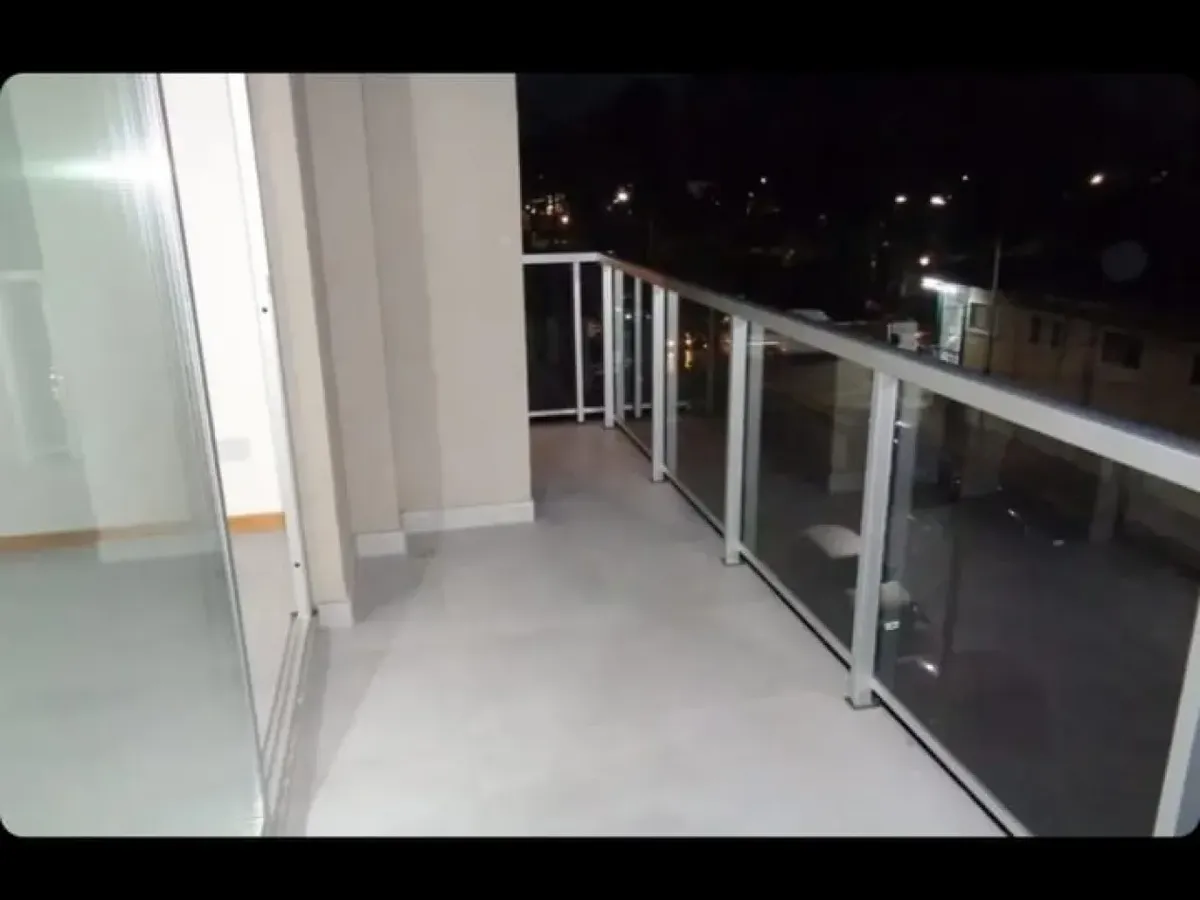 Apartamento de 2 ambientes no 3º andar, de frente para a rua, com 52 m² e vaga de garagem. Possui sala de estar e jantar com ar-condicionado frio/calor, piso cerâmico e varanda de frente; quarto com armário e ar-condicionado frio/calor. Cozinha equipada com bancada de mármore, fogão com forno elétrico e balcão pequeno. Banheiro completo. No prédio há 2 elevadores. O anúncio menciona água corrente, rede de esgoto e luz como serviços.