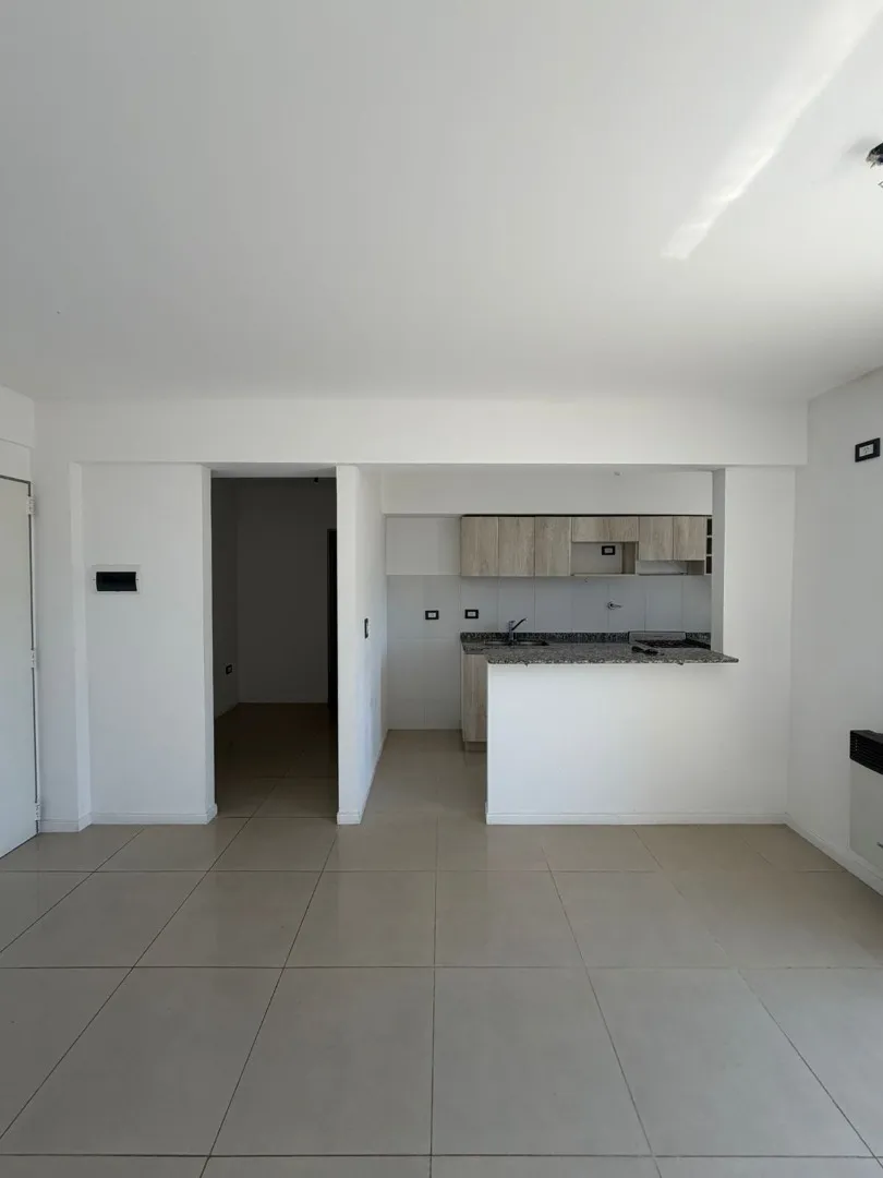 Apartamento de dois ambientes em Ituzaingó Centro, no 1º andar, com cozinha integrada equipada com bancada, armários inferiores e superiores, conexão a gás e fogão. Sala com varanda; banheiro completo com banheira. Quarto com armário embutido e janela para a frente. O aluguel é de $720.000, mais condomínio a confirmar; exige-se garantia própria ou três fiadores com comprovante de renda.