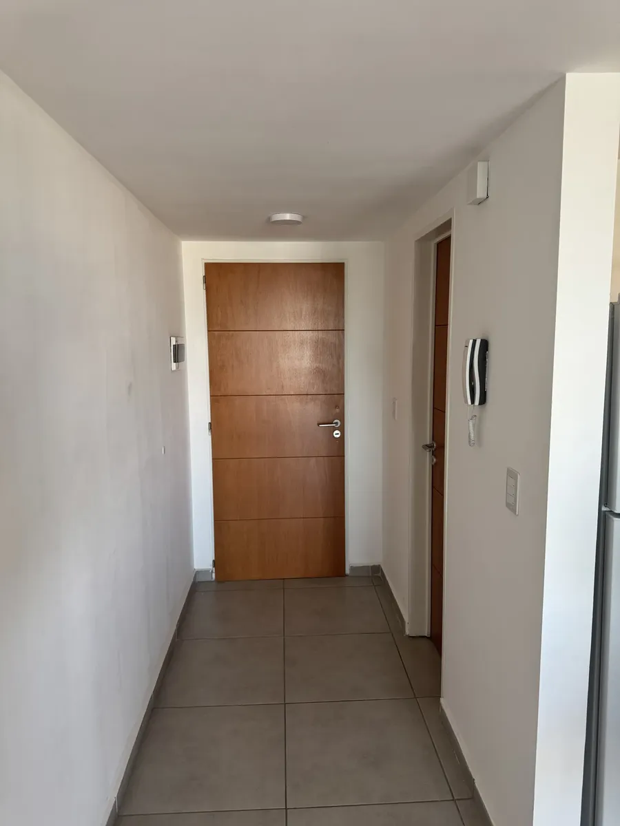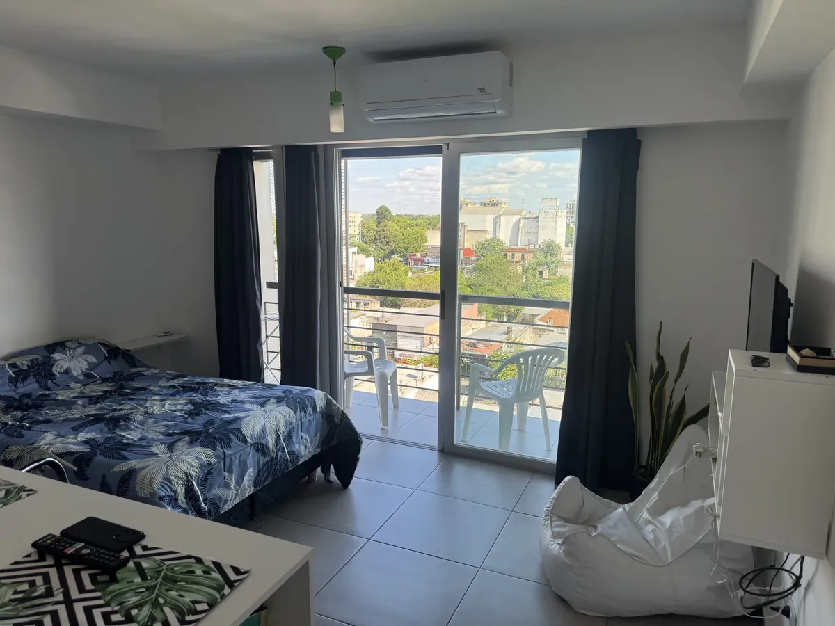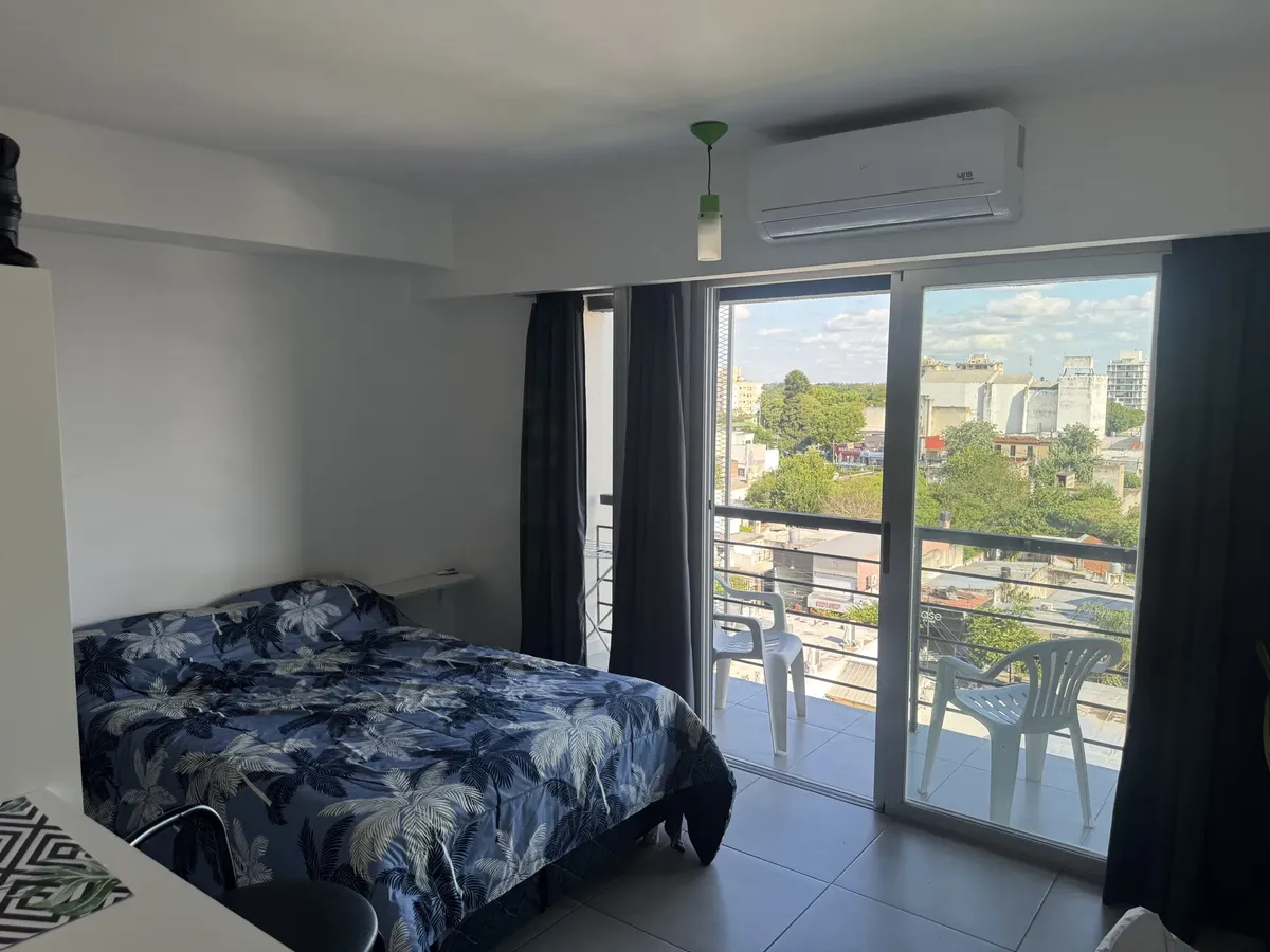 Kitnet mobiliado com varanda em Ituzaingó Norte, a 2 quadras da estação. Cozinha equipada com armário superior e gabinete inferior, e 1 banheiro completo. O prédio tem piscina, salão de festas (SUM), lavanderia e áreas verdes com espreguiçadeiras. O aluguel é de USD 450 por mês, com condomínio de $85.000.