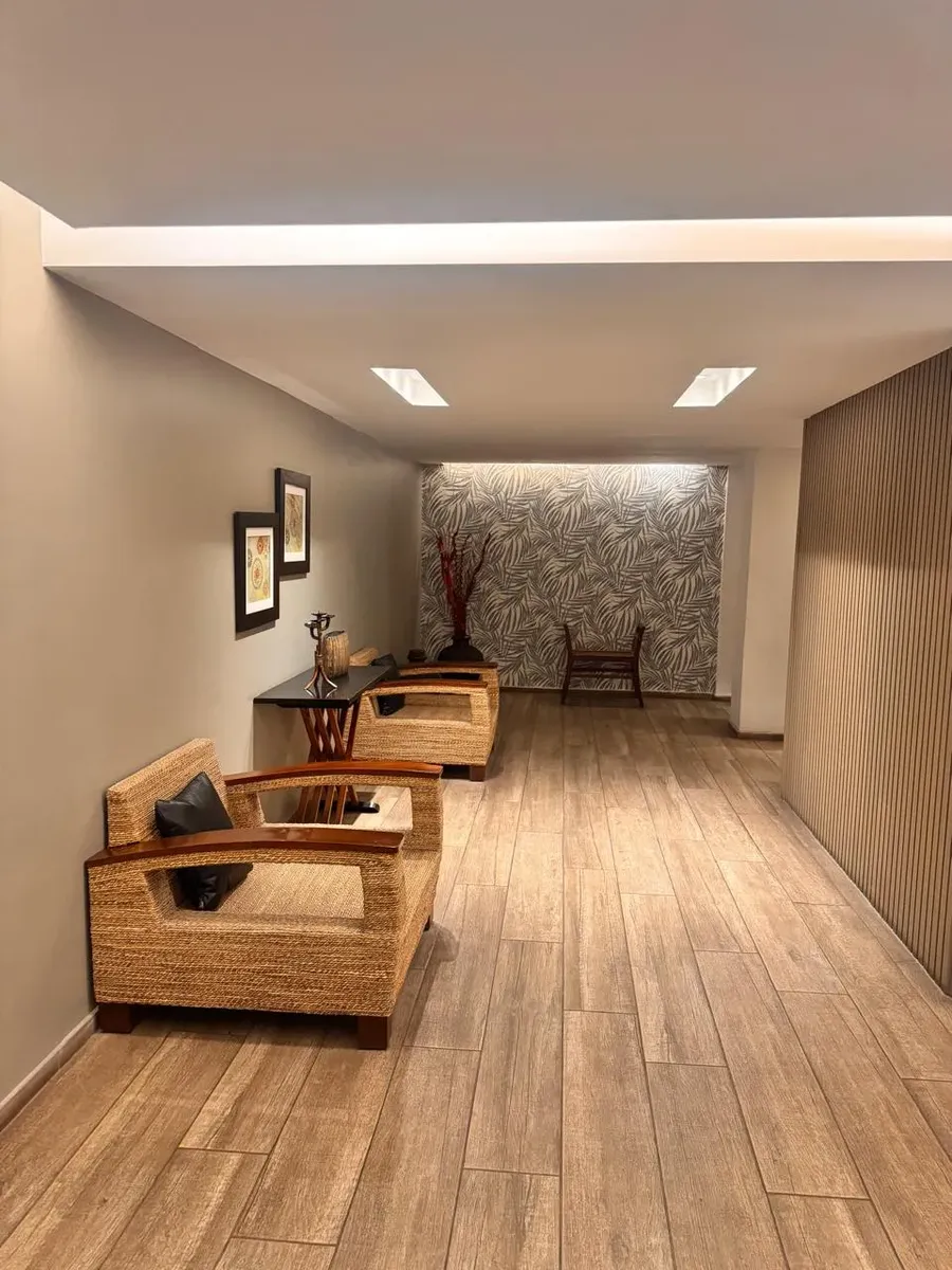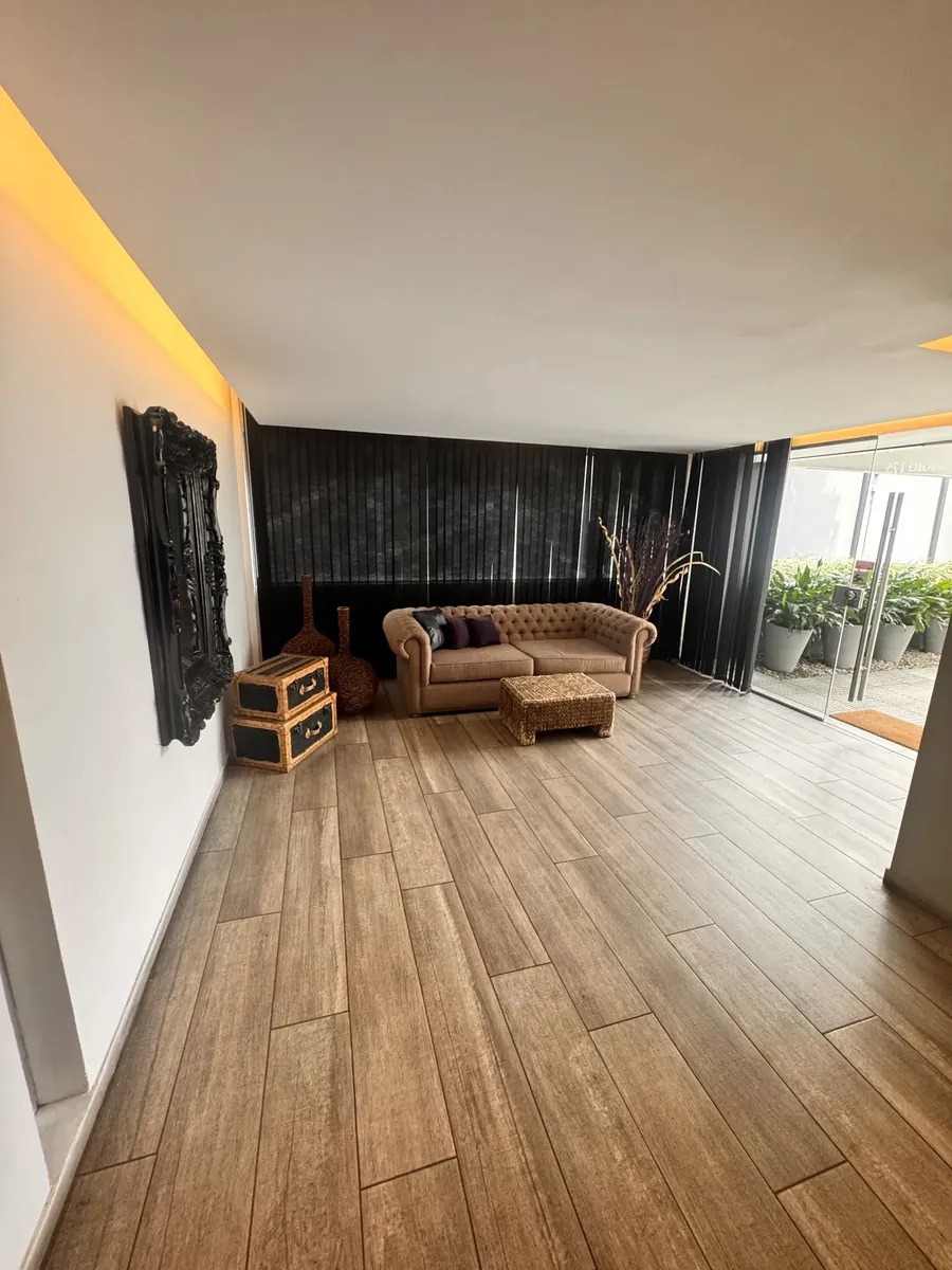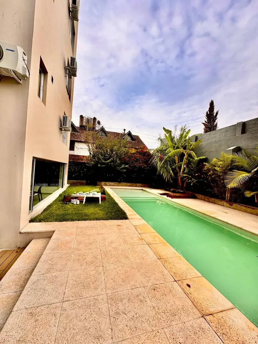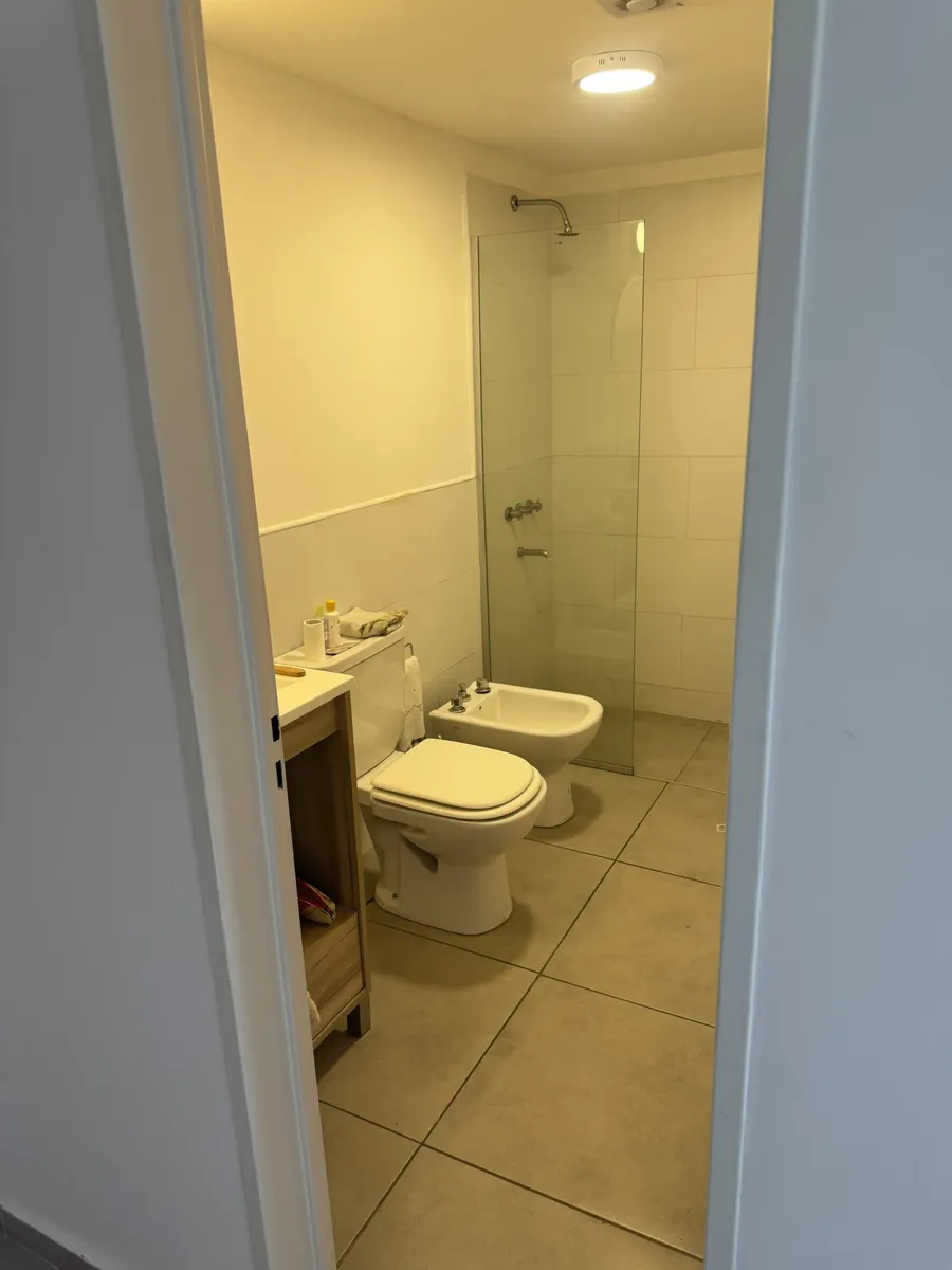 Kitnet mobiliado com varanda em Ituzaingó Norte, a 2 quadras da estação. Cozinha equipada com armário superior e gabinete inferior, e 1 banheiro completo. O prédio tem piscina, salão de festas (SUM), lavanderia e áreas verdes com espreguiçadeiras. O aluguel é de USD 450 por mês, com condomínio de $85.000.