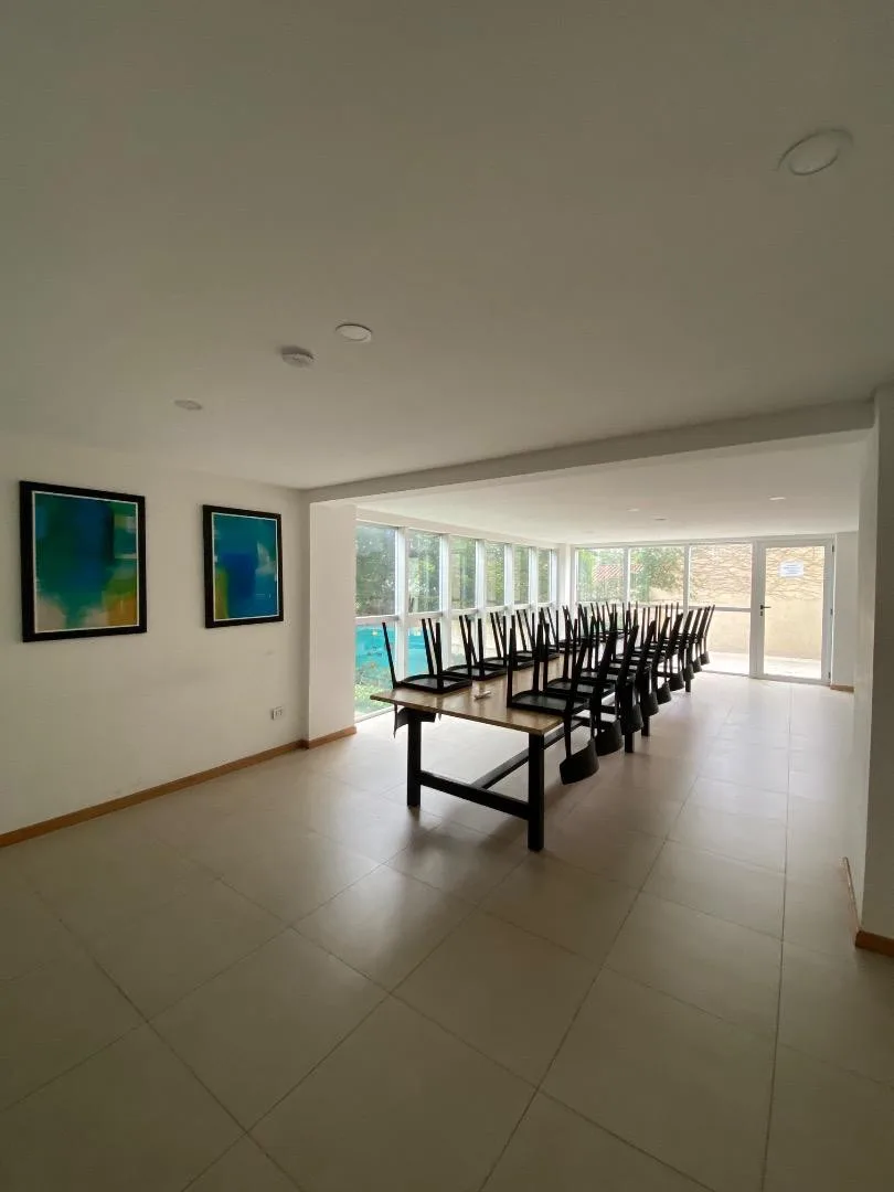 Apartamento de dois ambientes em Ituzaingó Norte, no centro de Ituzaingó. Tem 1 quarto com armário, cozinha separada com fogão, espaço para máquina de lavar e geladeira. Há banheiro completo e o prédio oferece vaga de garagem, piscina, jardim e salão comunitário (SUM).