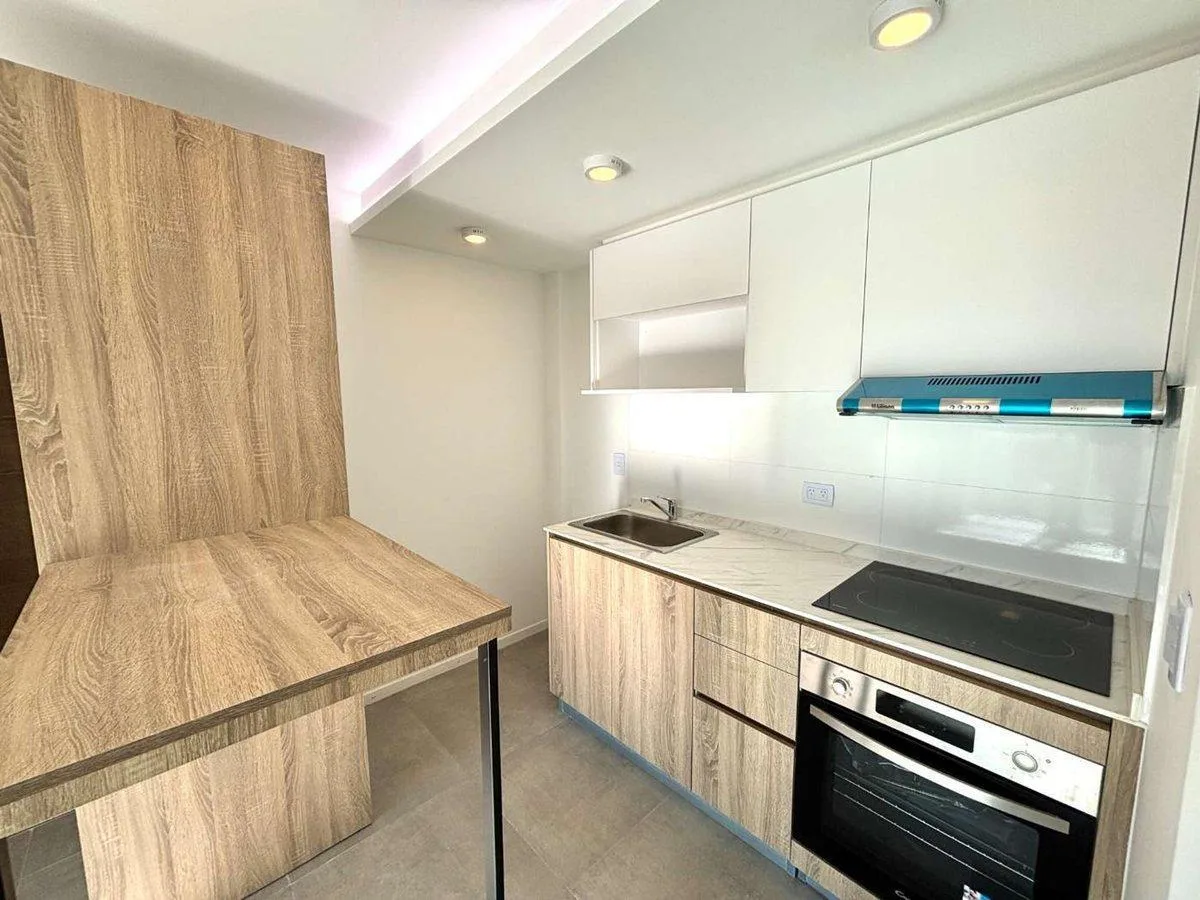 Apartamento de dois ambientes com 39 m² cobertos e 3 m² semicobertos (41 m² totais), no 6º andar, de fundos. Possui 1 dormitório, 1 banheiro completo e cozinha integrada ao living e à área de refeições, além de terraço. Inclui 1 vaga de garagem. O condomínio (expensas) é de 150.000 pesos e o aluguel de 720.000 pesos. O contrato é de 2 anos, com reajuste trimestral pelo IPC.