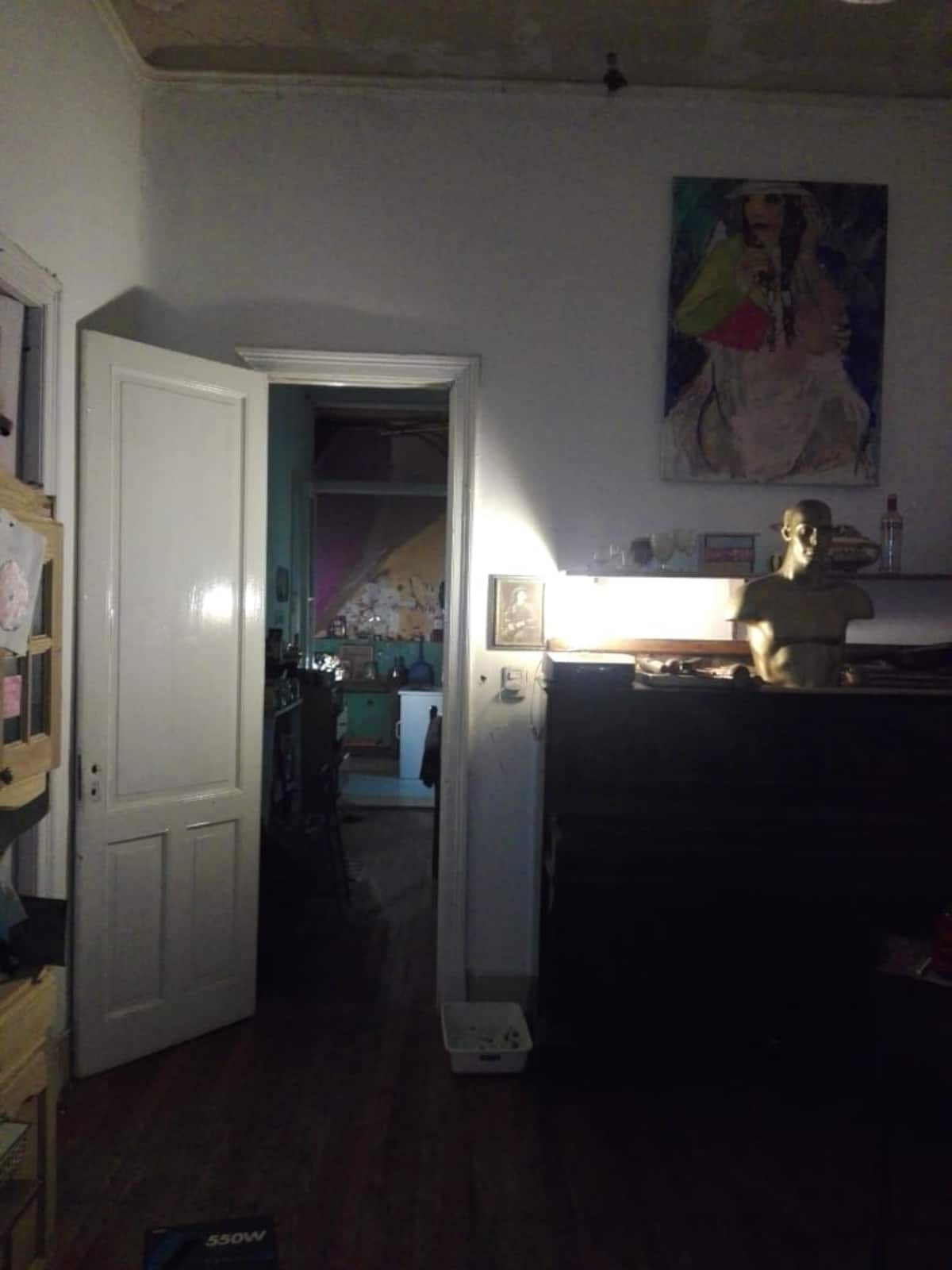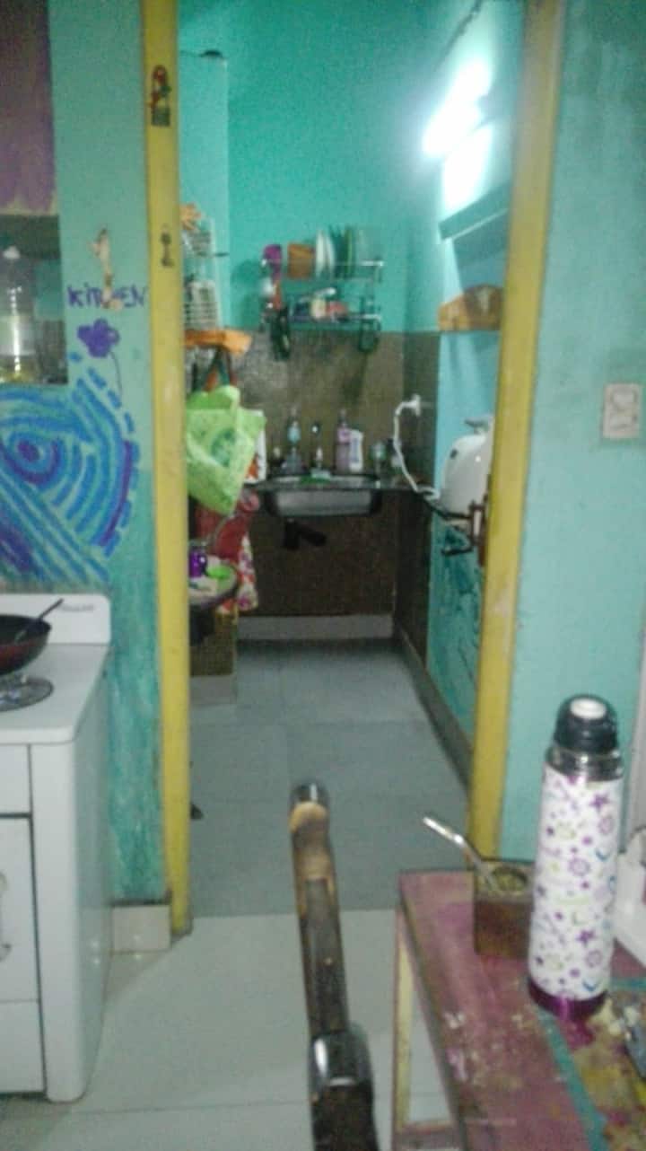 O imóvel é um espaço de ateliê de pintura e área criativa no térreo em La Boca. Há acesso a um terraço amplo com plantas. A cozinha é pequena e indicada para aquecer água ou preparar alimentos vegetarianos. O imóvel inclui um piano; há menção a um cão chamado BARDHO. O texto descreve que a unidade é antiga e necessita de obras de reforma e manutenção, com possibilidade de acordo em dinheiro e parte em troca por trabalho.