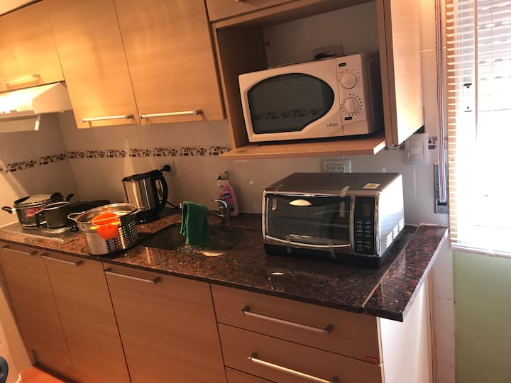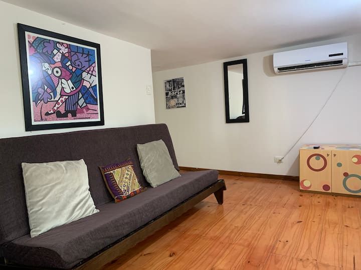 Apartamento em La Boca, na Cidade Federal, a poucos metros da Usina del Arte e do estádio La Bombonera, a cerca de 800 m de Puerto Madero e a 7 quadras. O apartamento tem ar-condicionado e é equipado com Wi-Fi rápido, Smart TV, micro-ondas, máquina de lavar e itens de cama e banho. A unidade tem entrada por porta privativa e vista para a rua Caboto (nº 800). Acesso à Av. Almirante Brown, com várias linhas de ônibus, e proximidade com as autopistas Buenos Aires–La Plata e 25 de Mayo.
