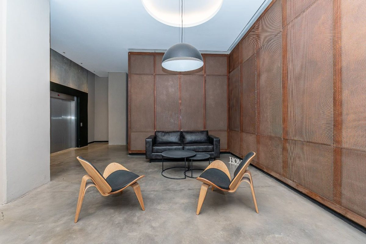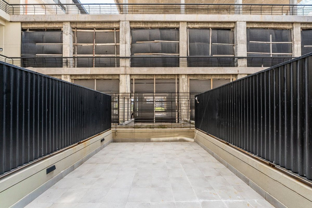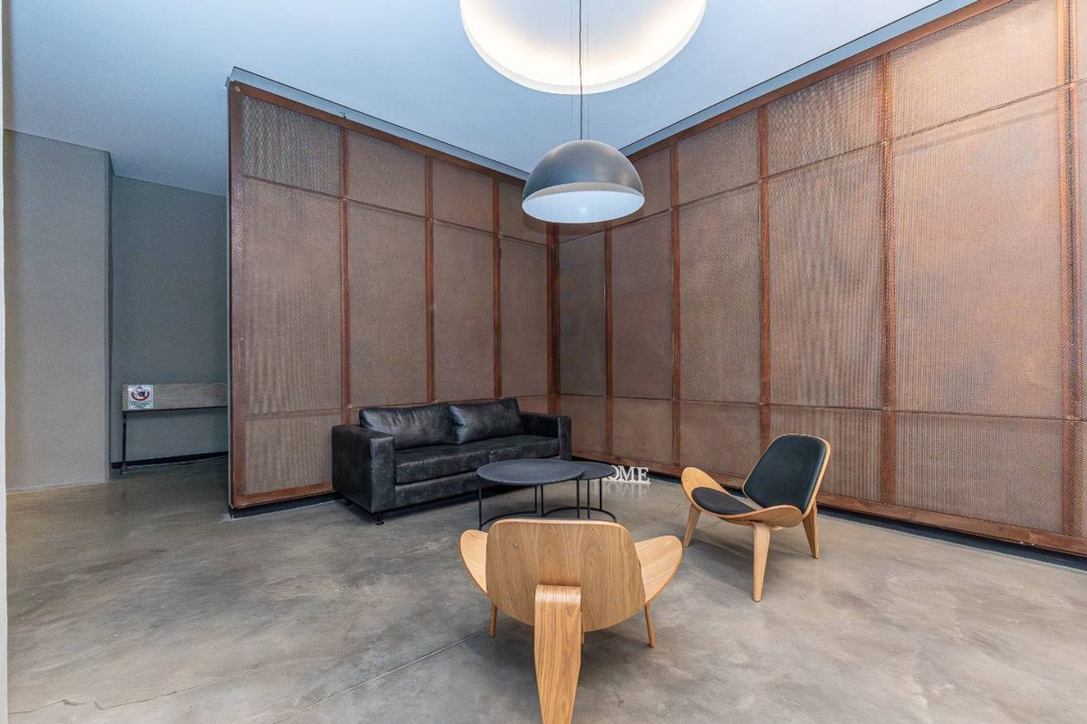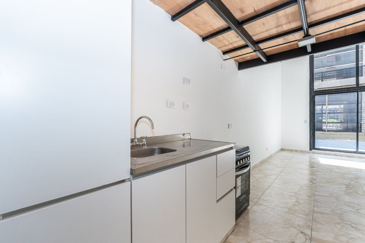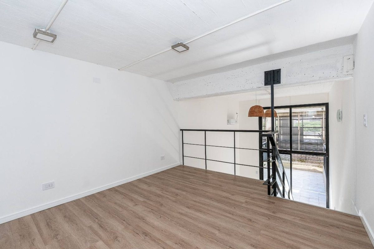 Apartamento duplex de 2 ambientes com 1 quarto em dois pavimentos em La Boca. No andar térreo, sala de estar e jantar com cozinha integrada; no andar superior, o dormitório. A unidade tem pátio e o prédio é descrito como de estética industrial. Condições de aluguel: 1 mês adiantado, depósito de garantia de US$ 1.000 e garantia por propriedade ou seguro fiança, com rendas comprováveis e reajuste trimestral pelo IPC.