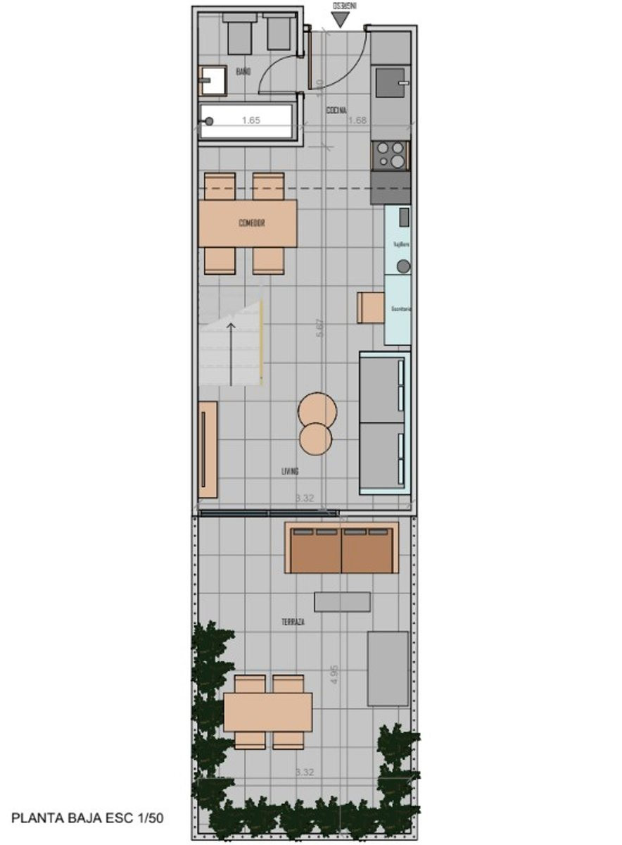Apartamento duplex de 2 ambientes com pátio em La Boca